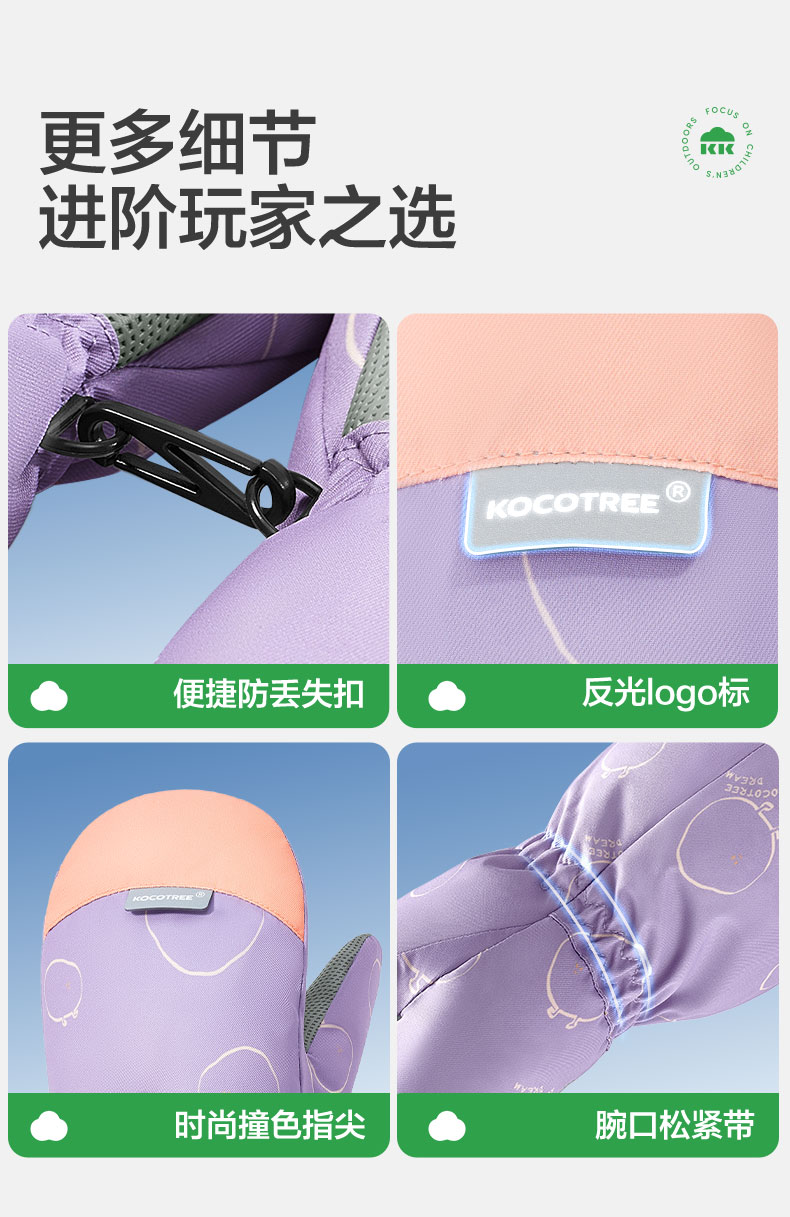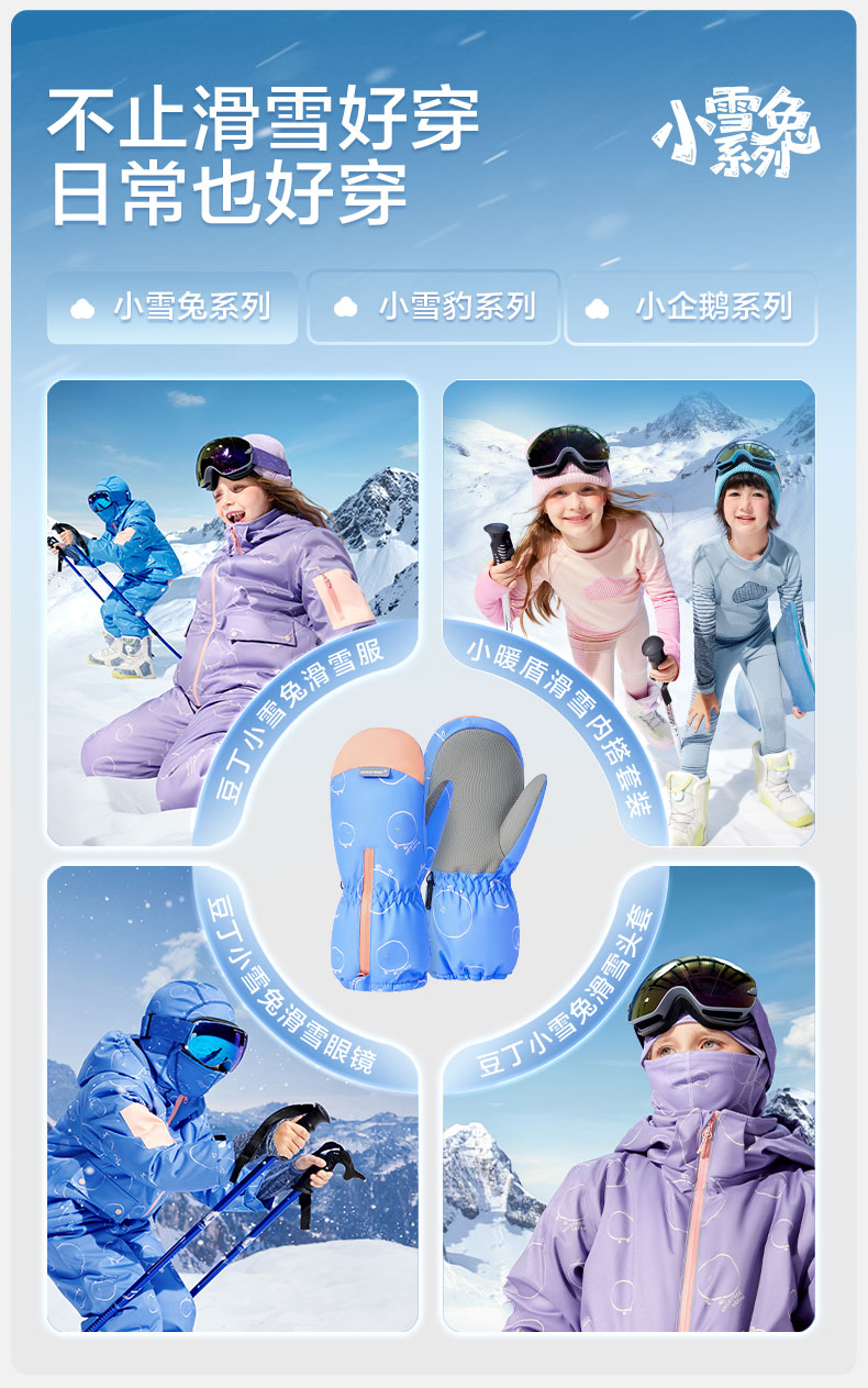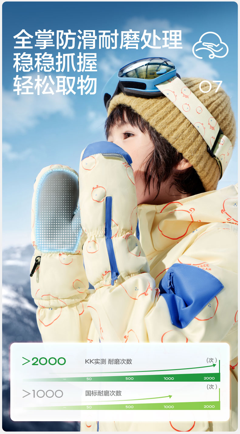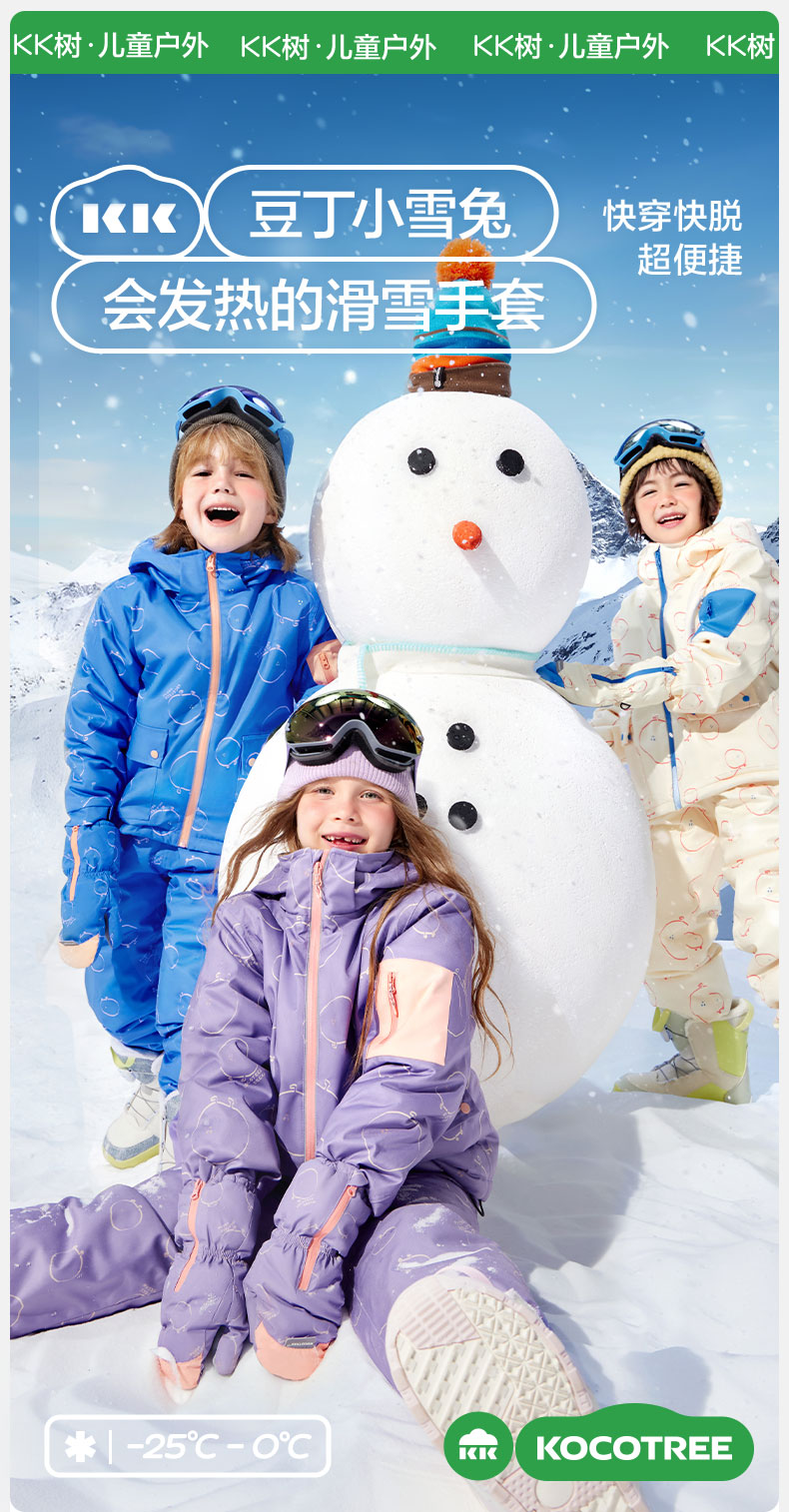 KK树儿童滑雪手套男童女孩冬季加厚保暖宝宝户外防雪水玩雪专用豆丁小雪兔滑雪手套