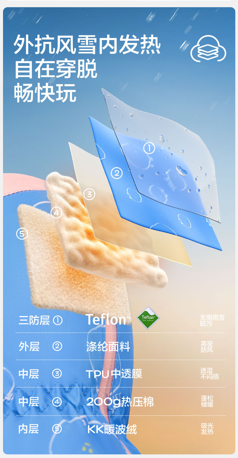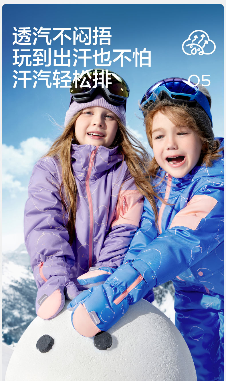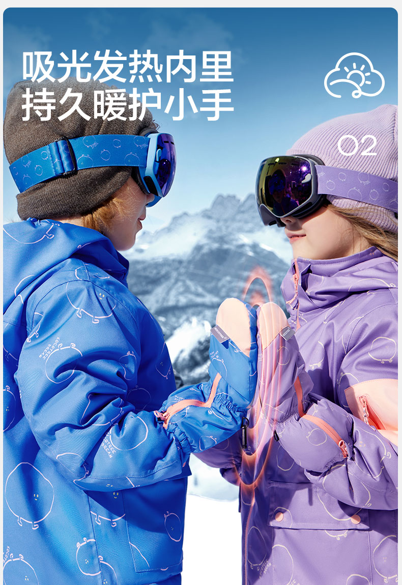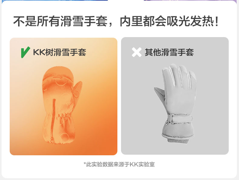 KK树儿童滑雪手套男童女孩冬季加厚保暖宝宝户外防雪水玩雪专用豆丁小雪兔滑雪手套