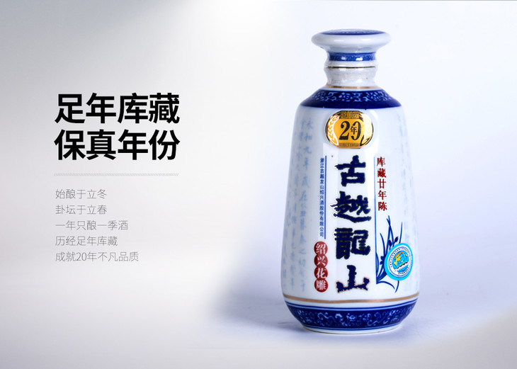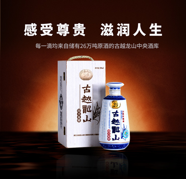 【拍6瓶原箱发货】古越龙山 20年(木盒)500ml 单瓶(新老包装随机)