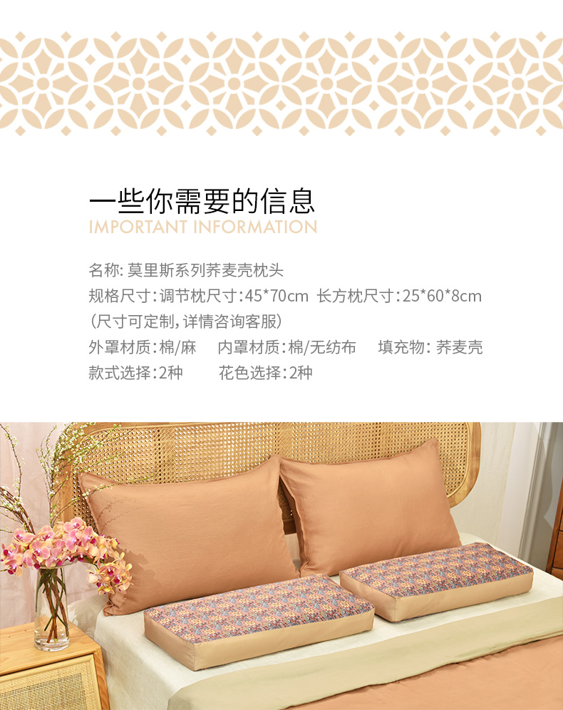 莫里斯系列荞麦壳枕头纯棉护颈枕