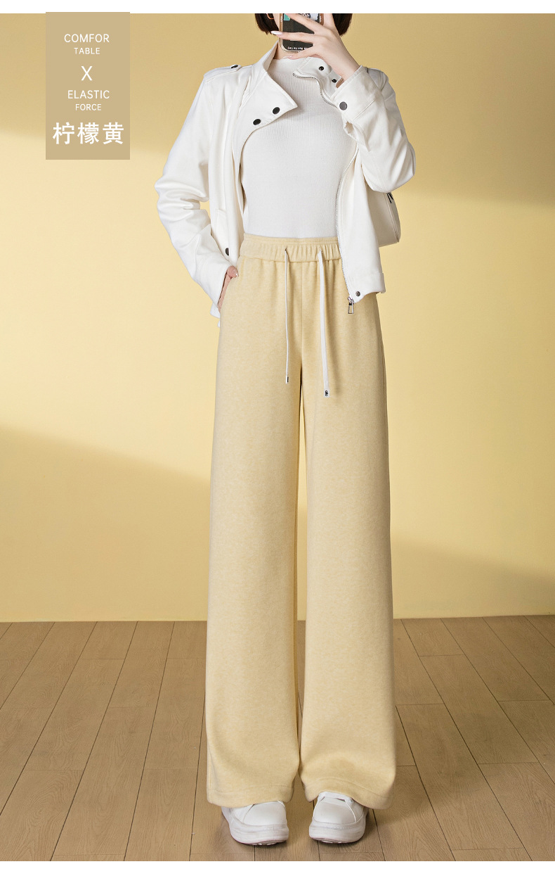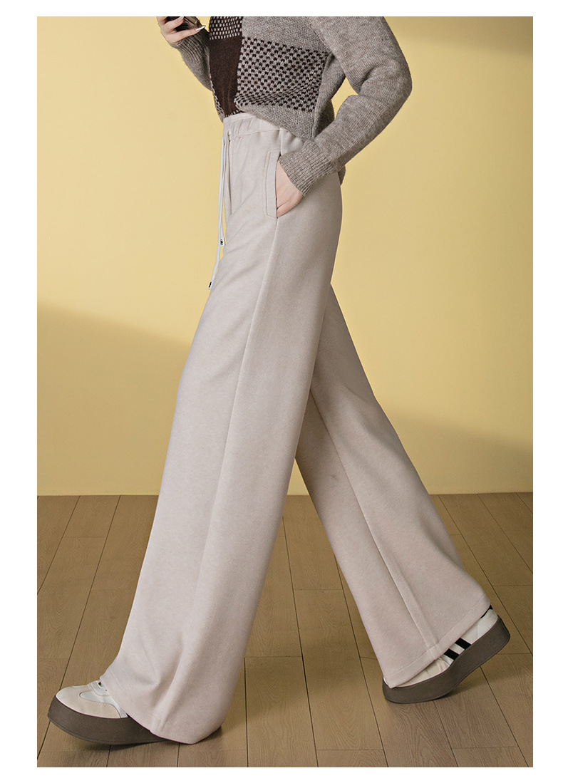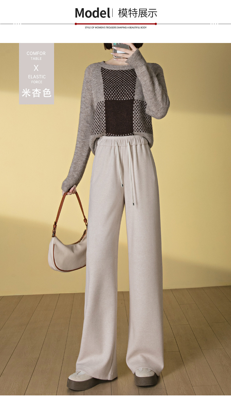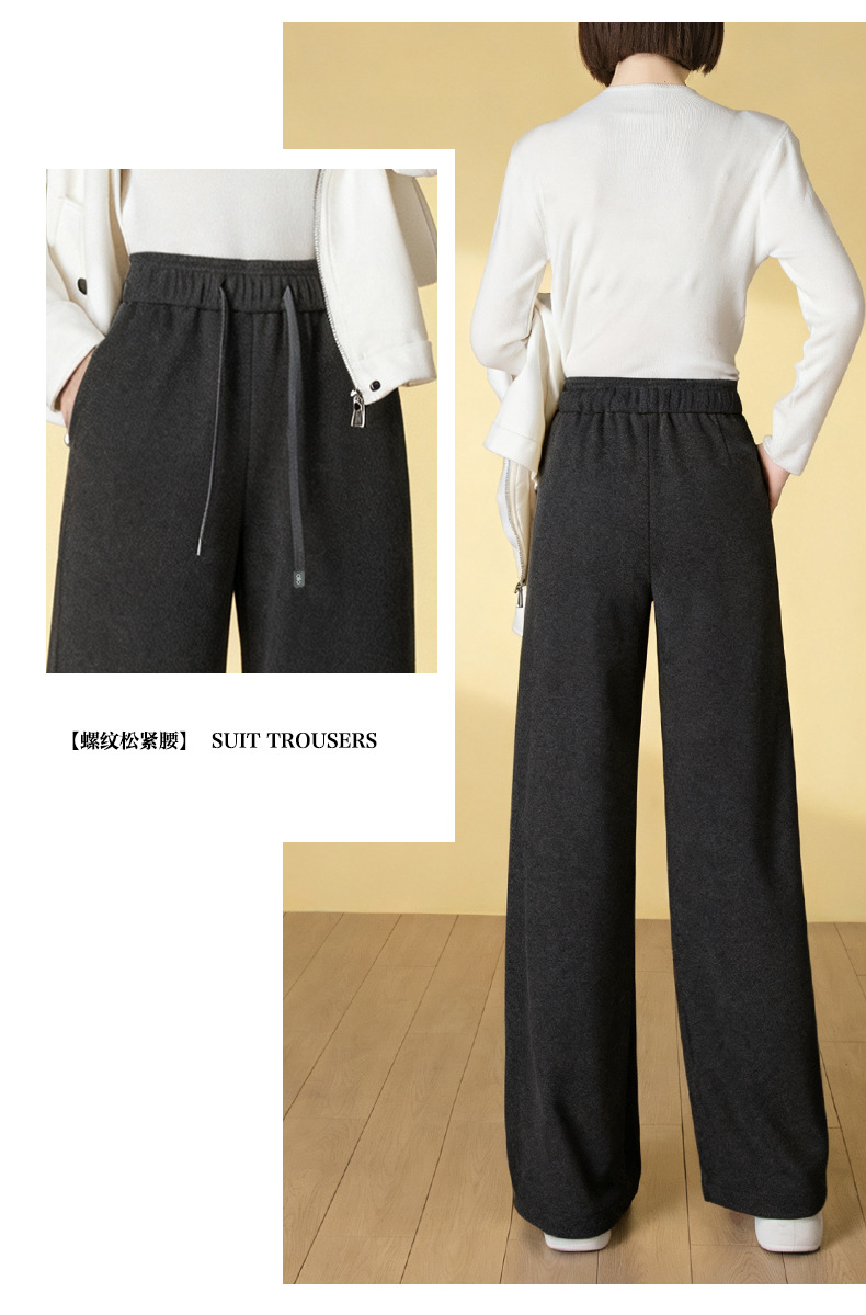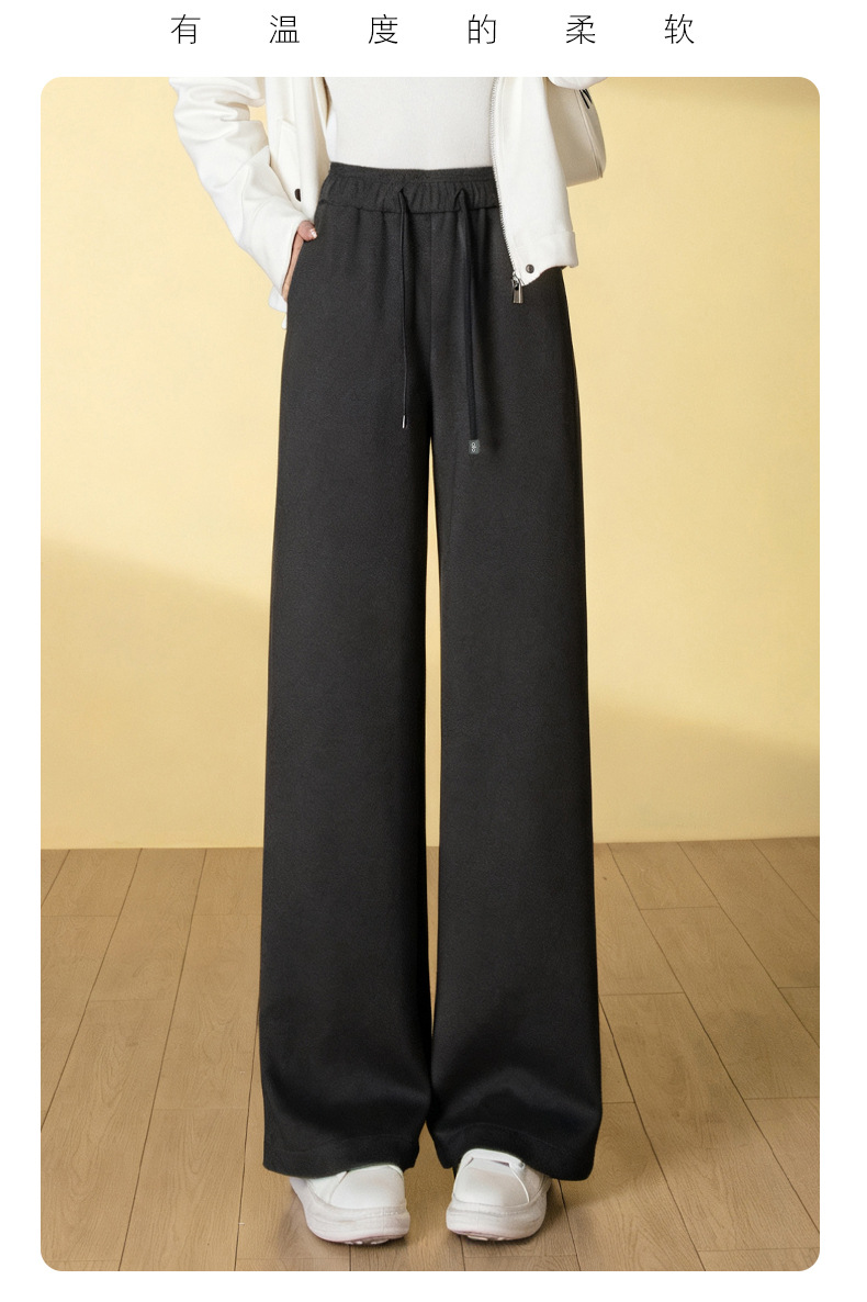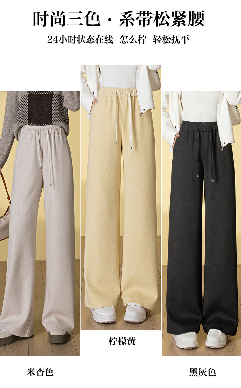 HSS 3061软糯毛呢阔腿裤系带松紧腰垂感休闲裤