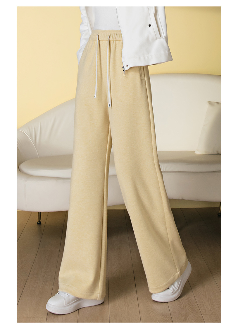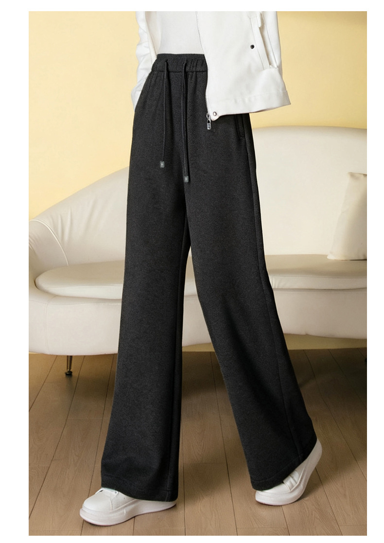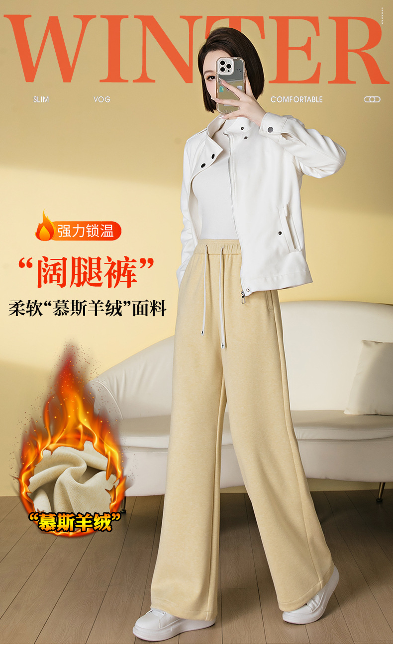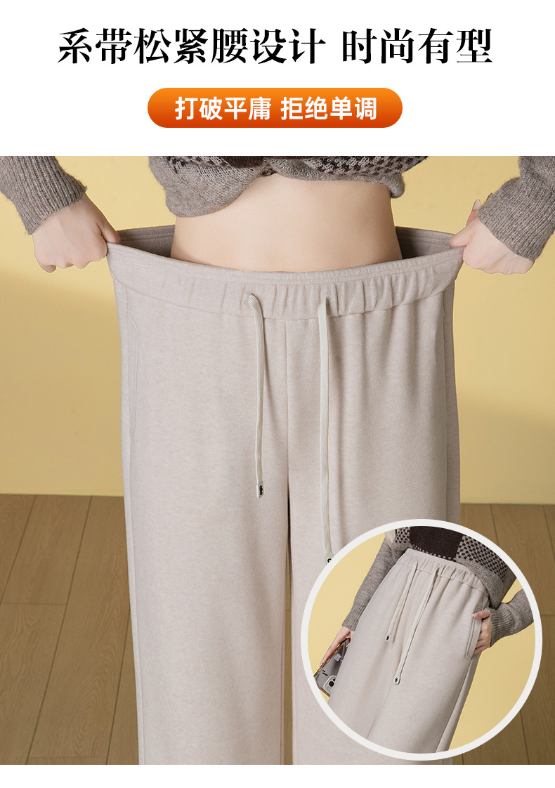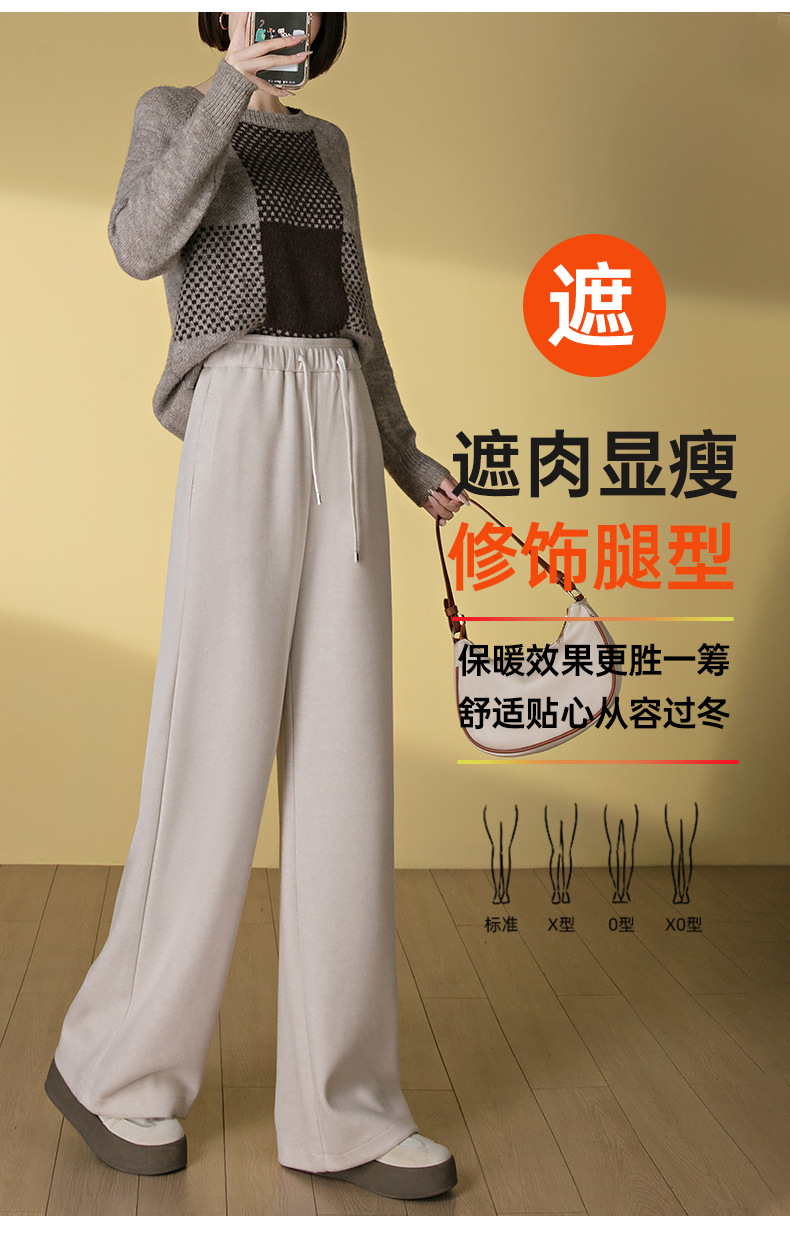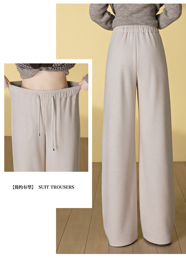 HSS 3061软糯毛呢阔腿裤系带松紧腰垂感休闲裤