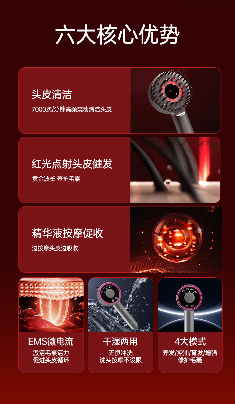 【赠育发液】笙观头皮彩光按摩健发梳 ,高频声波震动 梳头按摩 改善头皮环境