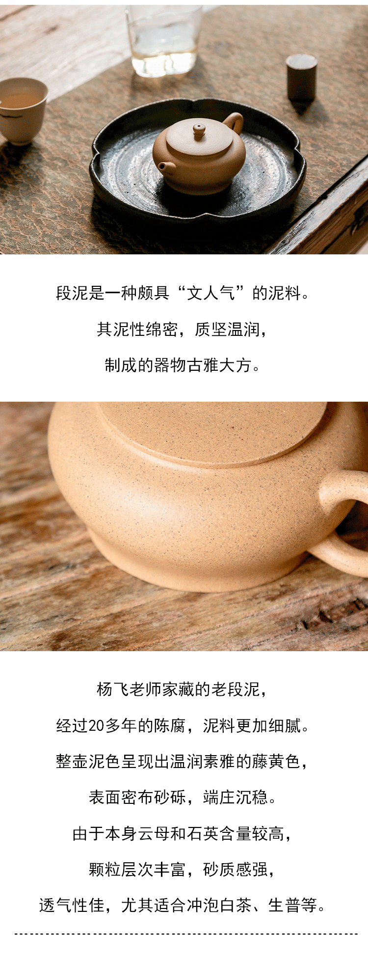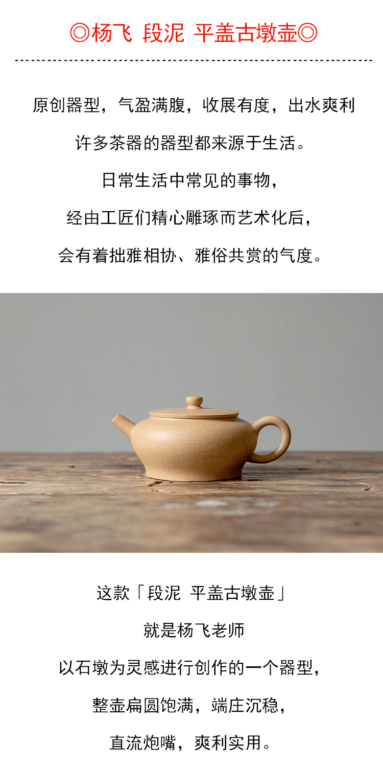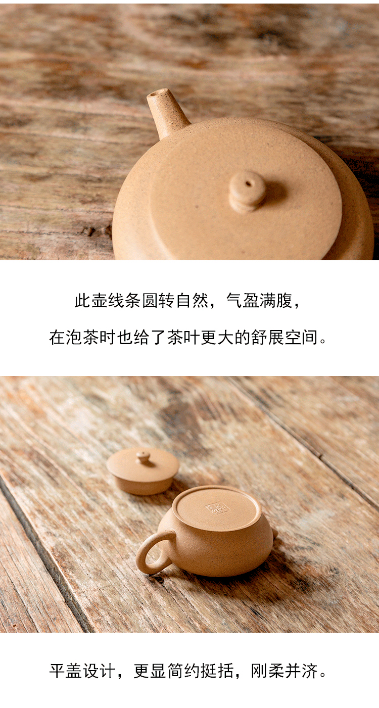 茶香记 杨飞段泥 紫砂平盖古墩壶 黄龙山原矿 清雅温润 圆扁饱满