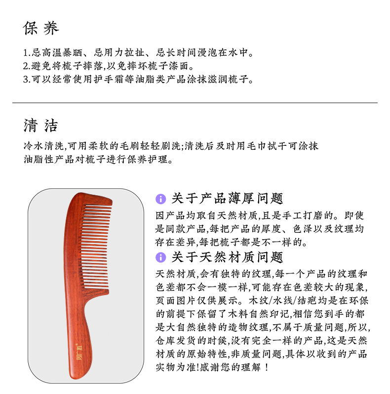 周广胜精选微凹黄檀合木梳子防静电护发梳男女通用家用蓬发顺发梳