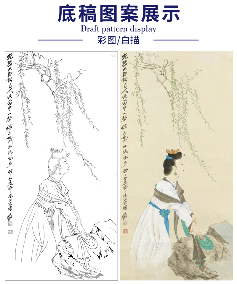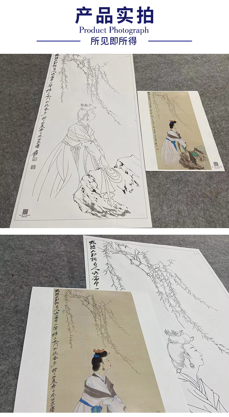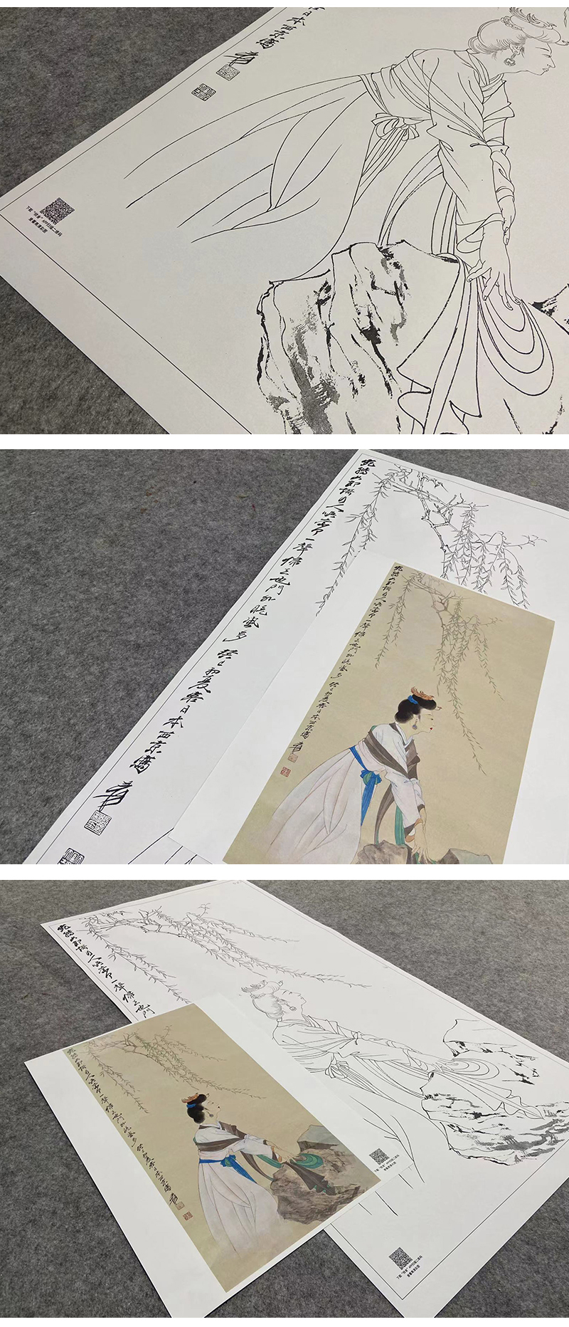 张大千竖幅工笔传统仕女人物白描底稿-QD48