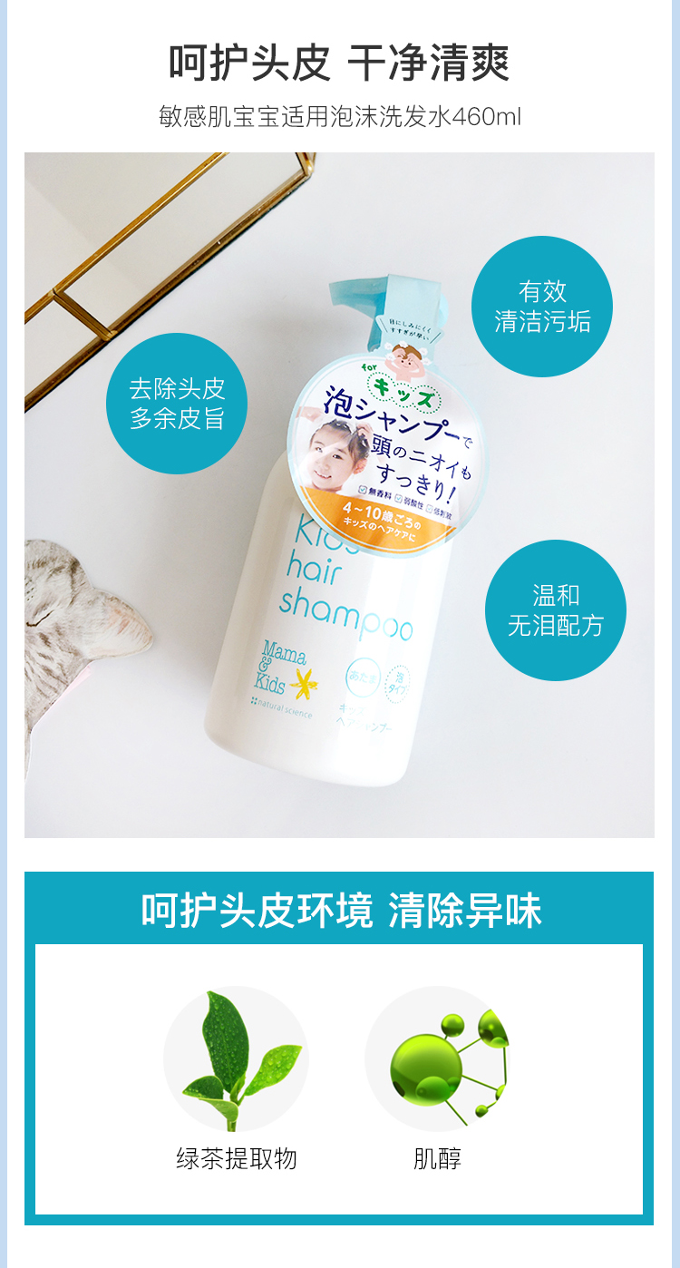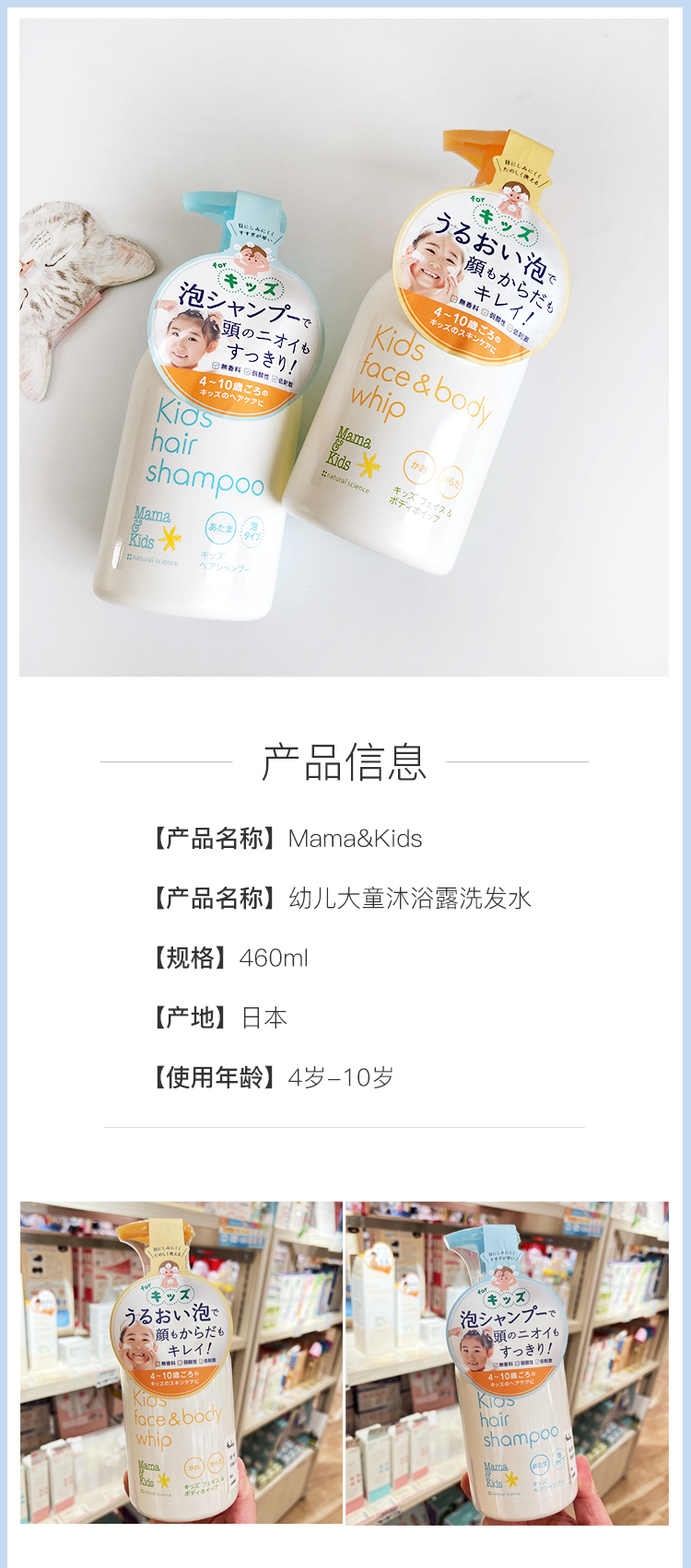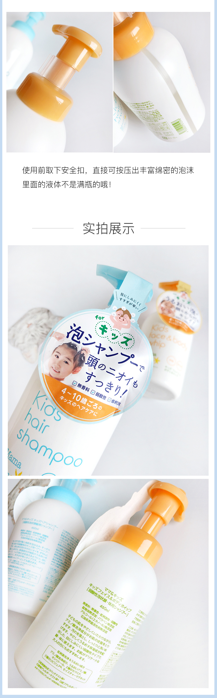 日本 mamakids大童专用泡沫洗发水/沐浴露460ml 适合4岁以上宝贝