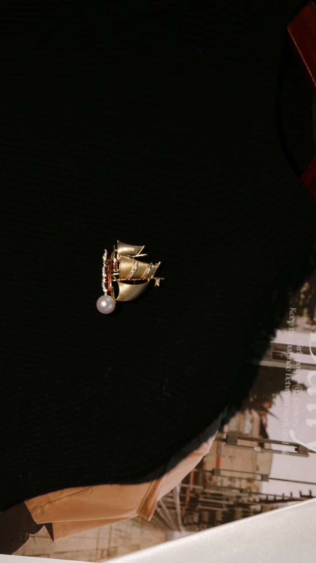 甄珠贝 【扬帆】天然淡水胸针 9-10mm 男士适用