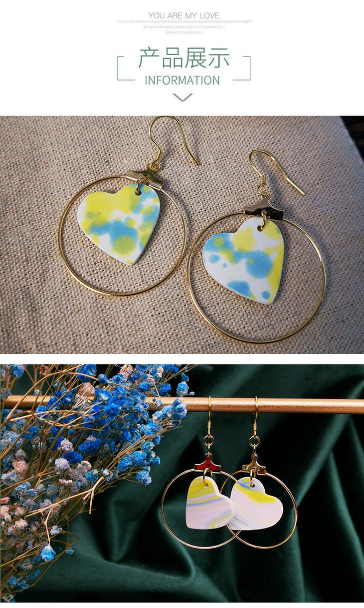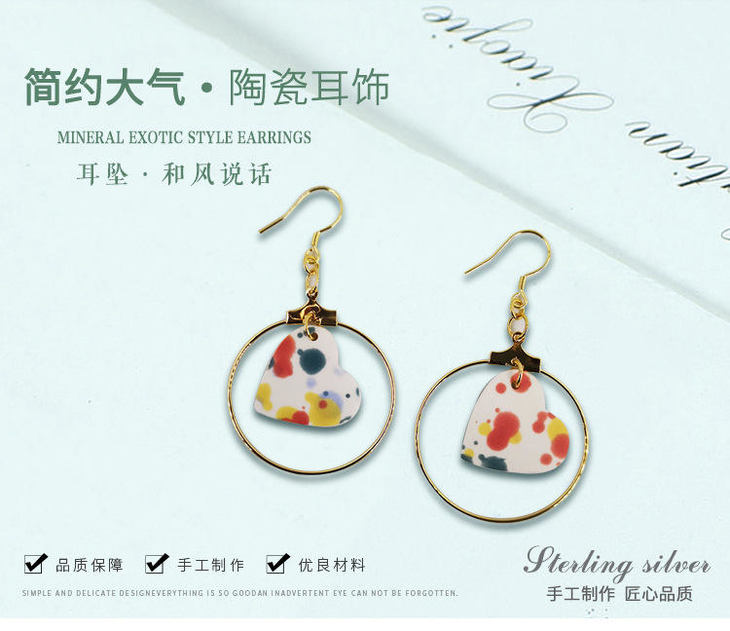 【 矢维艺术陶艺工作室】跨境陶瓷耳环(桃心)