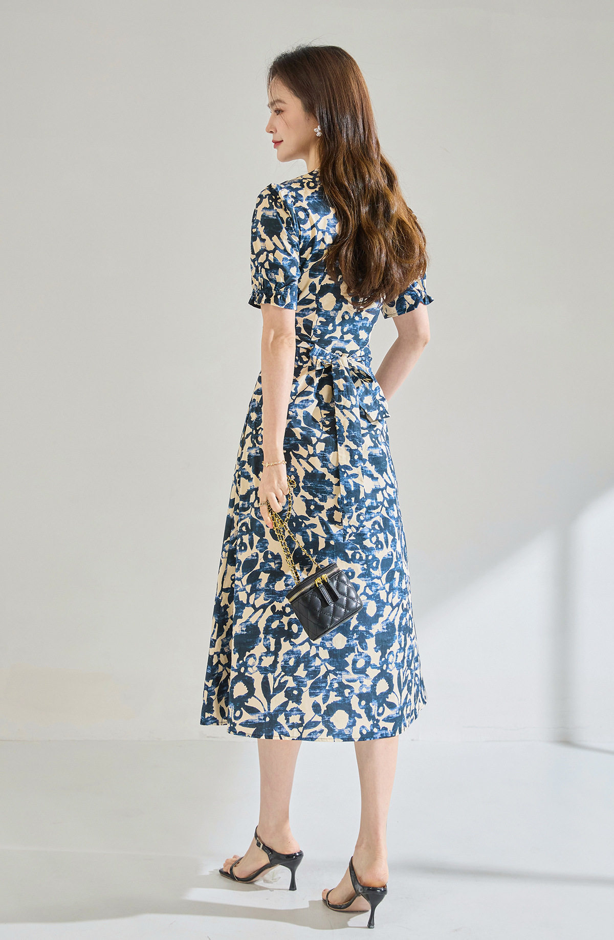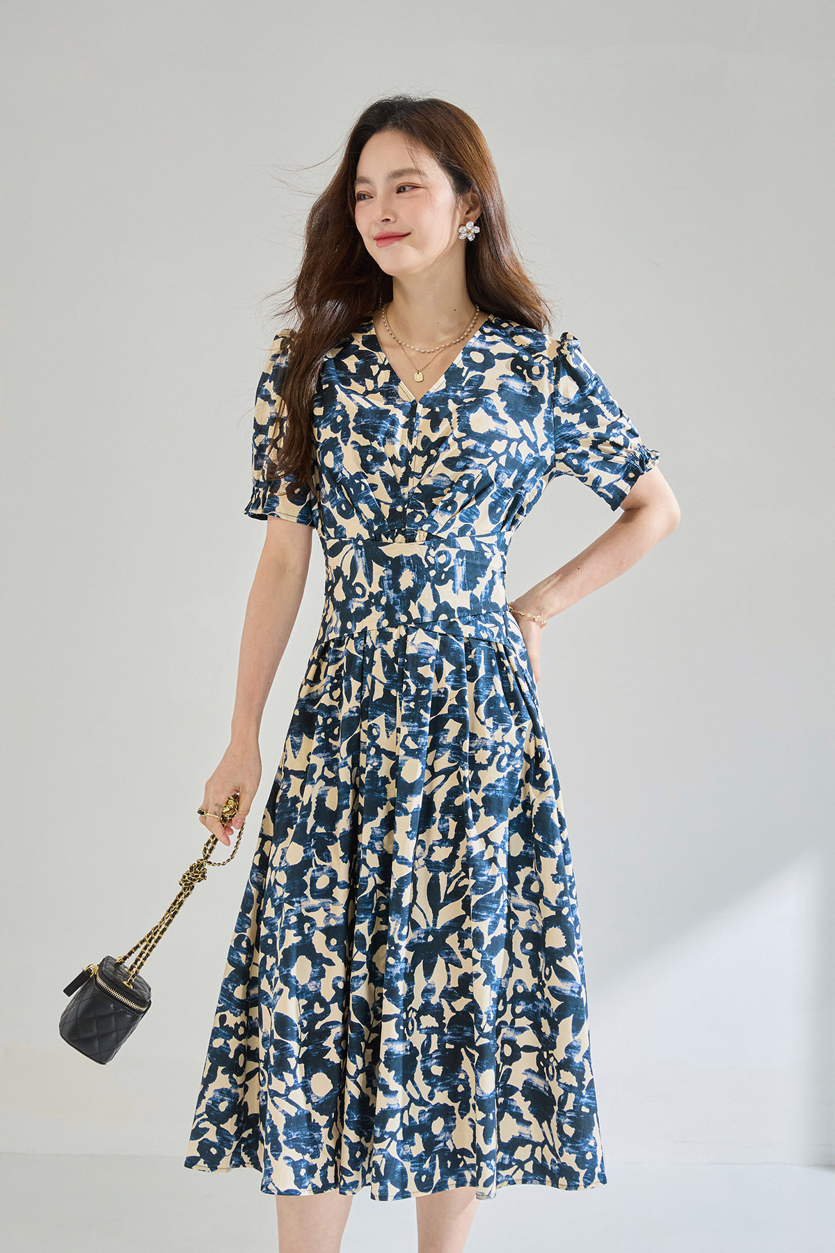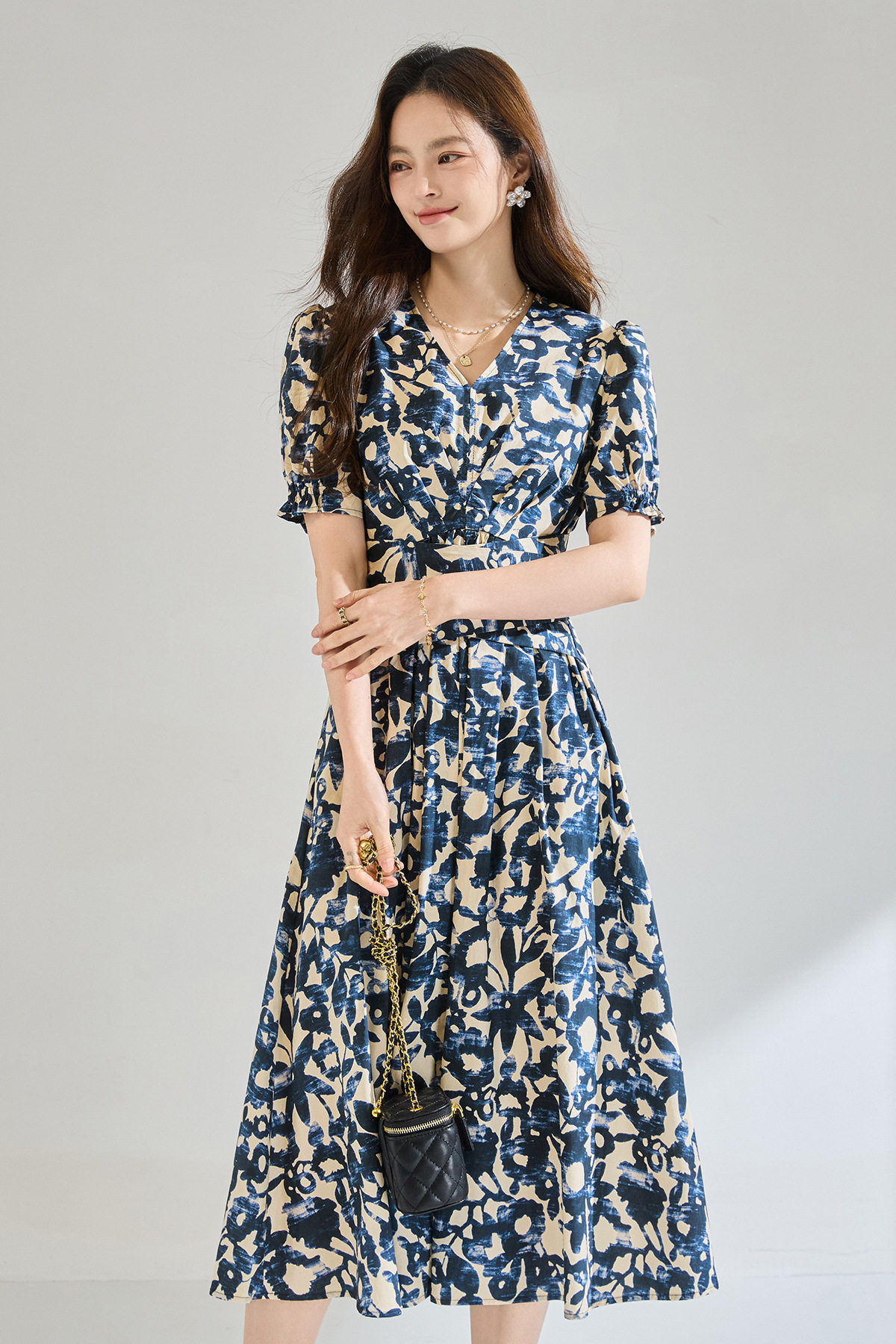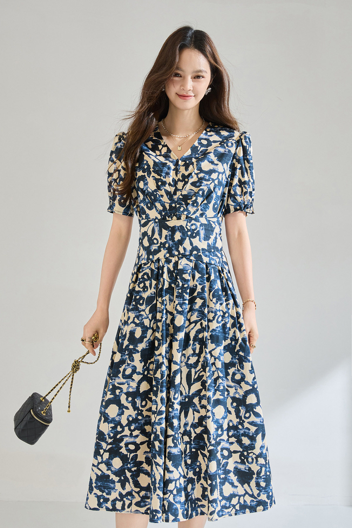「高货sh」全新升级【铂金会员293/天猫399/差价106】(15808)洛诗琳气质印花短袖连衣裙2026新款系带收腰显瘦茶歇裙