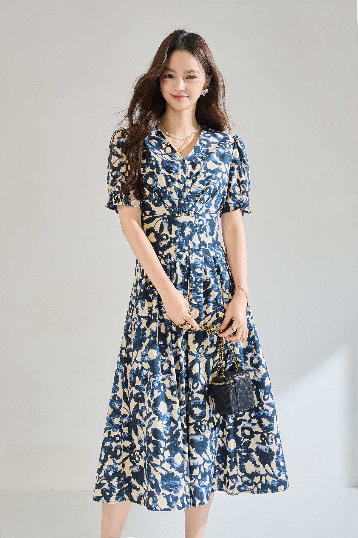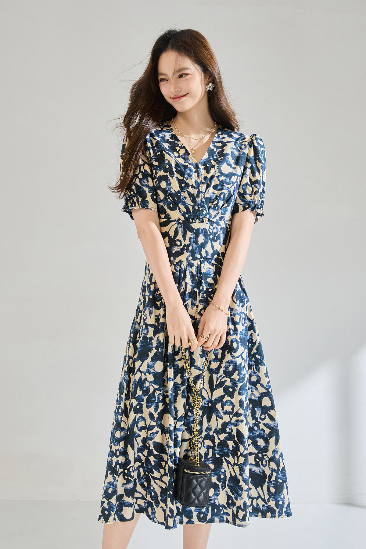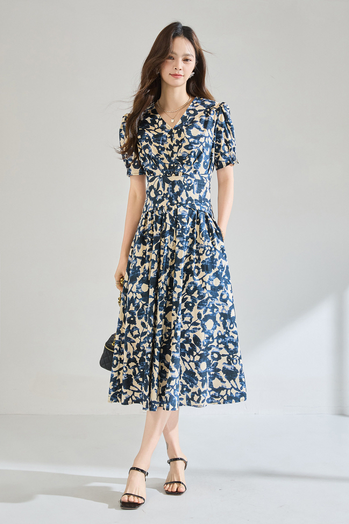 「高货sh」全新升级【铂金会员293/天猫399/差价106】(15808)洛诗琳气质印花短袖连衣裙2026新款系带收腰显瘦茶歇裙
