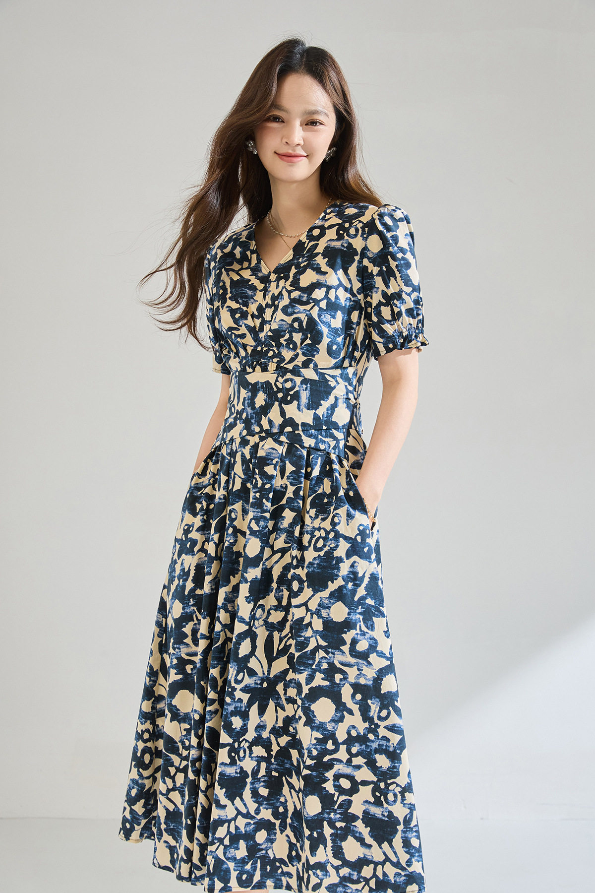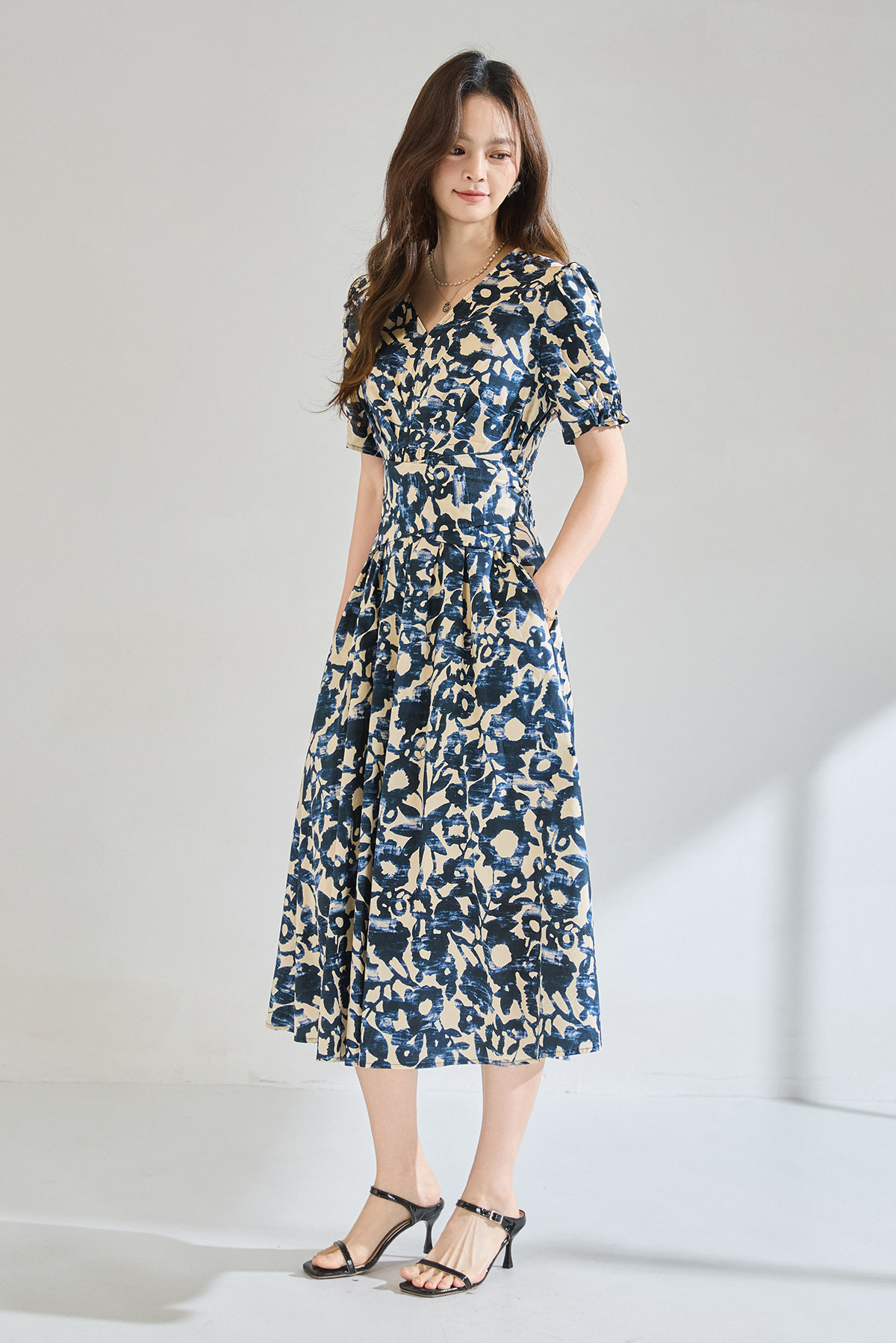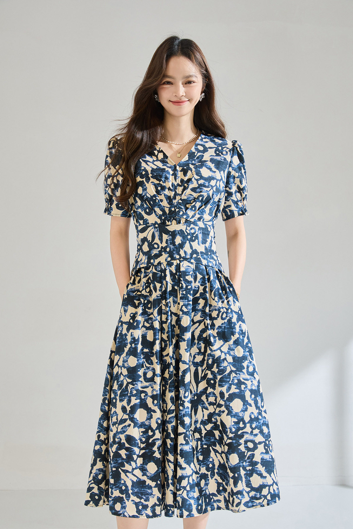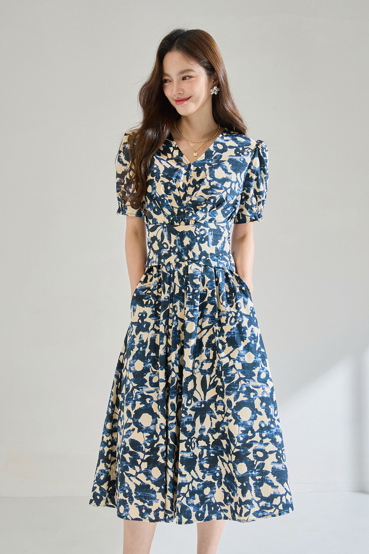 「高货sh」全新升级【铂金会员293/天猫399/差价106】(15808)洛诗琳气质印花短袖连衣裙2026新款系带收腰显瘦茶歇裙