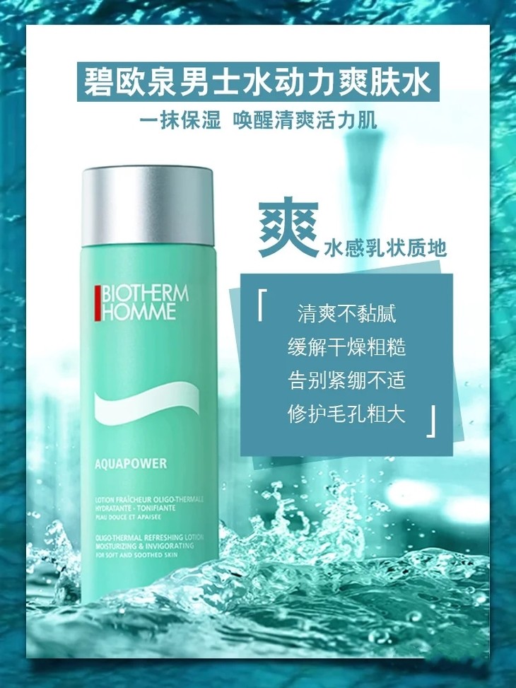 碧欧泉水动力男士爽肤水200ml👍 送男友首选🎁!油光满面的男孩总是显得油腻💪,今天开始我们告别油腻男孩👋~让肌肤保持水油平衡十分重要。爽肤水是水乳质地💧,上脸后会变成水,吸收得很快,😌湿敷镇定效果很好,还有淡淡的古龙香🌸。含有的益生微生物发酵物协同矿物微量元素🌱,有效肌肤洁净、润透、舒畅。还可以做须后水😆,能缓解因刮胡导致的皮肤泛红刺痛不适感,一瓶两用特别方便㊙️。