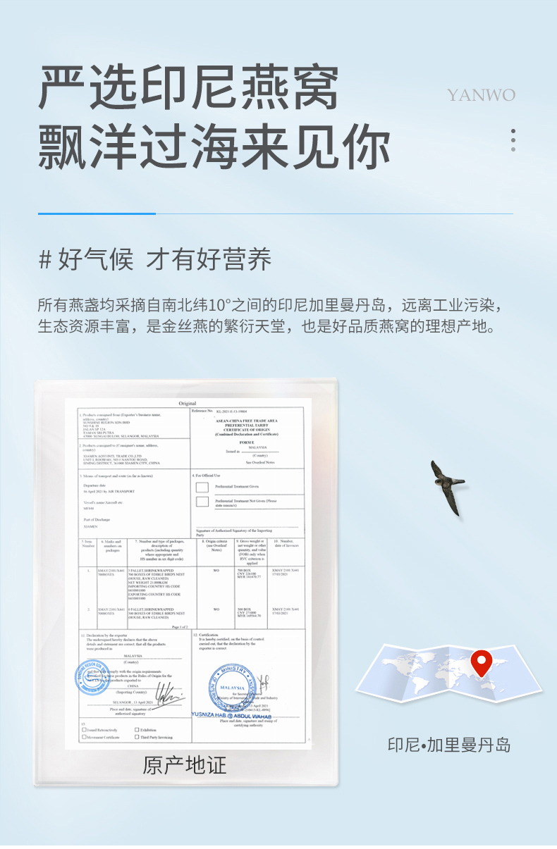 燕玲人印尼溯源进口燕窝礼盒(疏盏)/1盒(3g±0.3g*10盏)生产日期:25年1月补单专用