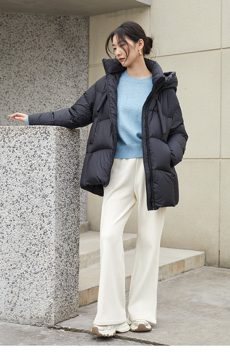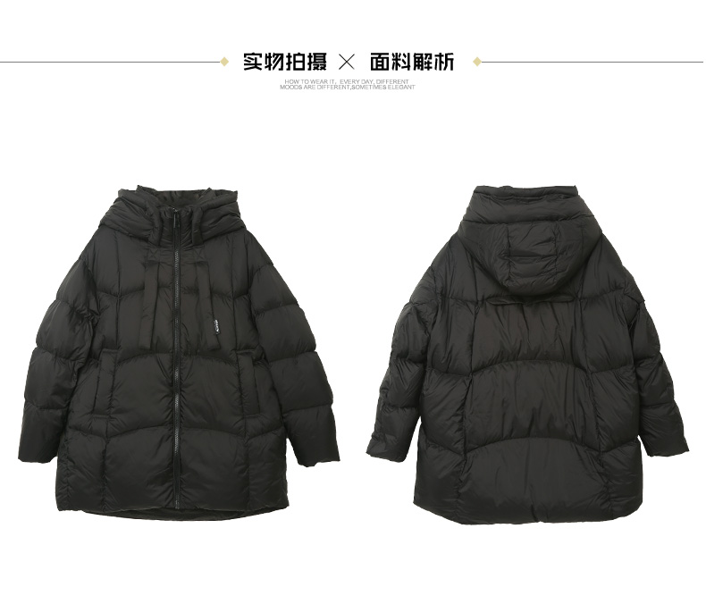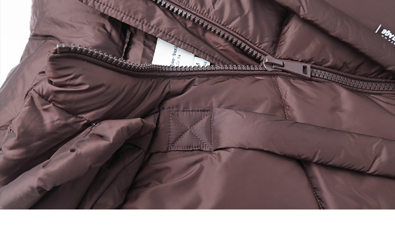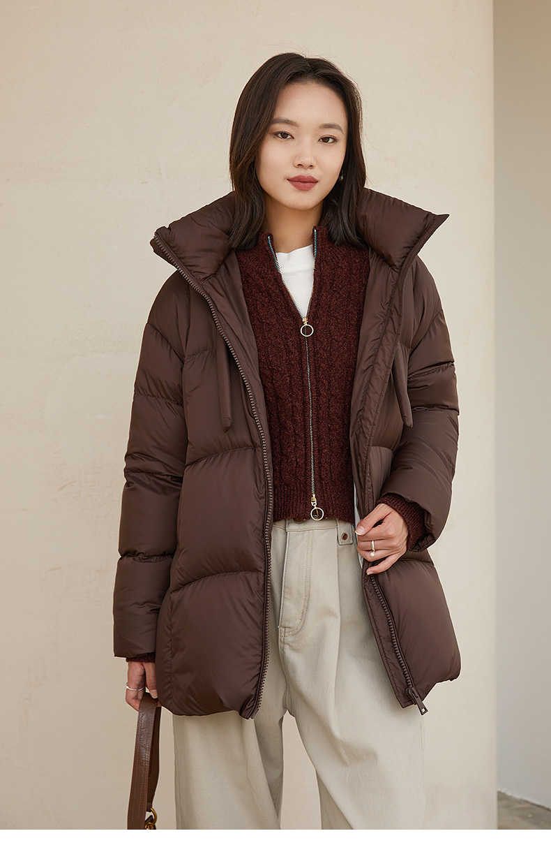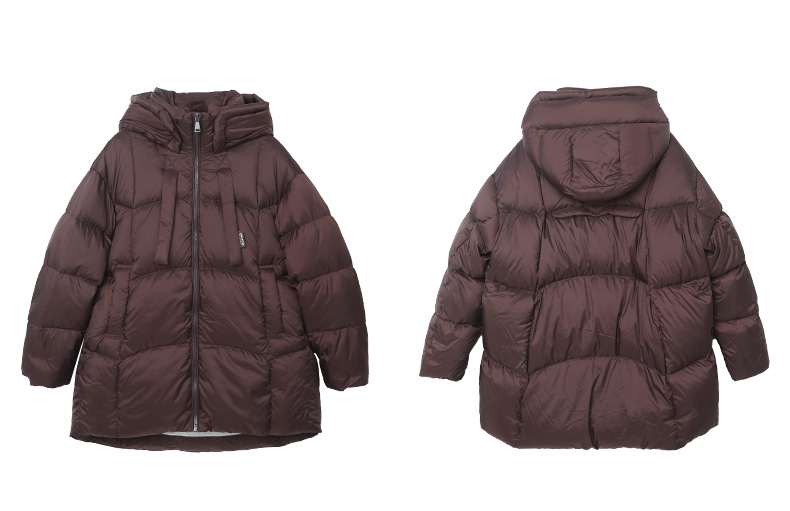 【鹅绒】深棕色连帽中长款羽绒服 秋冬宽松廓形拉链保暖面包服外套