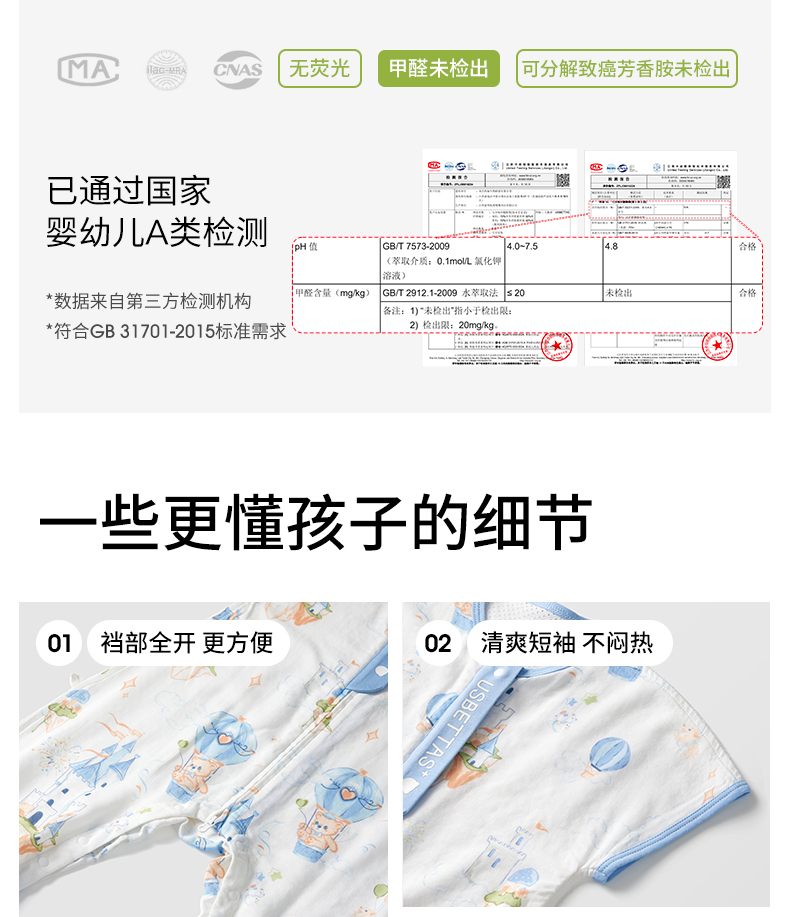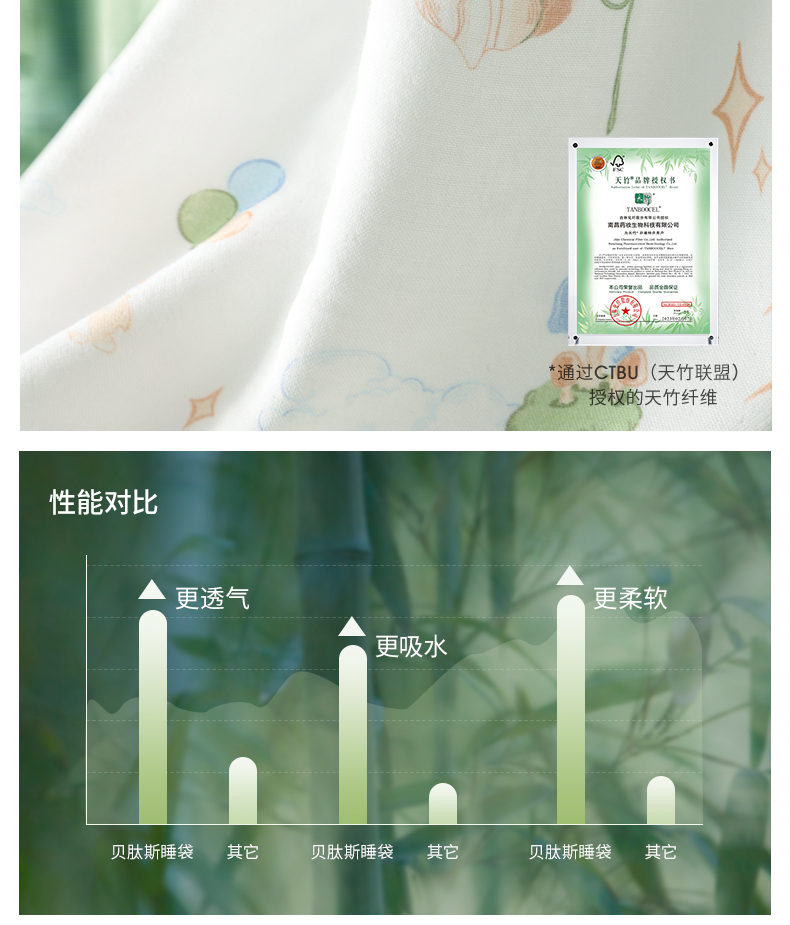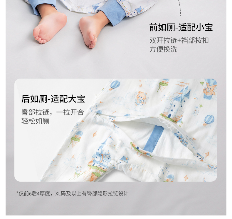 【孕味秒杀专属】贝肽斯【自呼吸】婴儿睡袋春夏季纱布薄款宝宝分腿防踢被四季通用