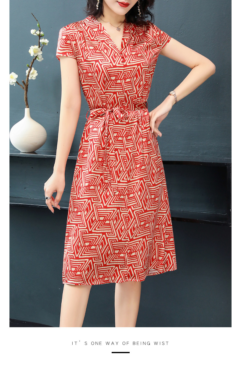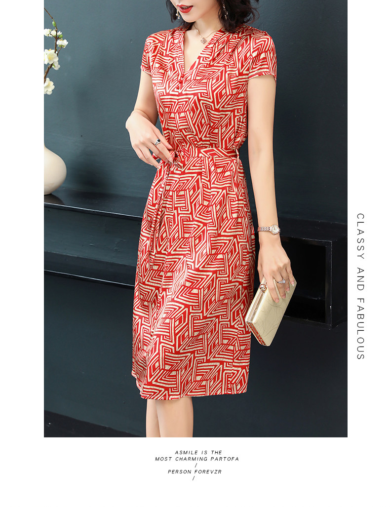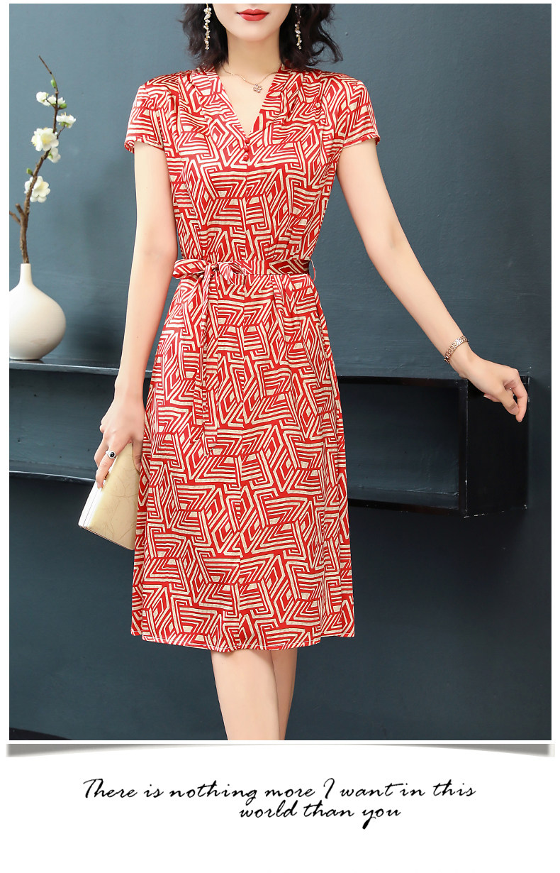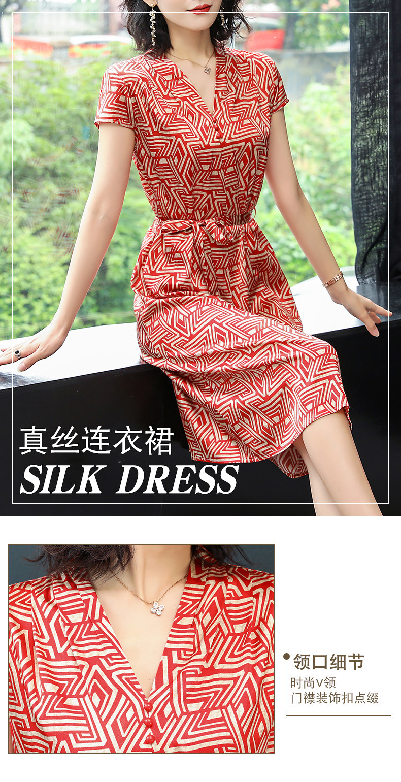 LS-c132中长款气质大牌夏新款收腰显瘦桑蚕丝裙子