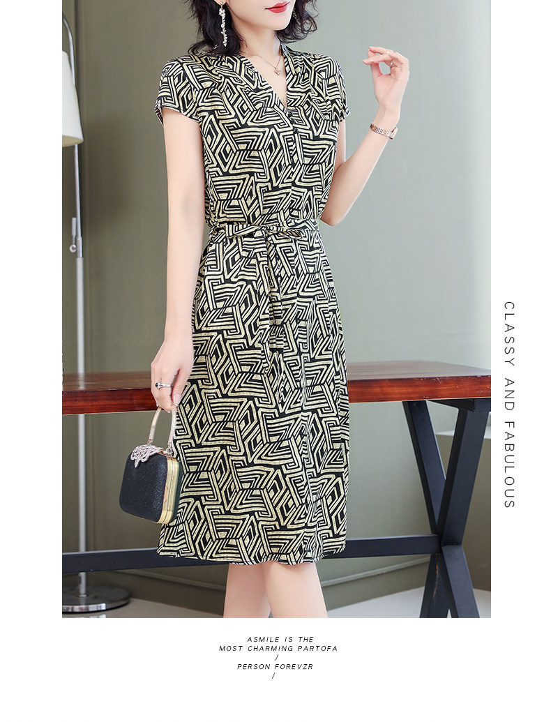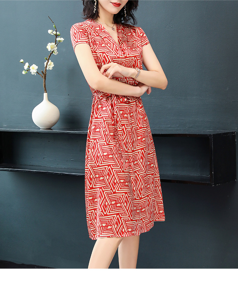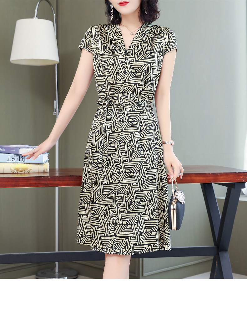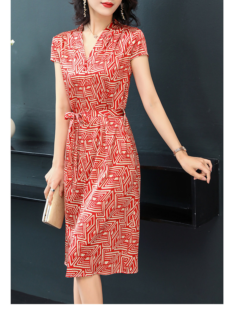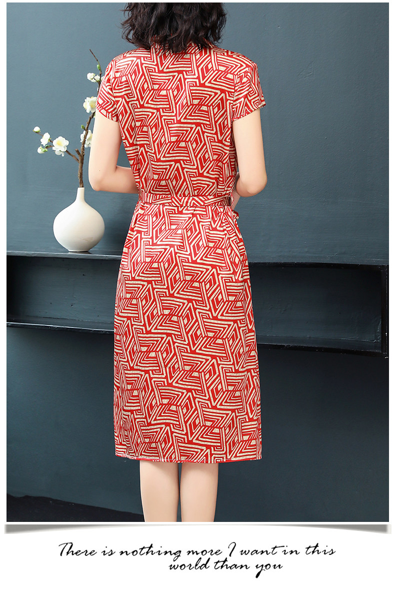 LS-c132中长款气质大牌夏新款收腰显瘦桑蚕丝裙子