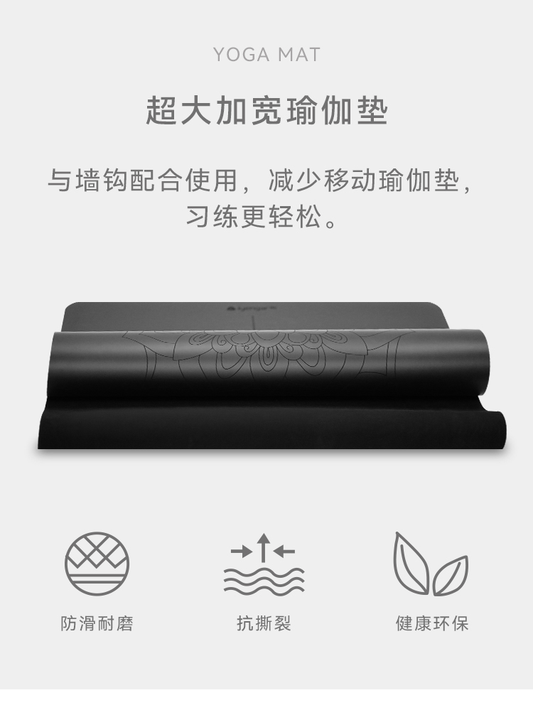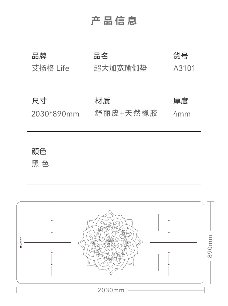 艾扬格 life A3101超大加宽天然橡胶瑜伽垫 矩阵条纹防滑工艺-超强抓地 稳固防滑 更大空间自由伸展 尺寸:2030*890mm