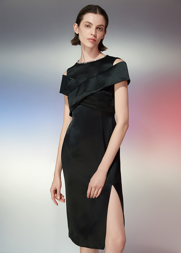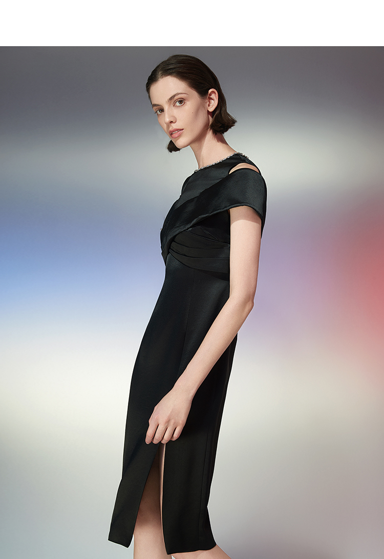 EITIE爱特爱夏季新款设计感小众法式连衣裙气质修身礼服7777418