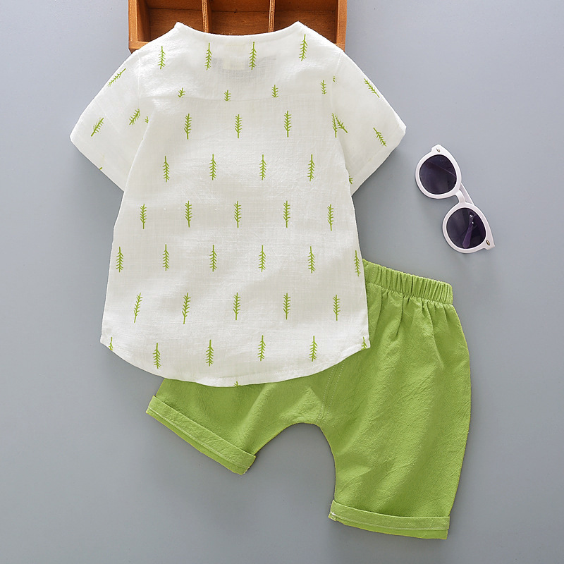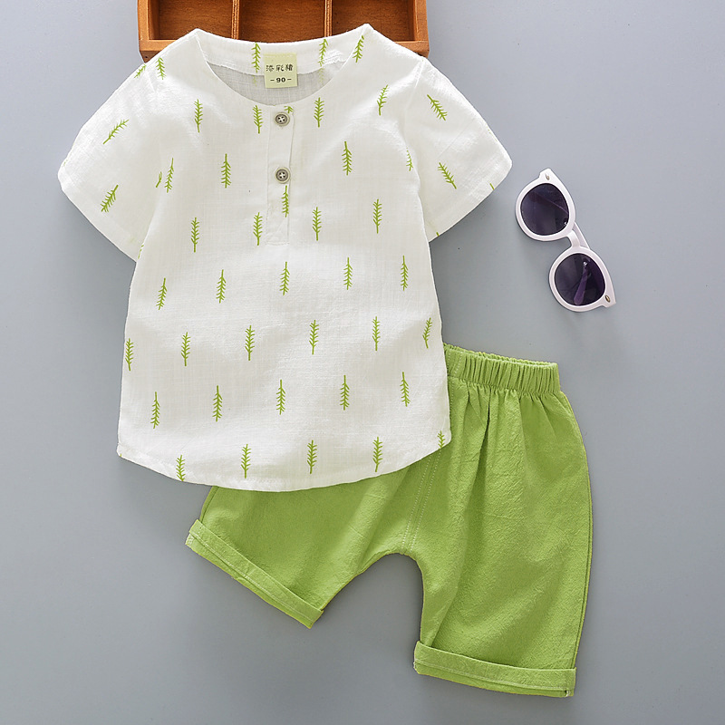 XBR-男童棉麻短袖衬衫套装 2020新款宝宝两件套