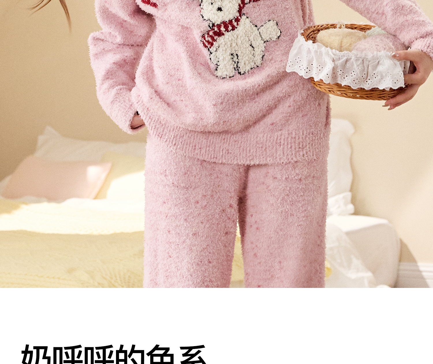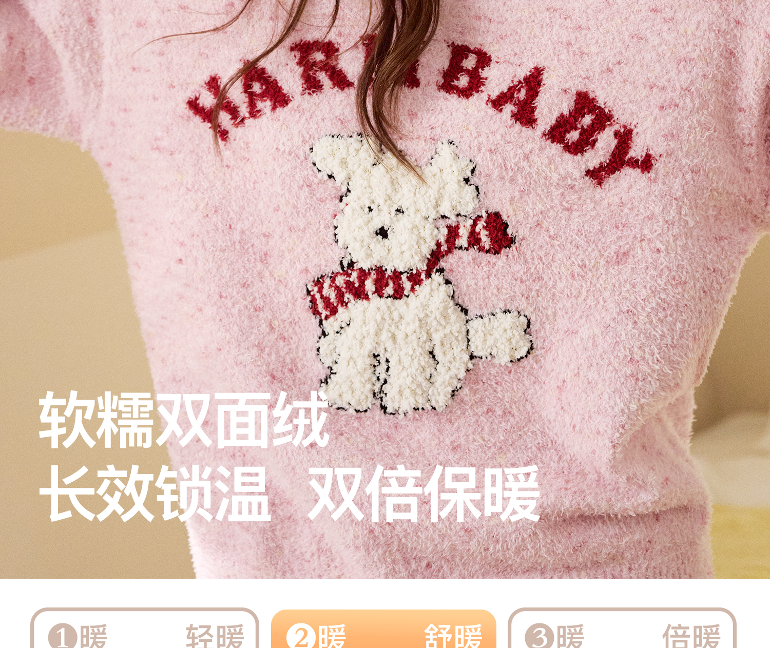 内茵 半边绒粉色小狗款家居服套装JLAB65