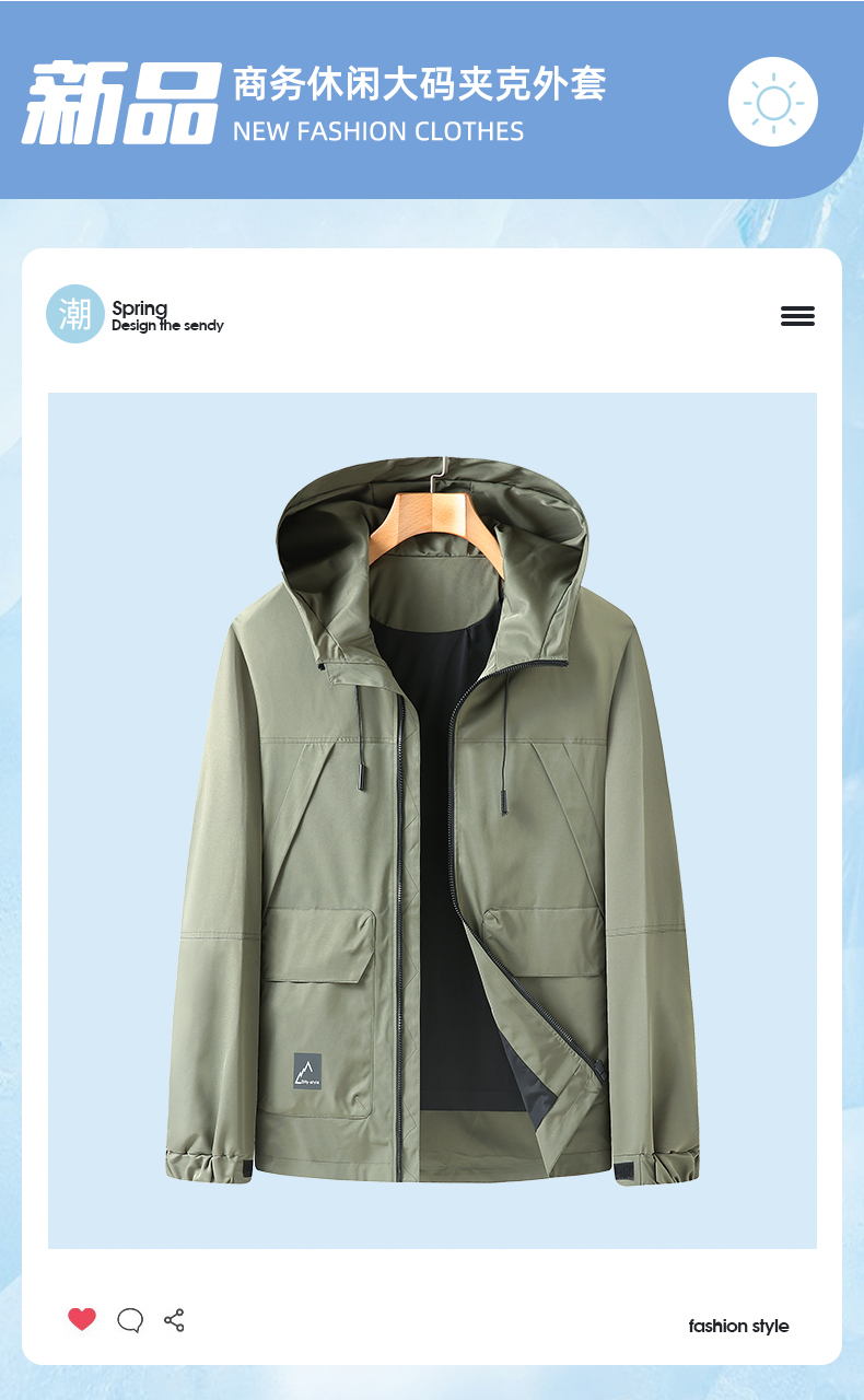 一口价【新款DX】大依优型大码连帽夹克外套休闲商务大码男装加肥加大胖子