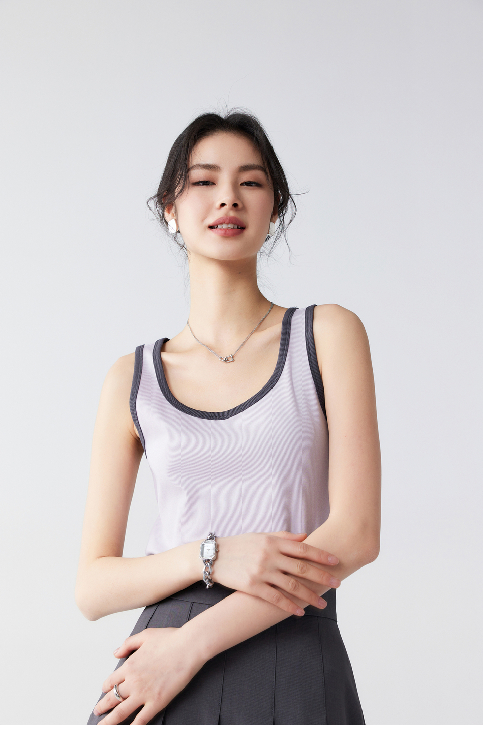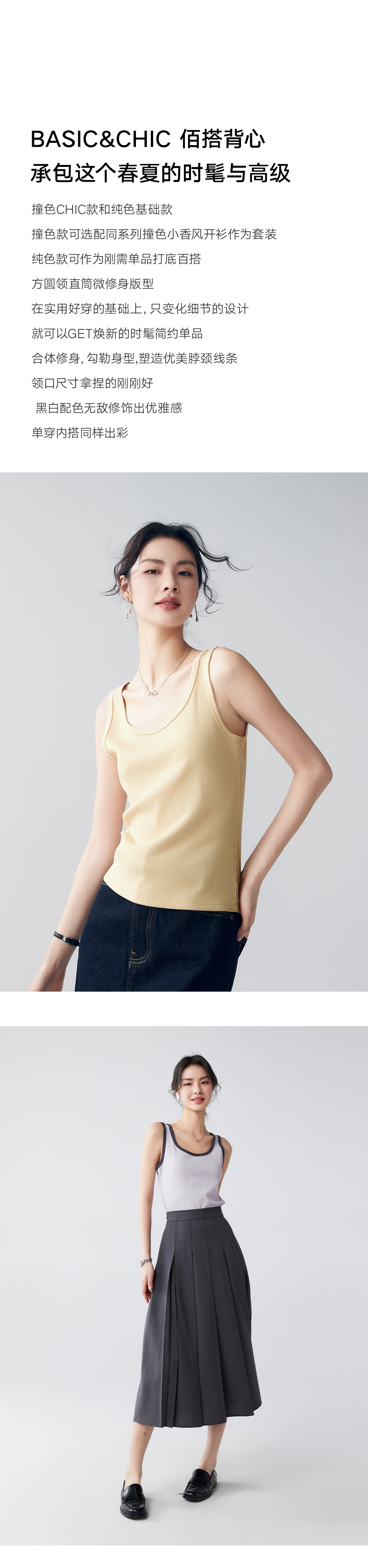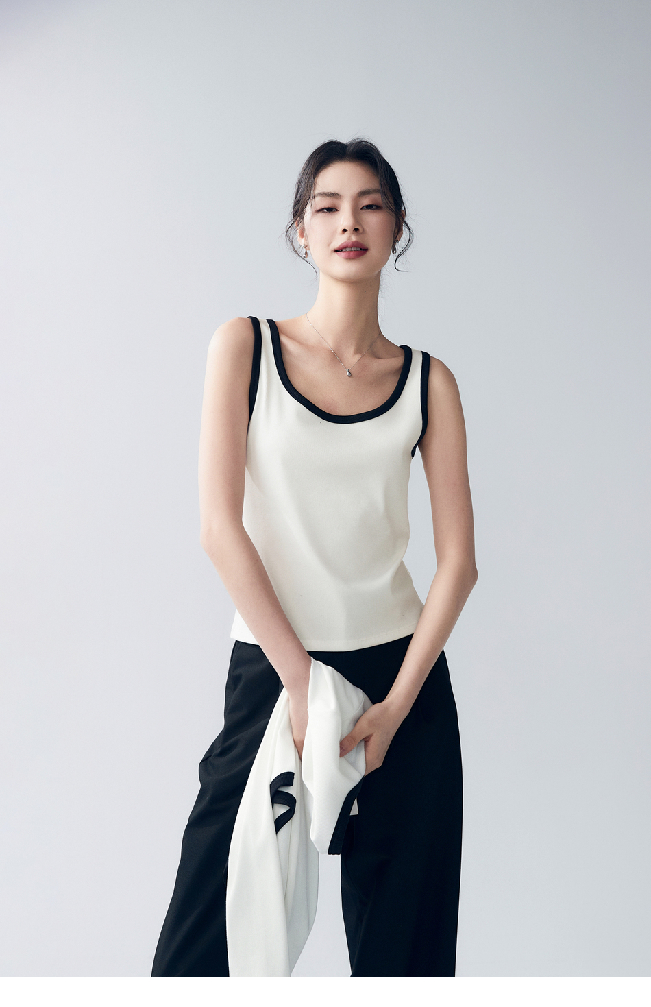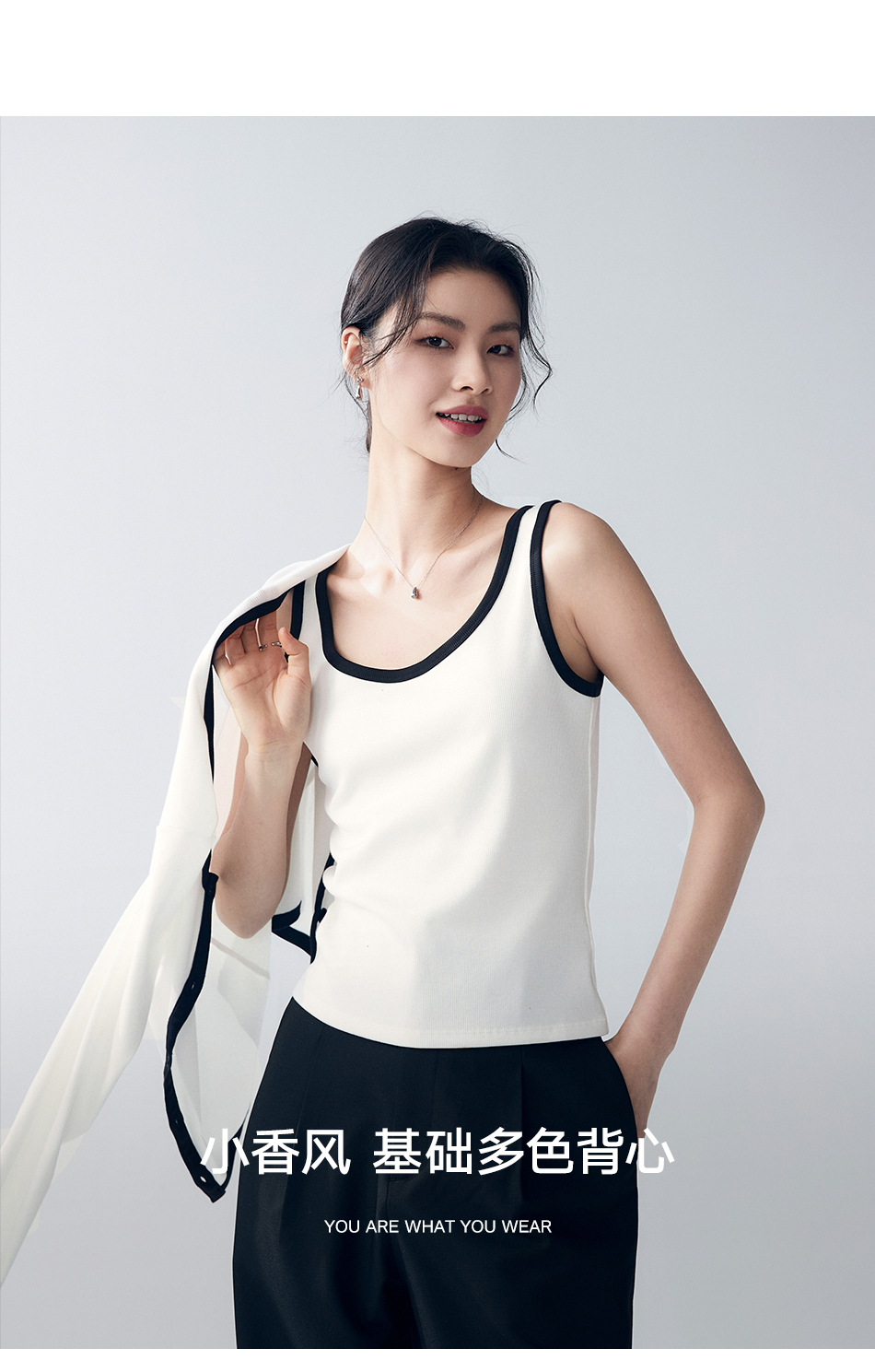 (小眠专属)初棉实用美学显瘦背心 | 万能基础款,黑白小香风撞色,修身显瘦 352603004