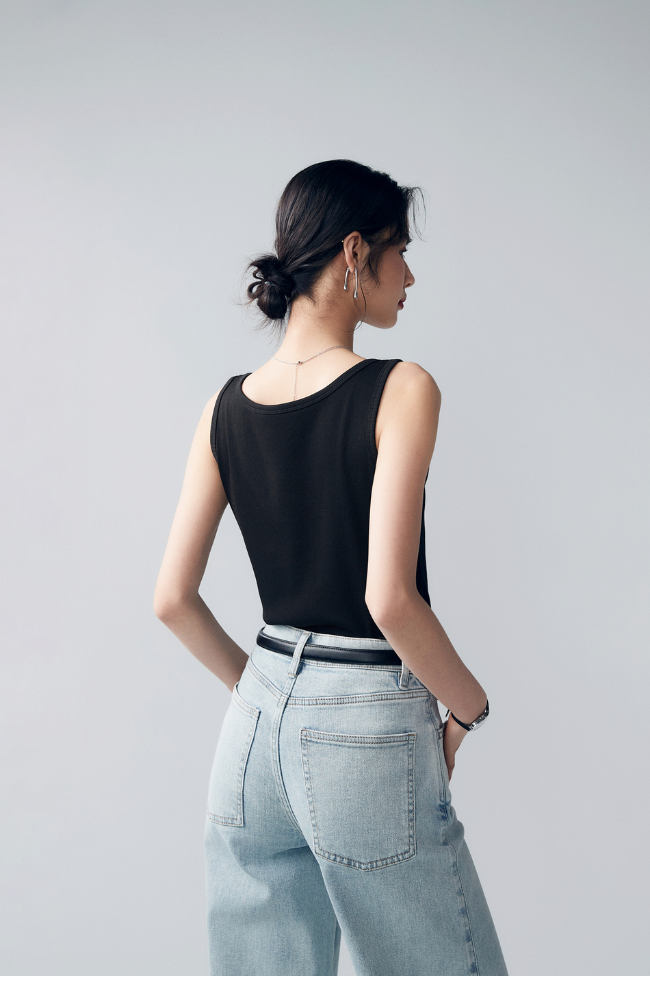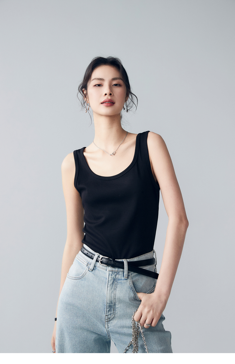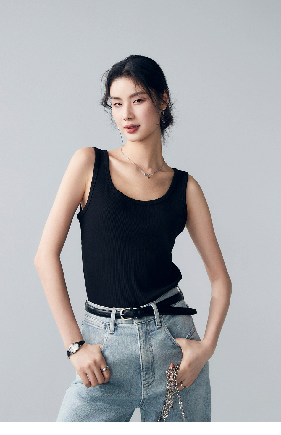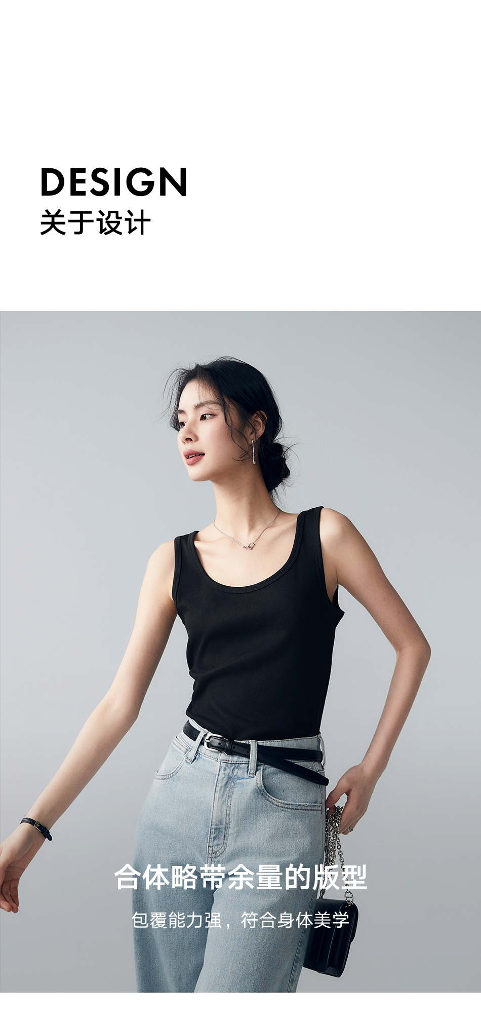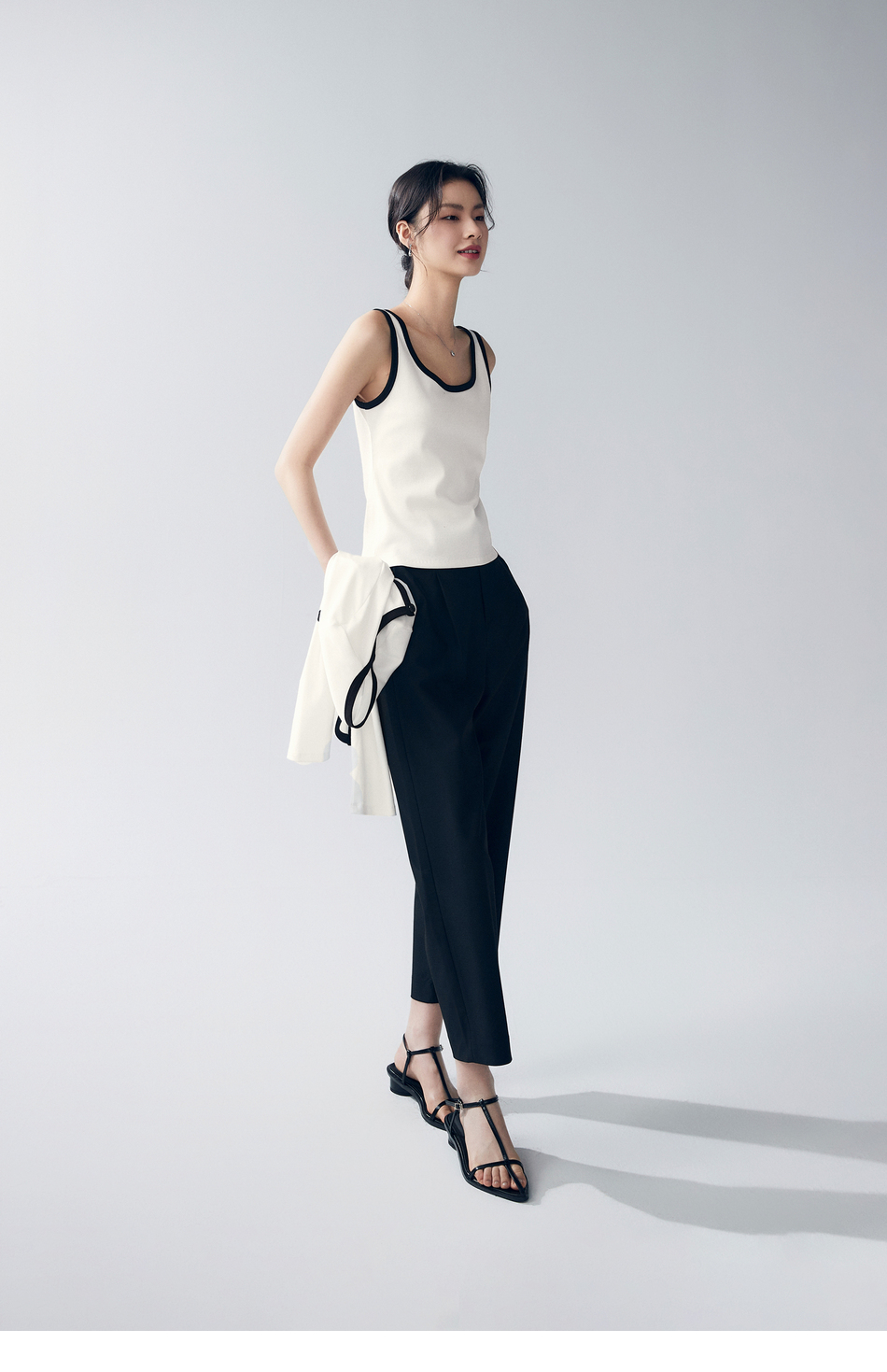 (小眠专属)初棉实用美学显瘦背心 | 万能基础款,黑白小香风撞色,修身显瘦 352603004