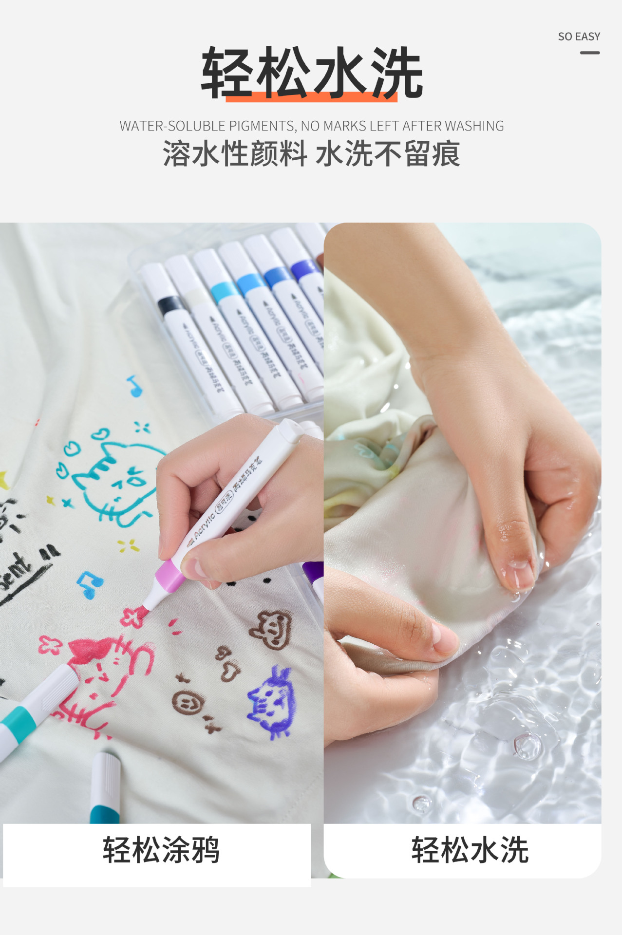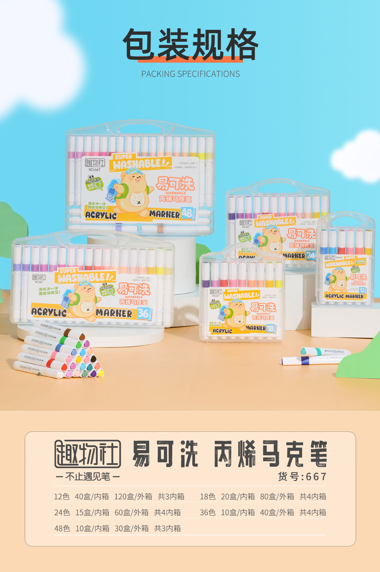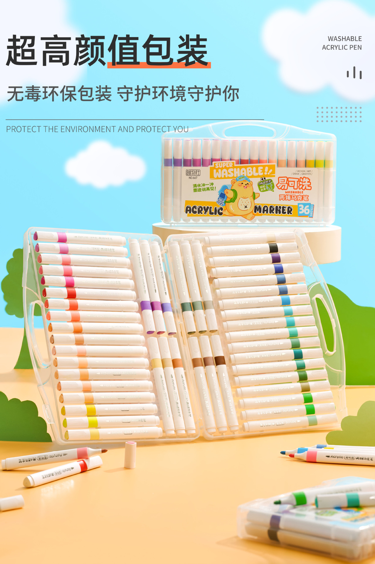 福利款【轻松洗的丙烯马克笔 水洗不留痕】易可洗丙烯马克笔12色/24色/48色 万物皆可画 清水洗一洗 配赠收纳盒