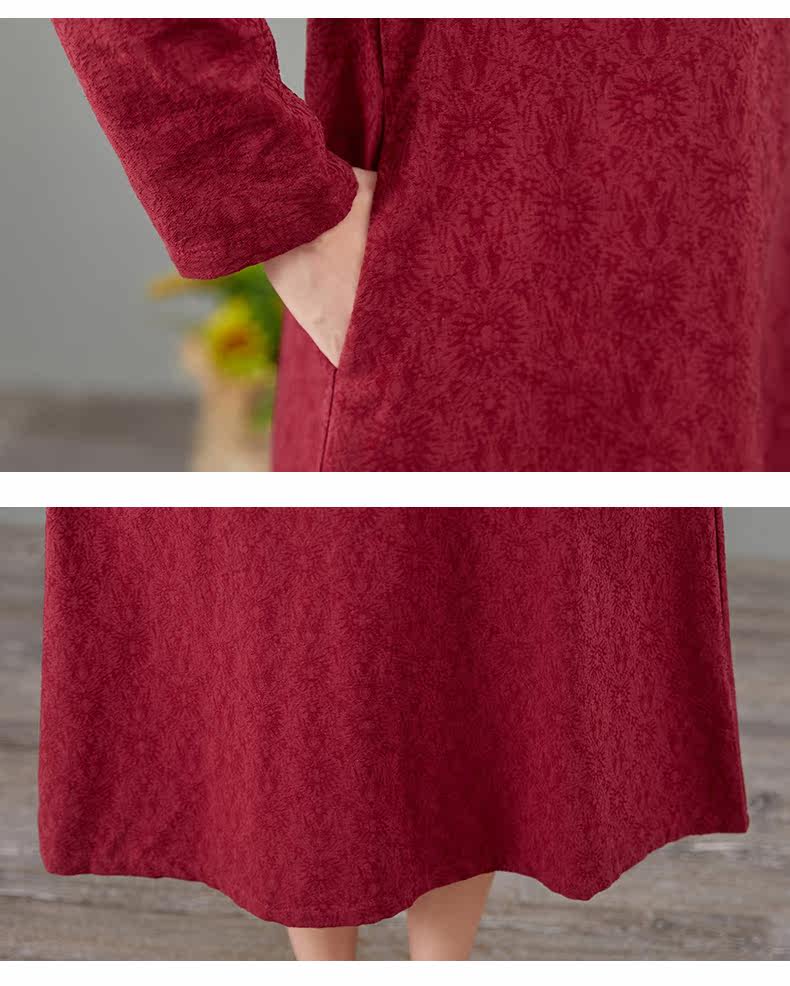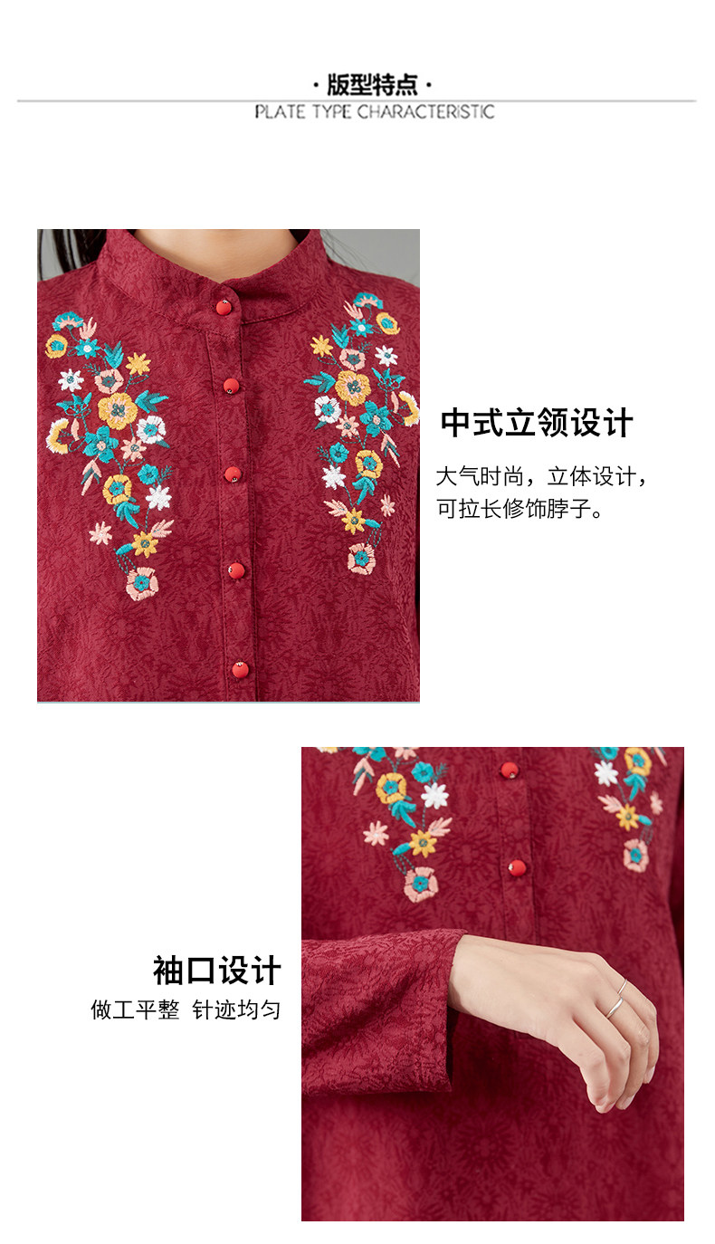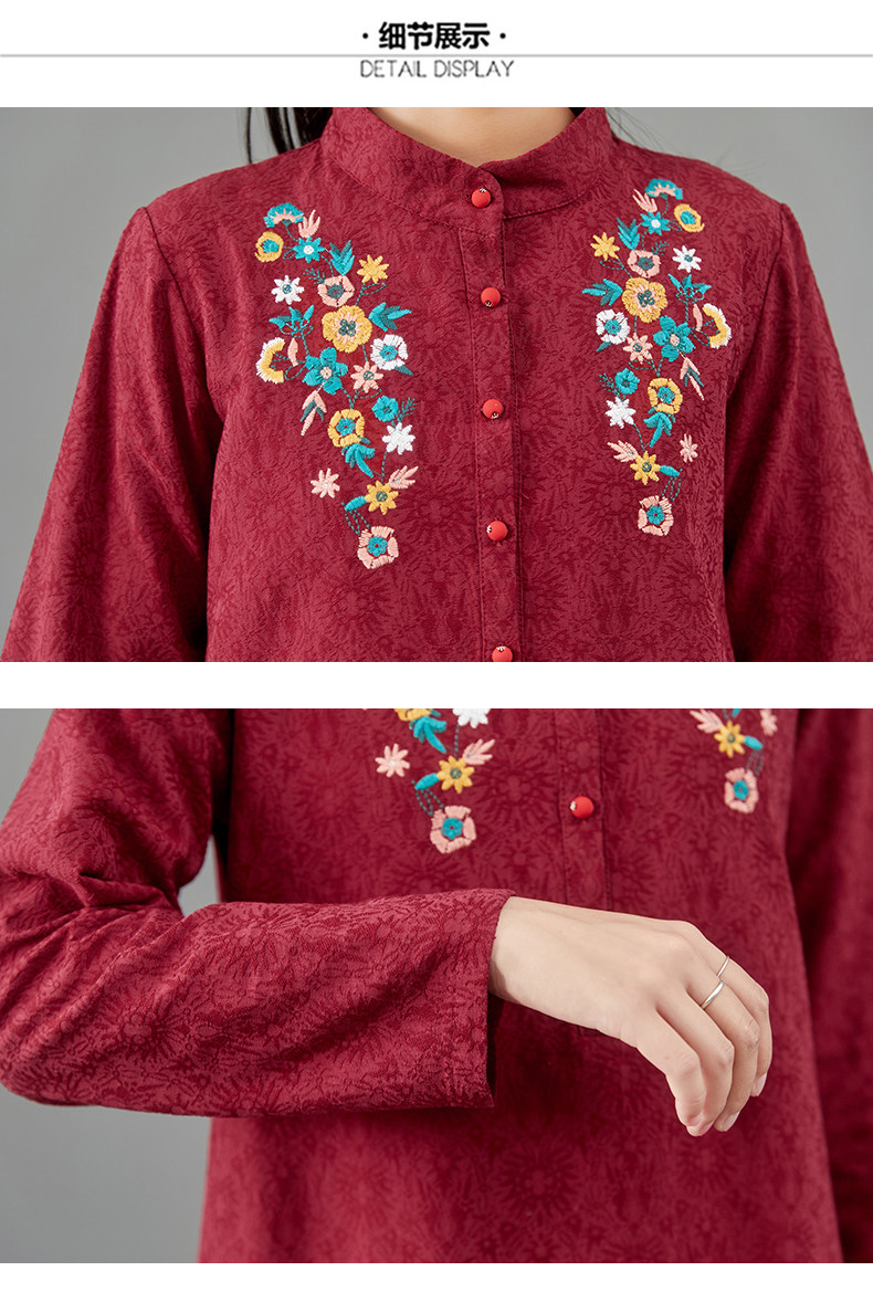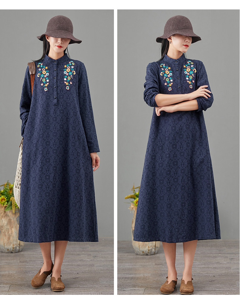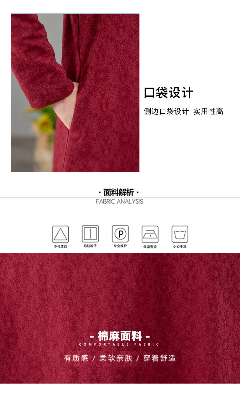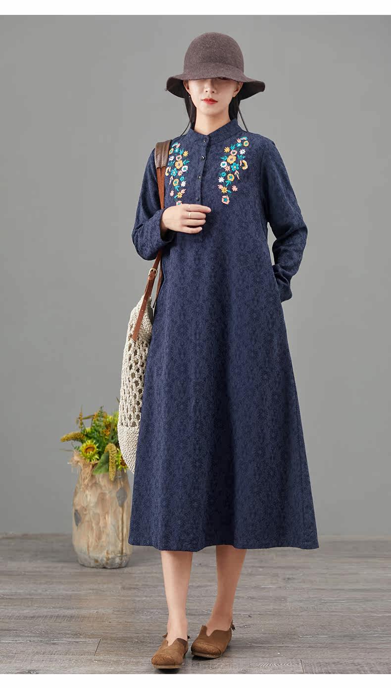 MQ-1918-2春秋新款大码民族风刺绣棉麻提花长袖素色裙YY