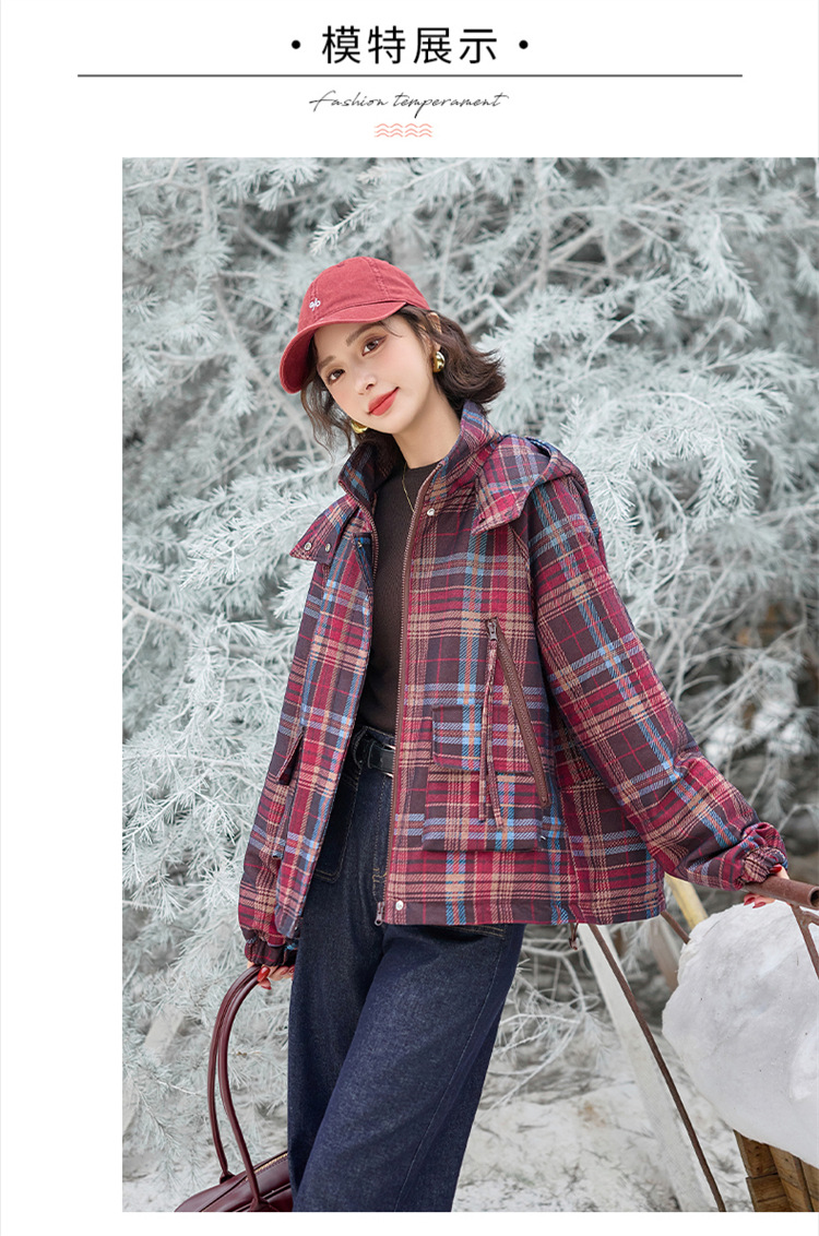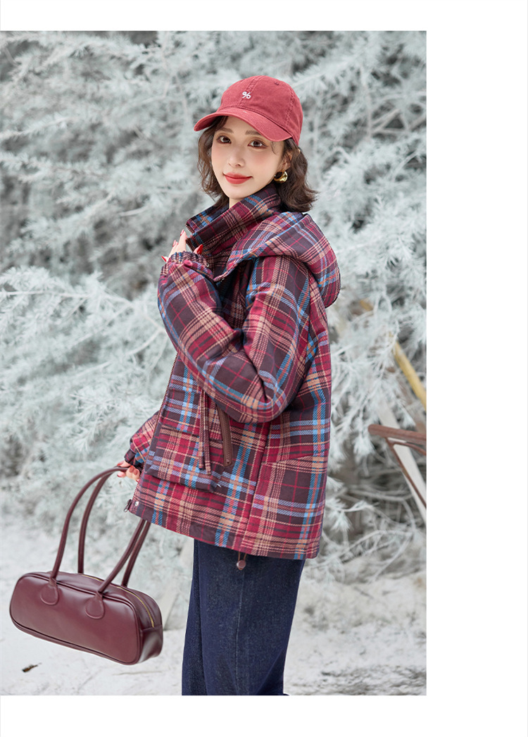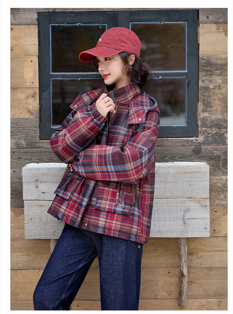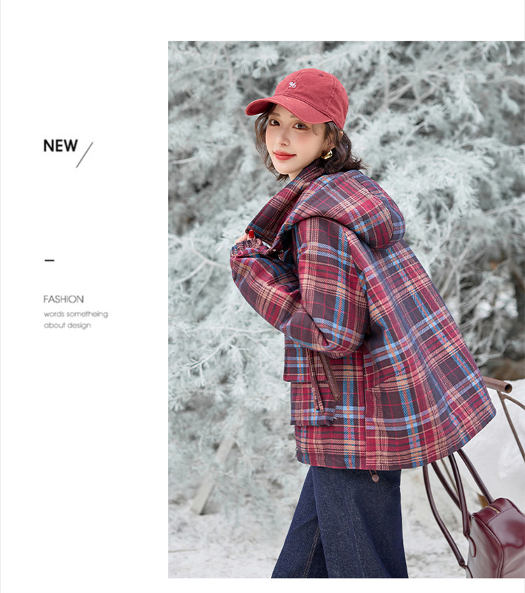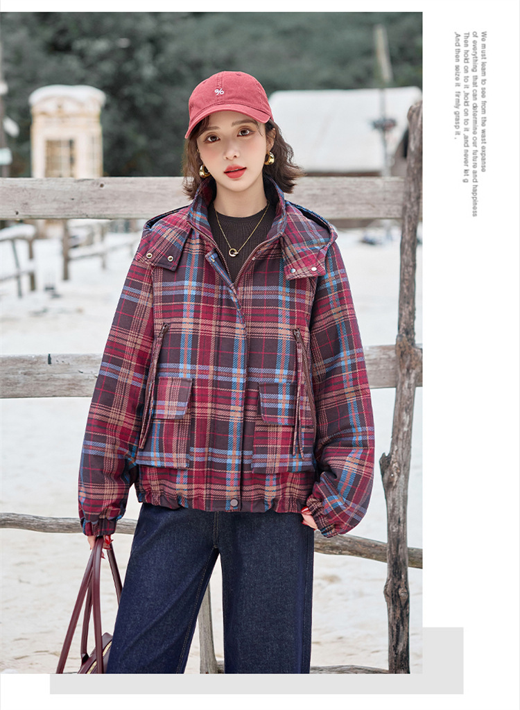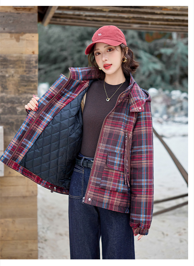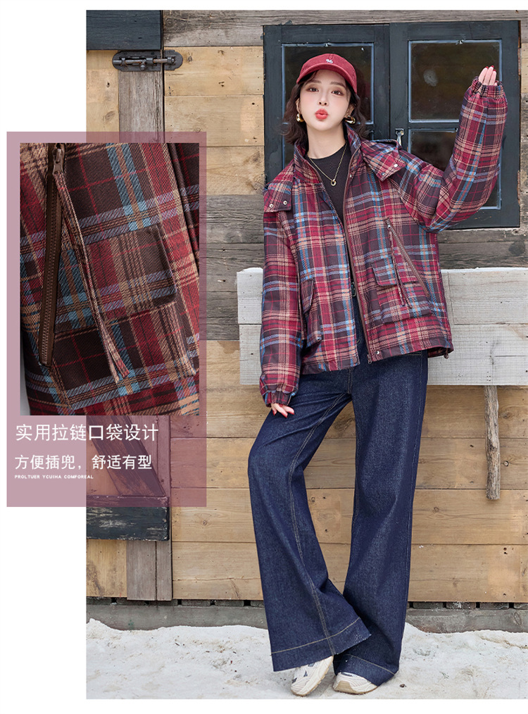 HR SYY2904棉服牛仔格纹连帽宽松加厚短款洋气时尚外套 商品图4