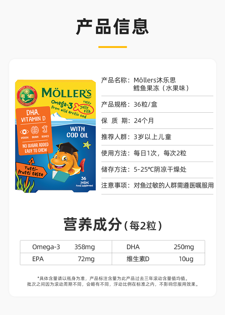 挪威mollers 鳕鱼油果冻 小鱼果冻水果味 36粒/盒-店铺展示