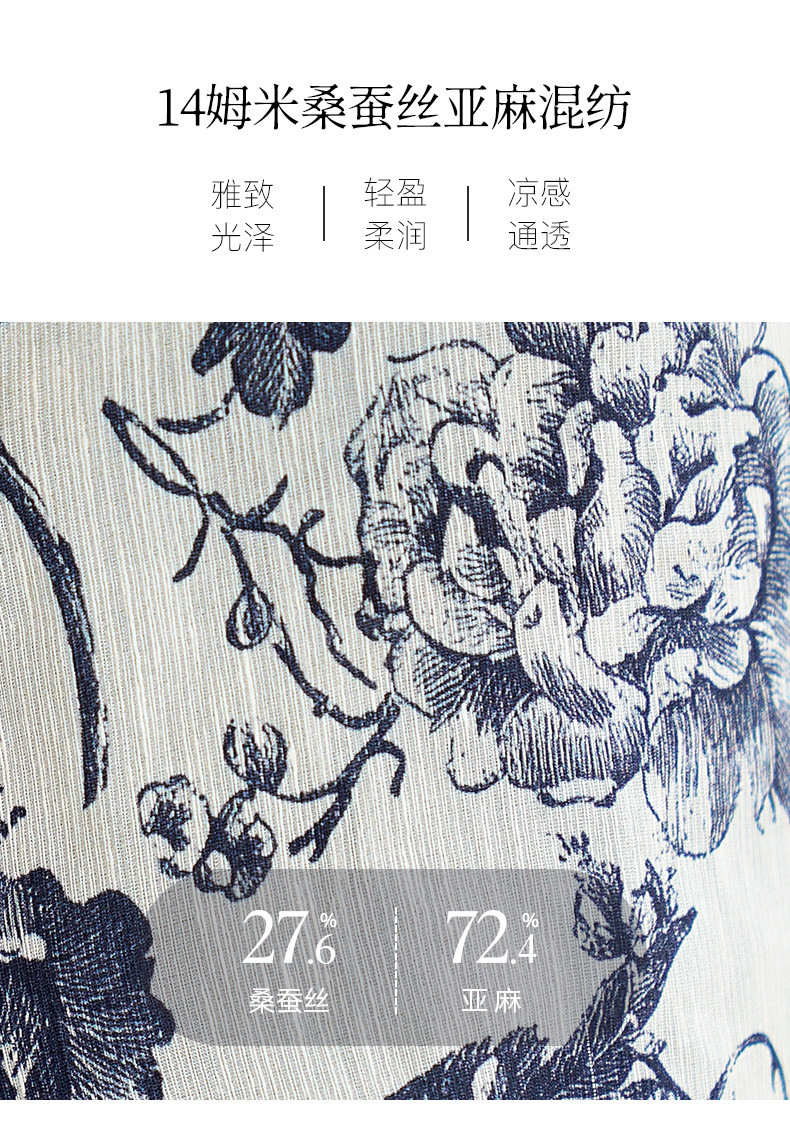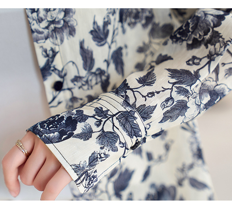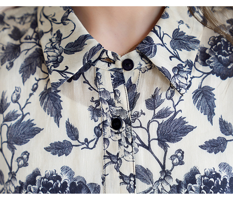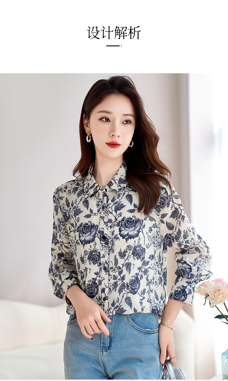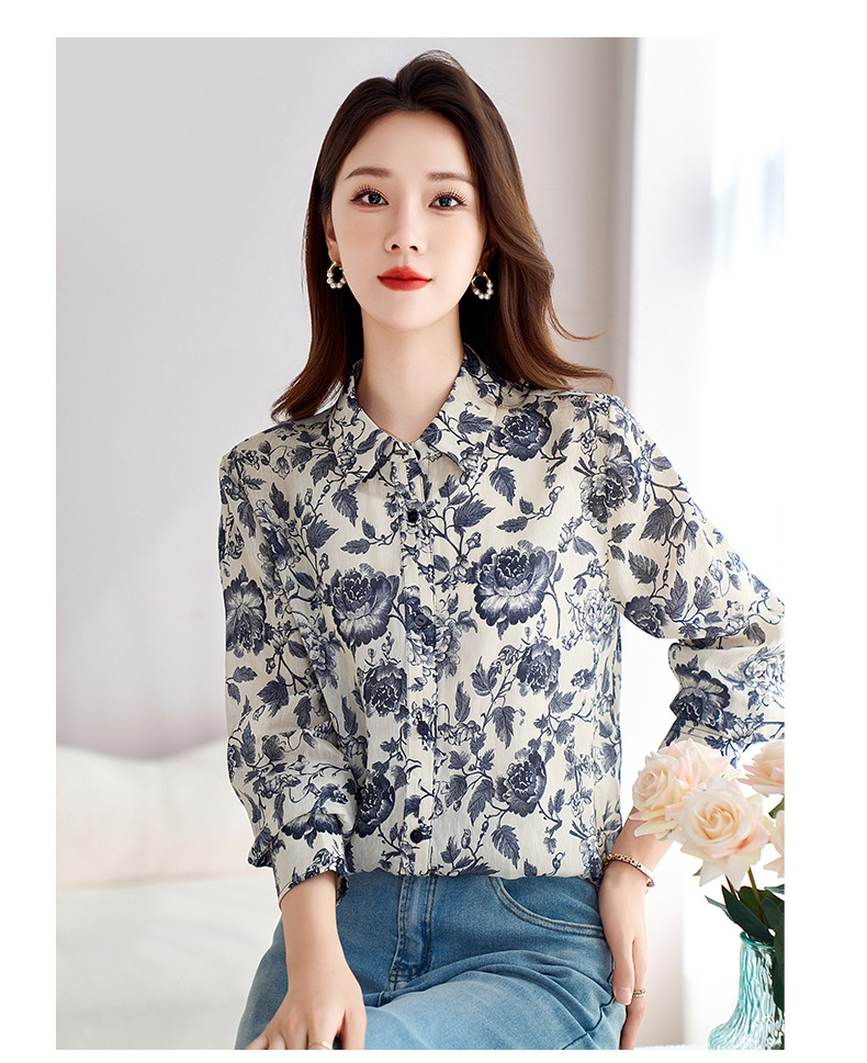 QS-12599628春季上衣女原创国风印花衬衣女真丝亚麻青花瓷长袖衬衫女9768