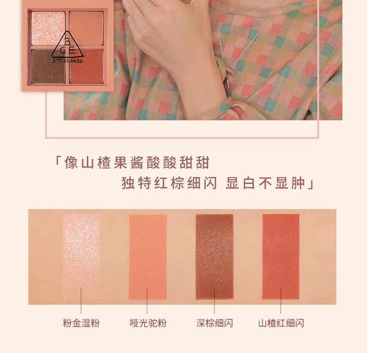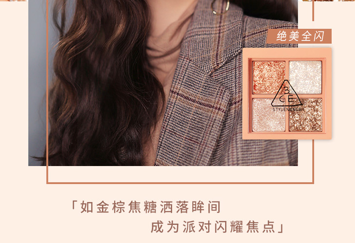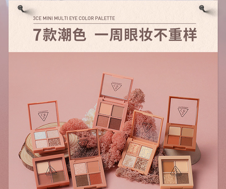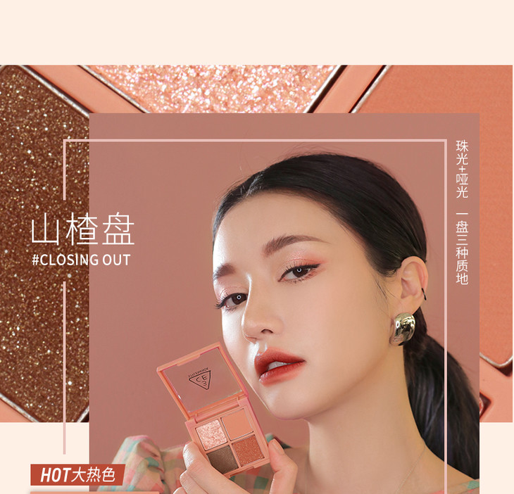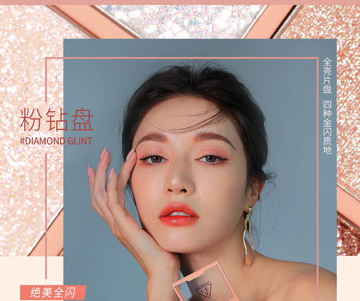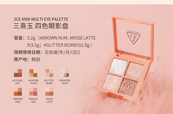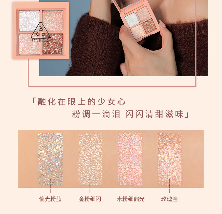 3CE四色眼影盘4色全闪金钻粉钻彩妆盘珠光便携