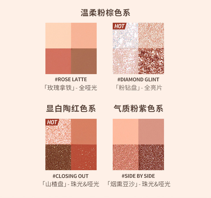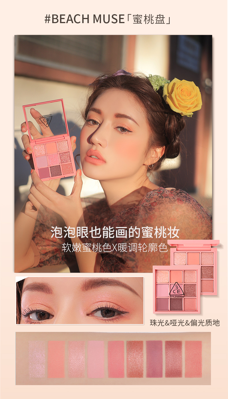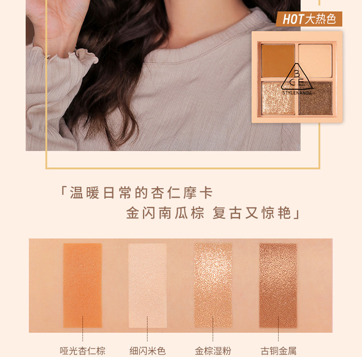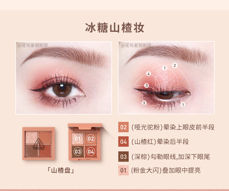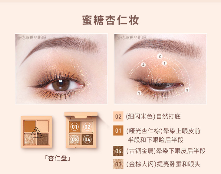 3CE四色眼影盘4色全闪金钻粉钻彩妆盘珠光便携