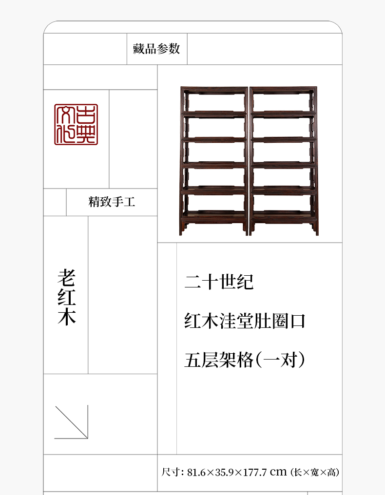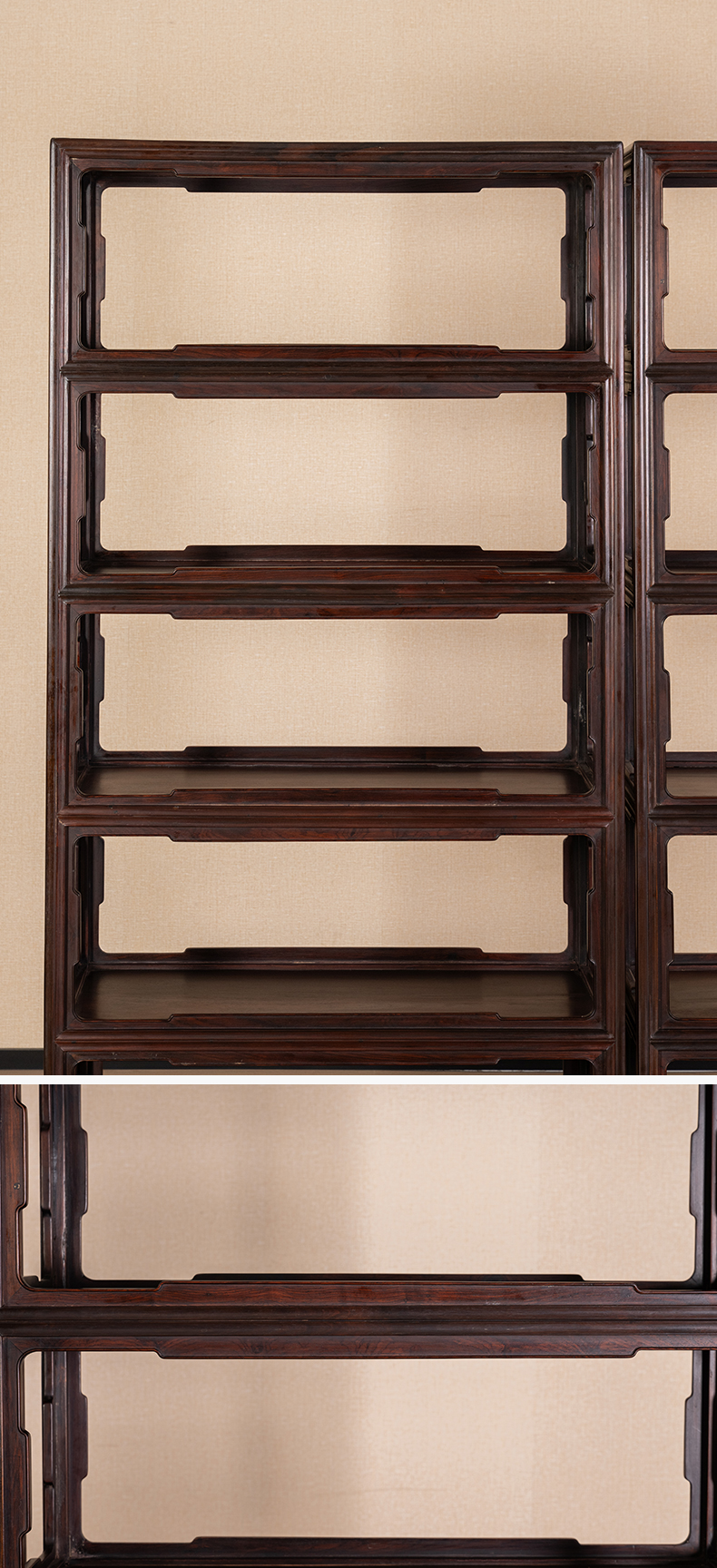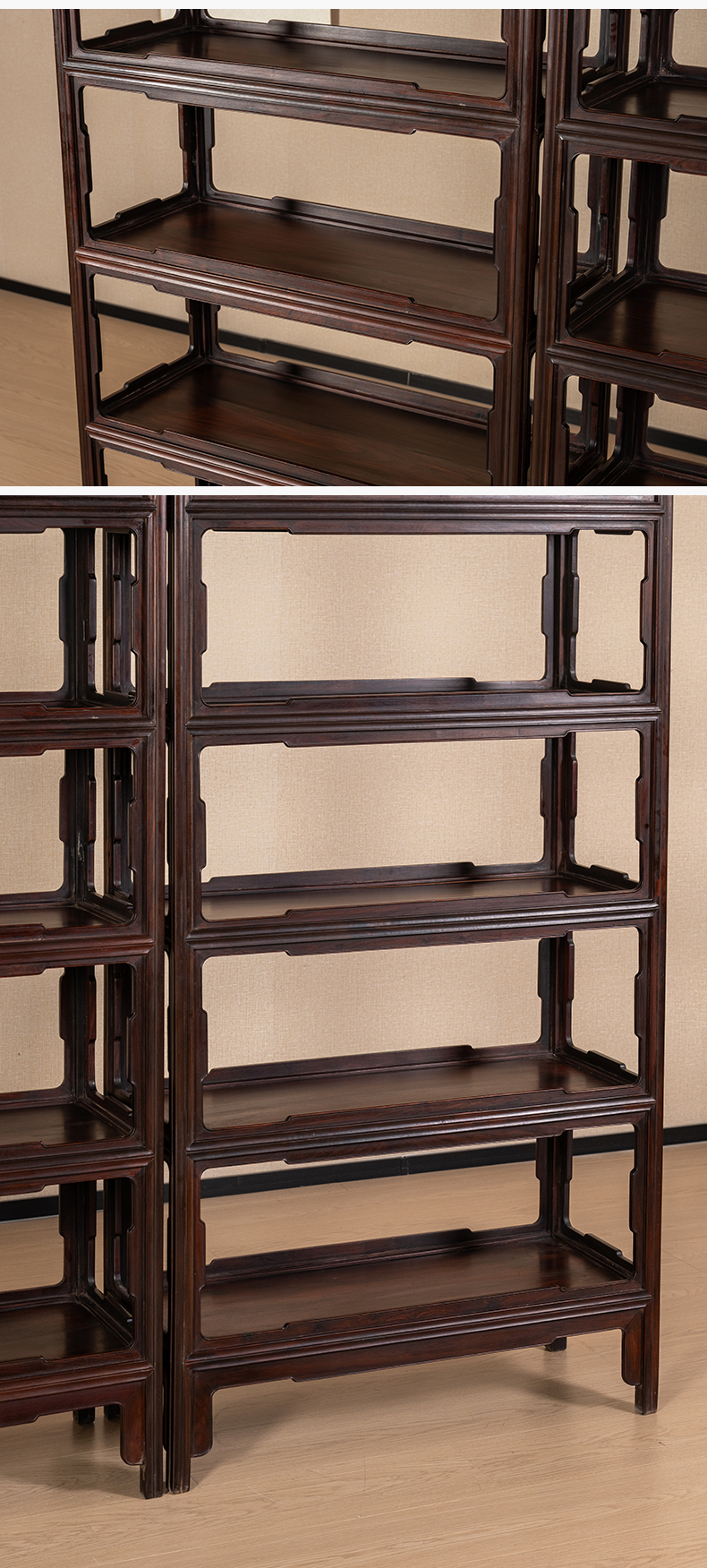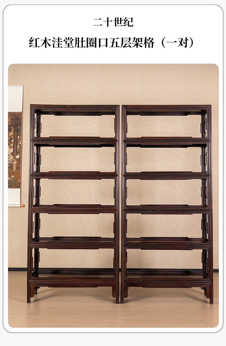 二十世纪 红木洼堂肚圈口五层架格(一对)