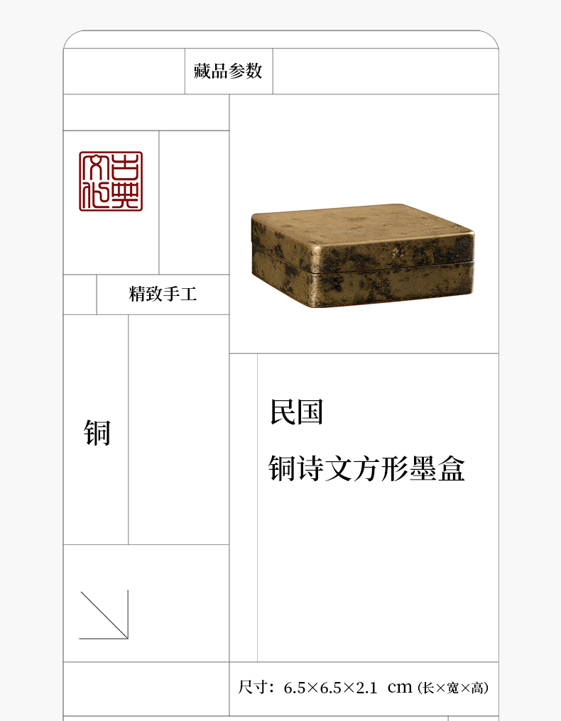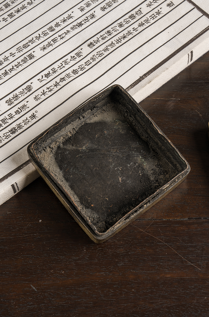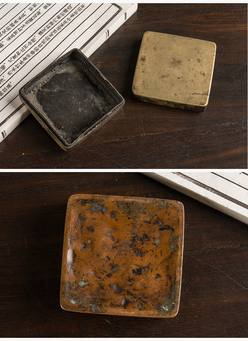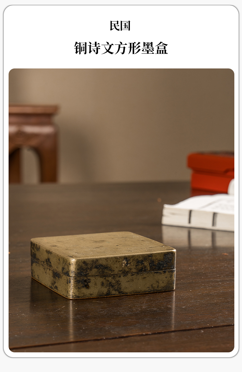 民国 铜诗文方形墨盒
