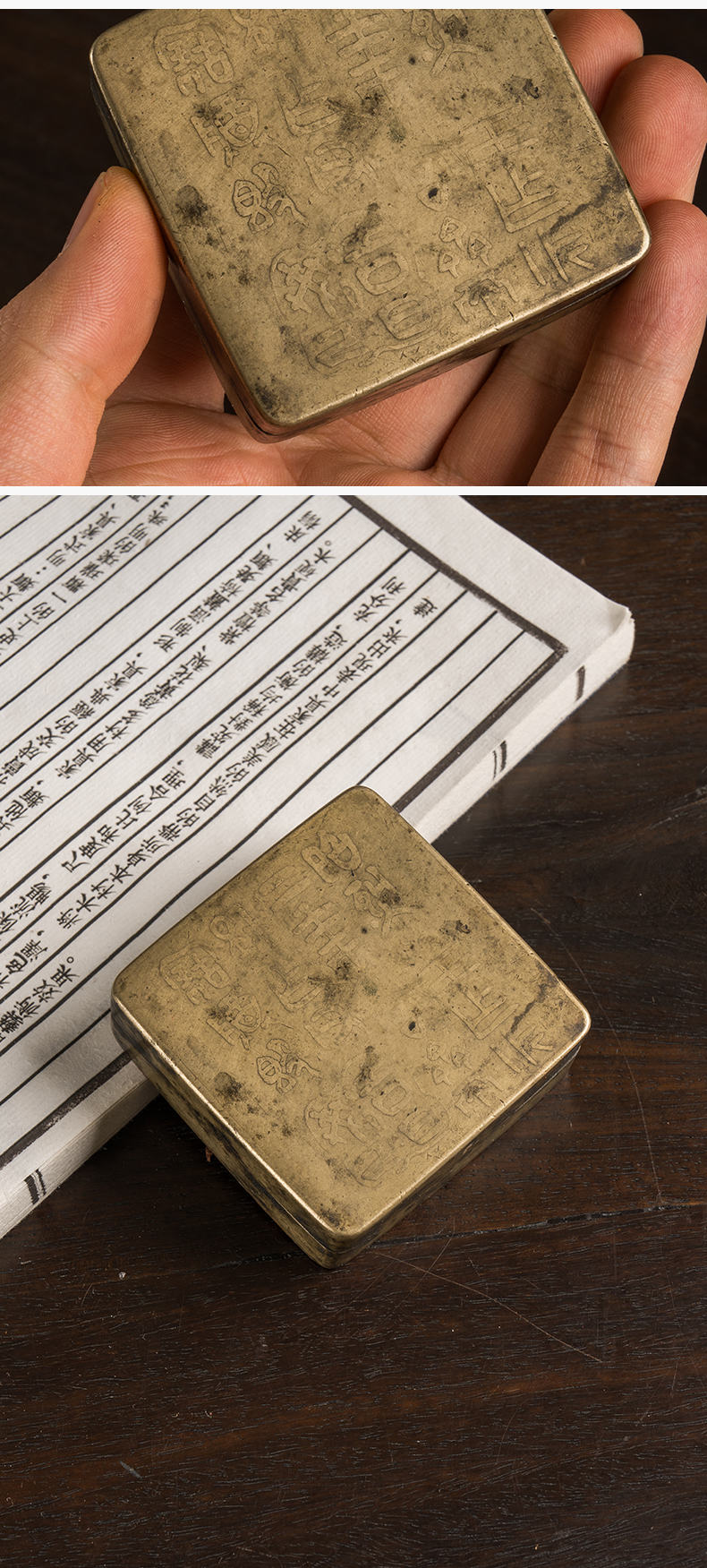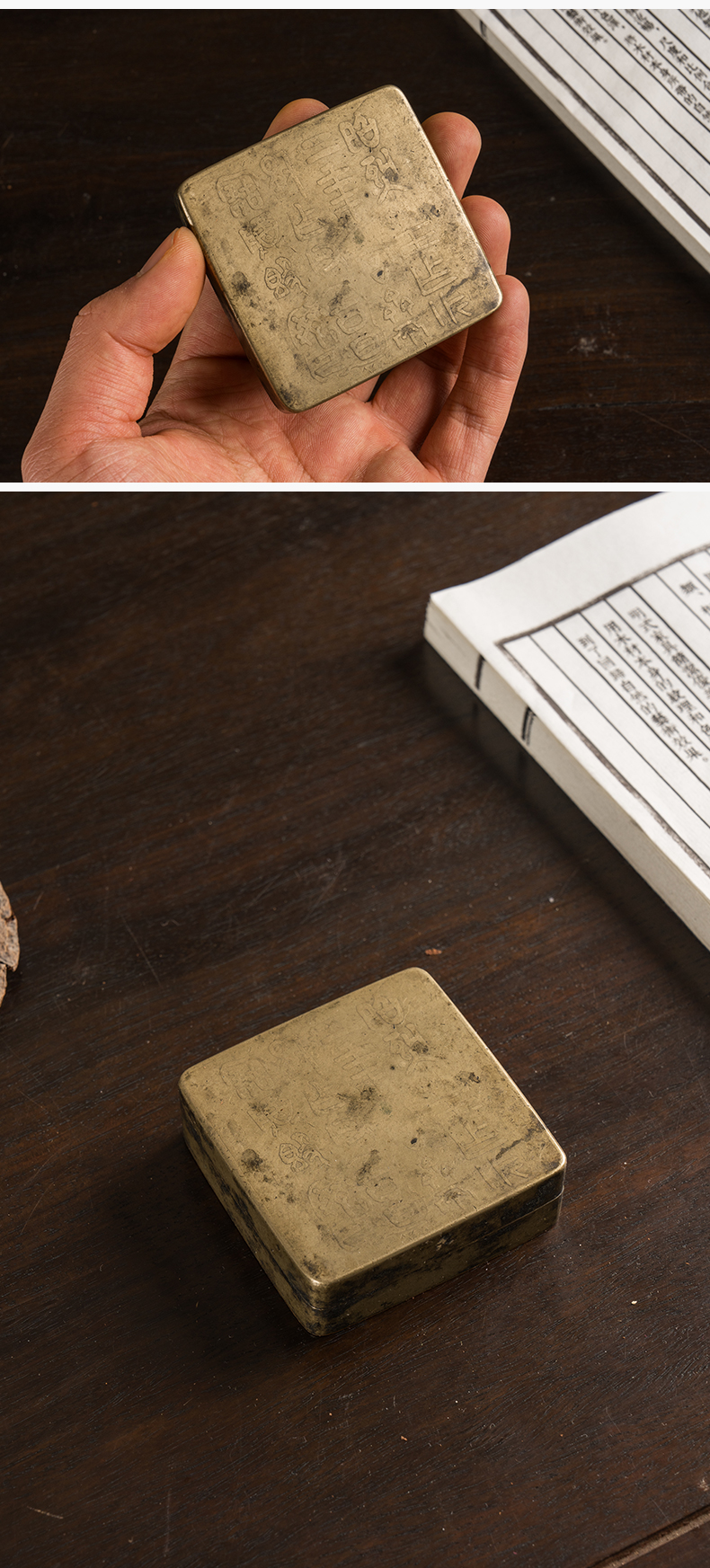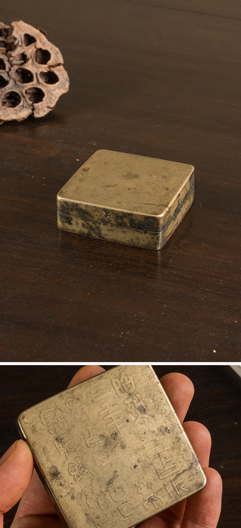 民国 铜诗文方形墨盒