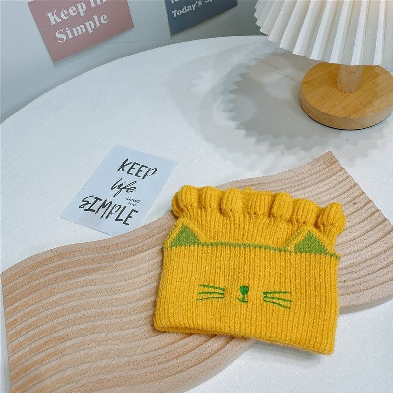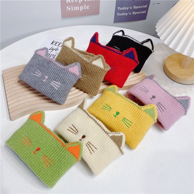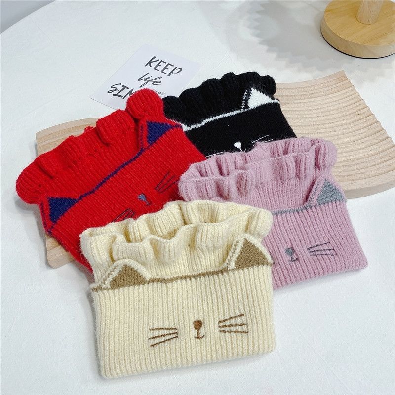 【针织围脖!舒适又保暖】儿童围巾秋冬卡通猫咪,两用毛线脖套男女宝宝保暖围脖,萌萌的模样,贴心保暖,萌宠毛线护颈lm