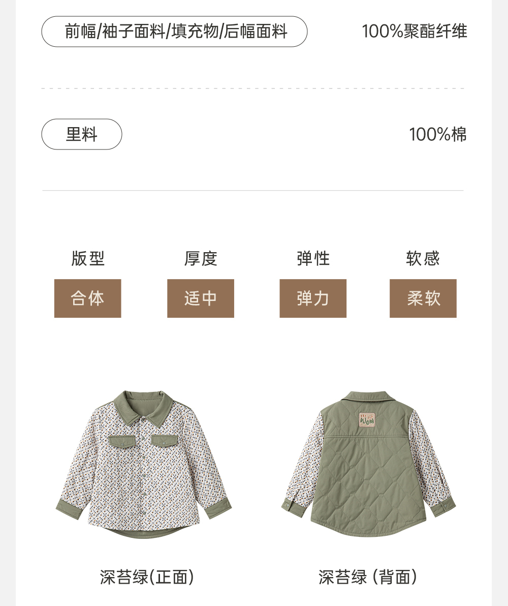 【商场同款】英氏婴儿外套秋冬保暖棉服男童长袖夹棉外套新款