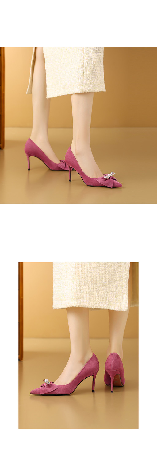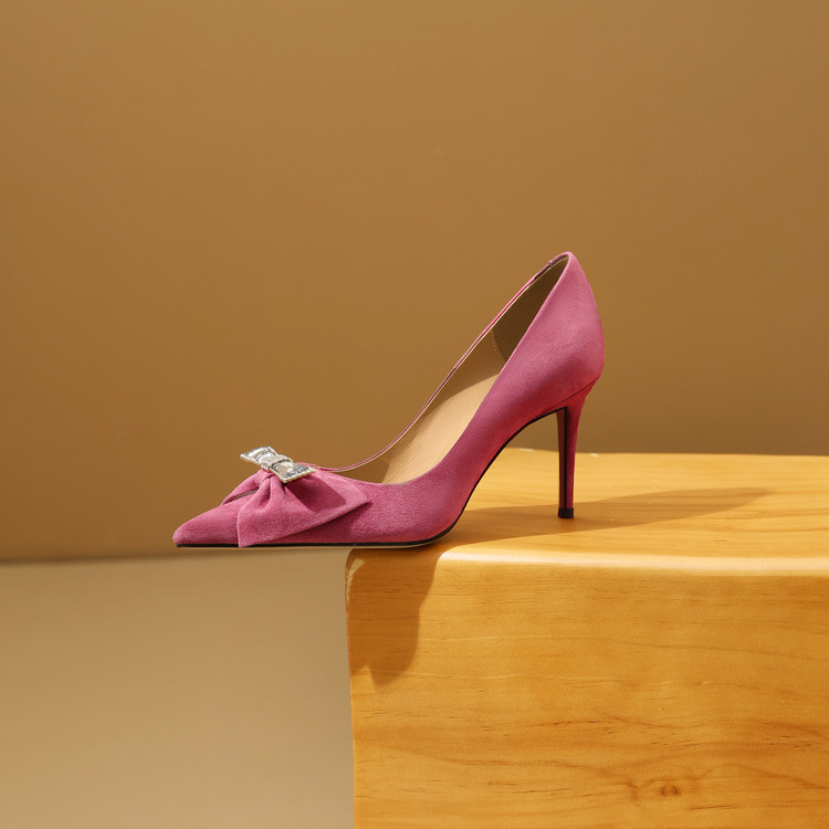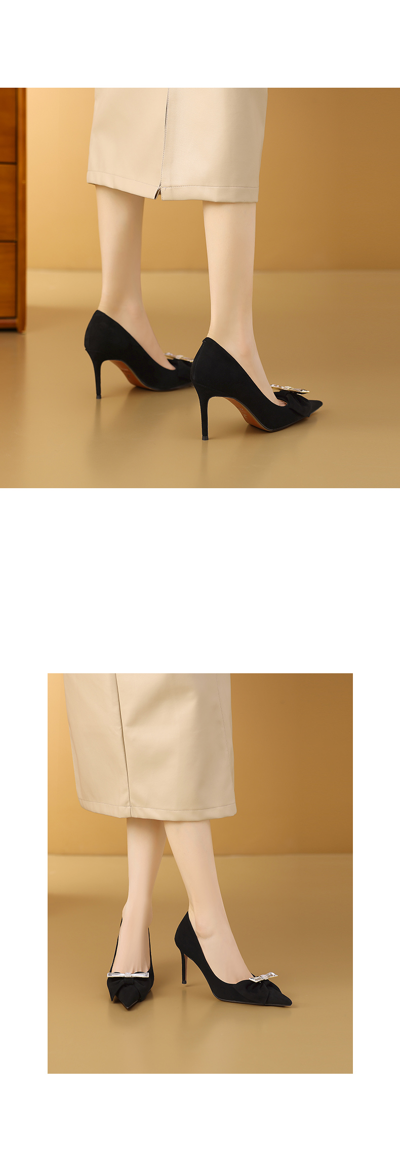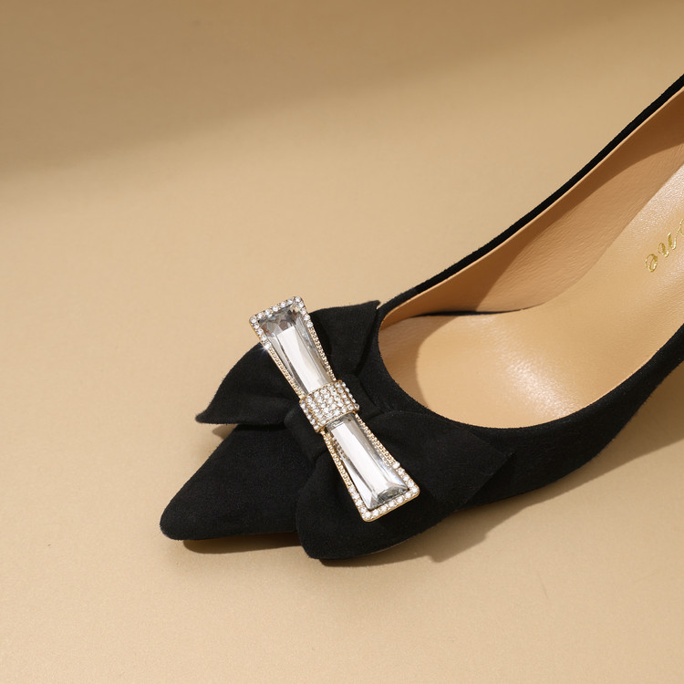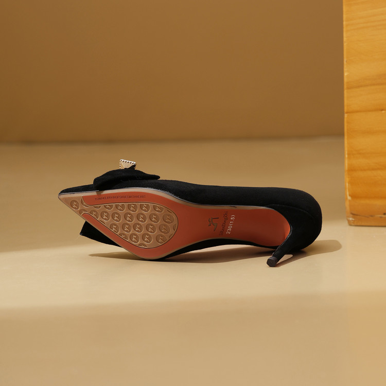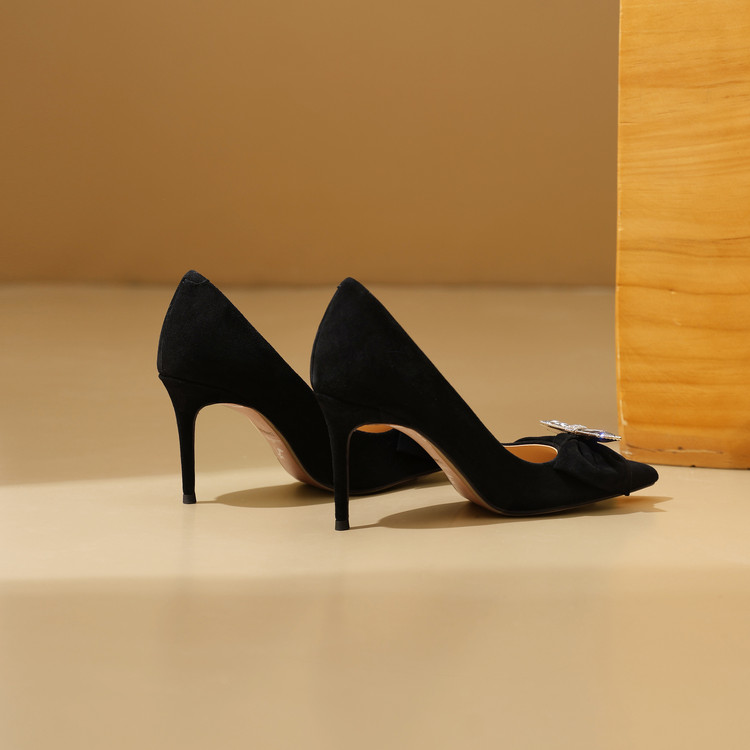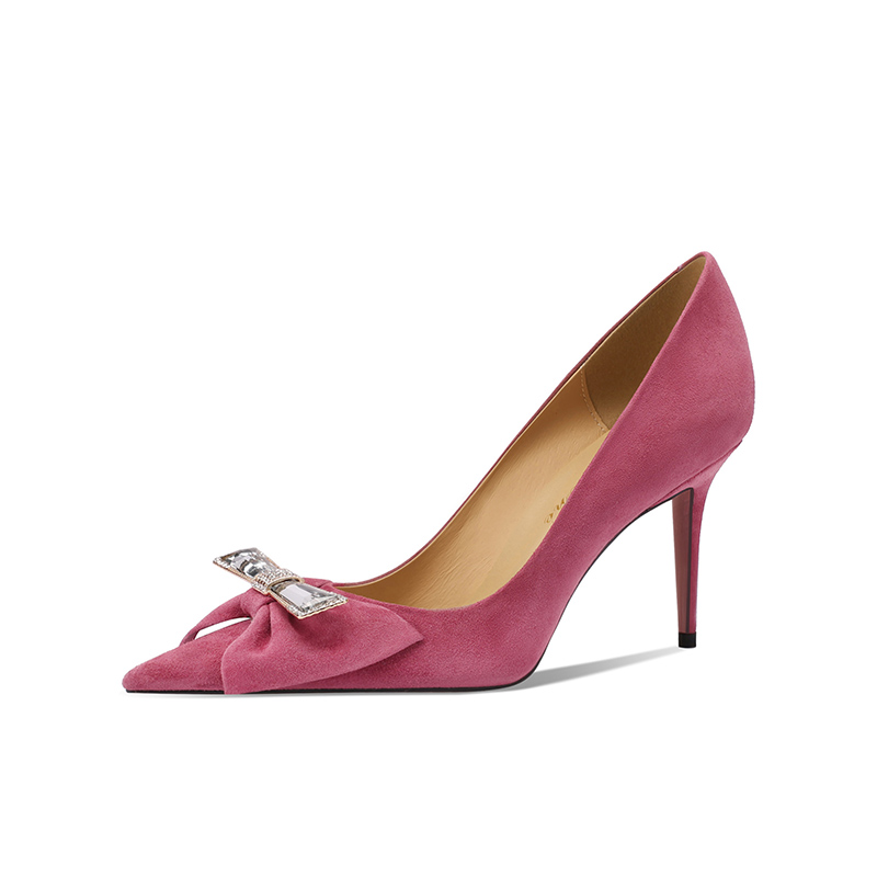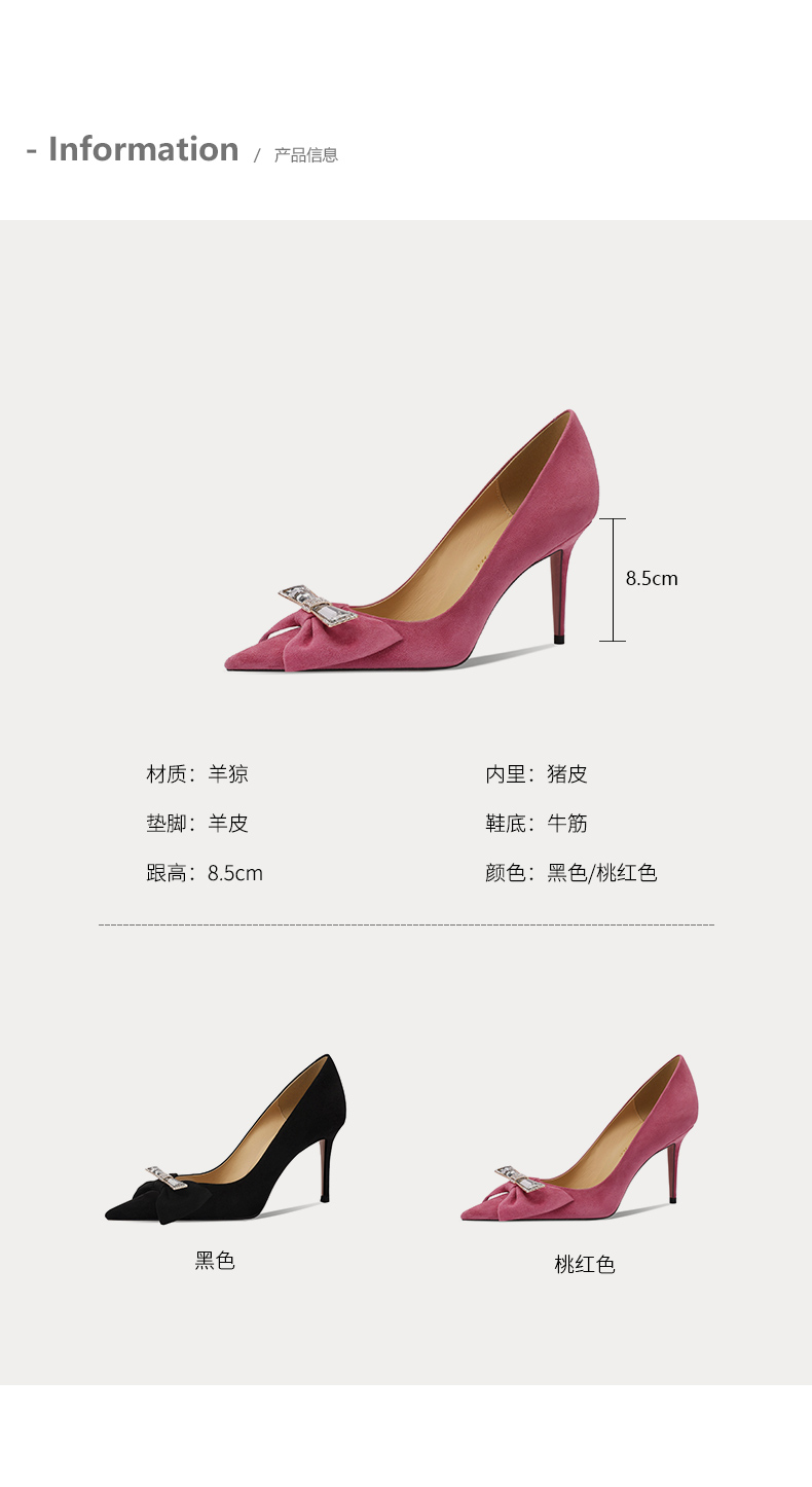 【预售7天】法式水钻蝴蝶结磨砂皮高跟鞋女春秋新款尖头细跟气质时装浅口单鞋CX&B0811