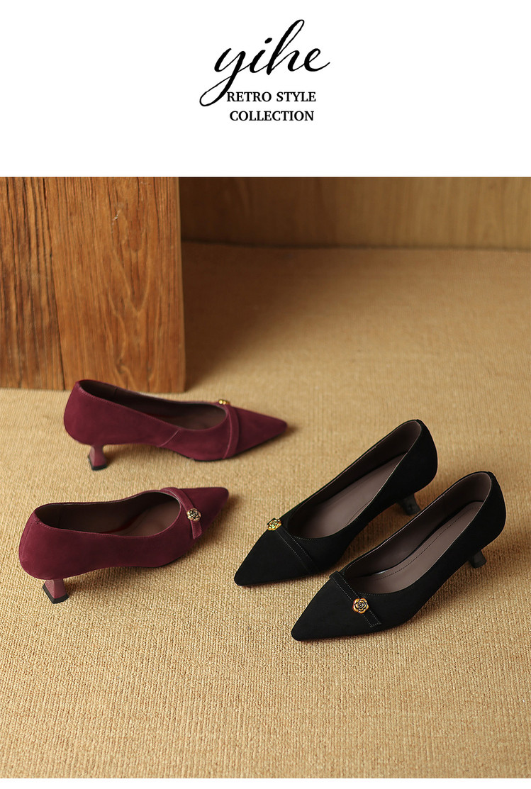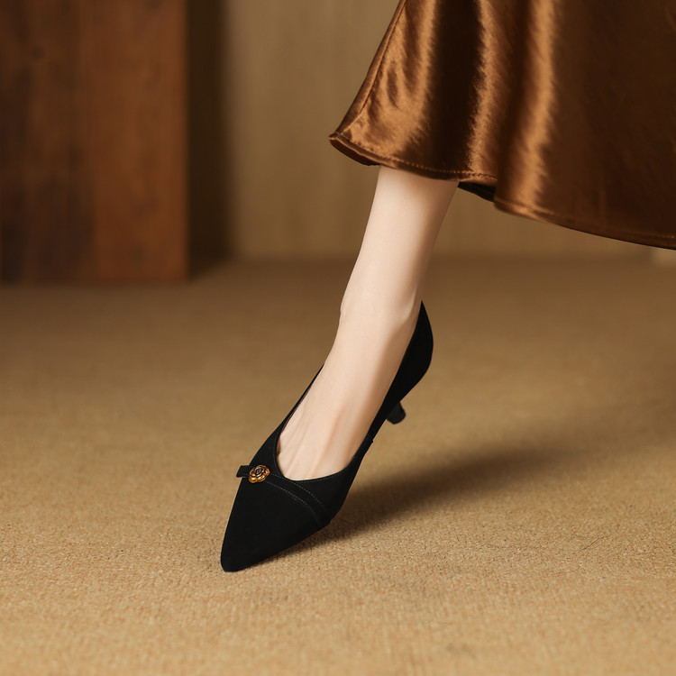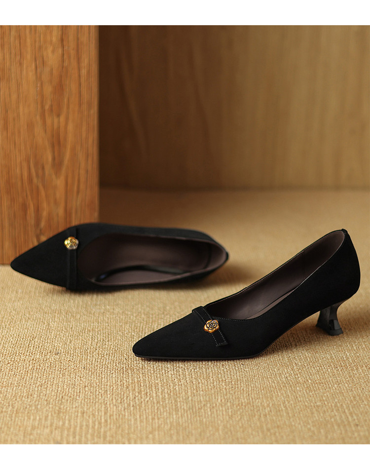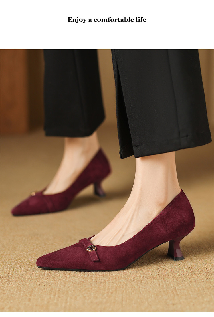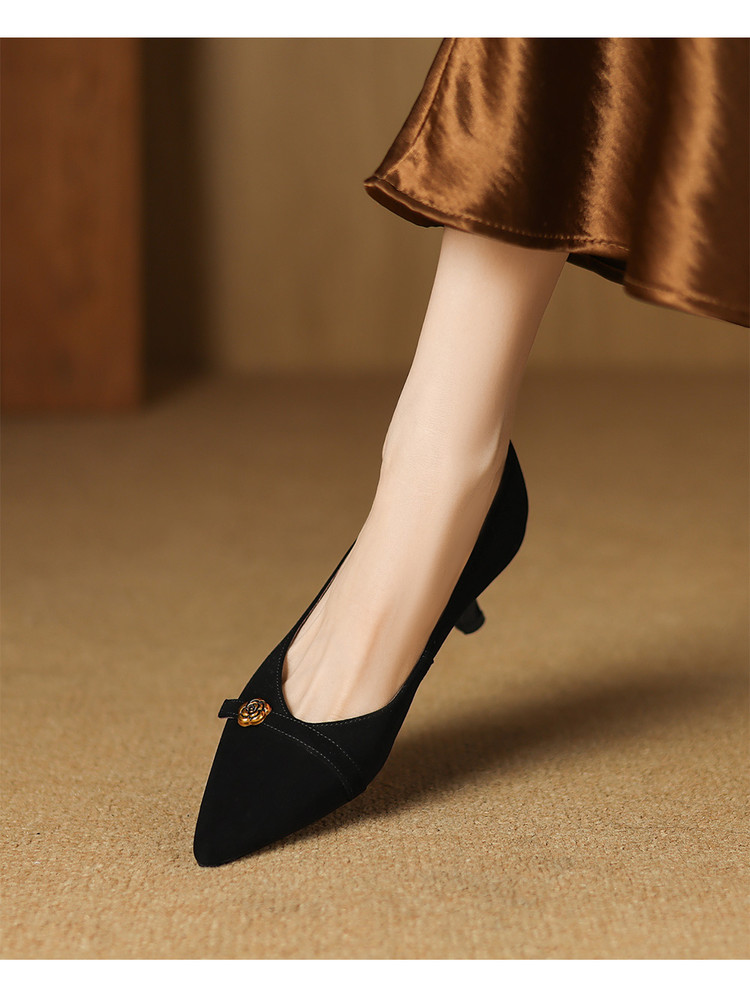 【预售5天】巨好搭~法式羊反绒尖头细跟单鞋女春秋新款气质高跟鞋工作鞋AJ&AJ9903