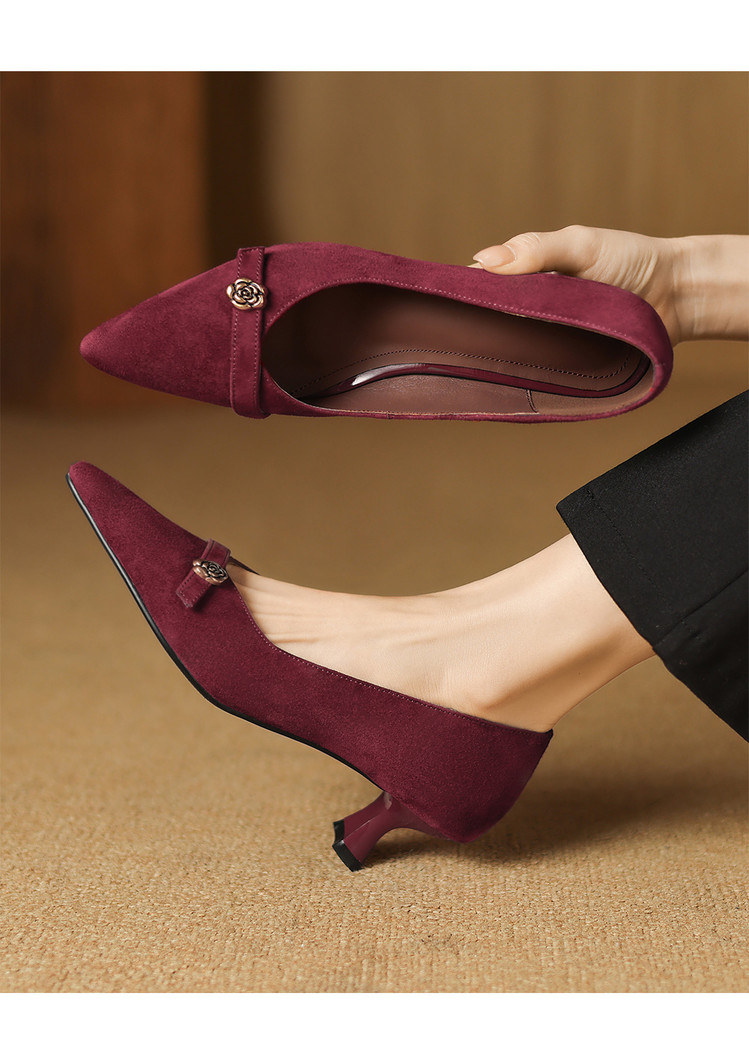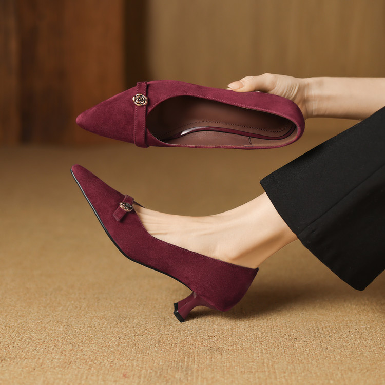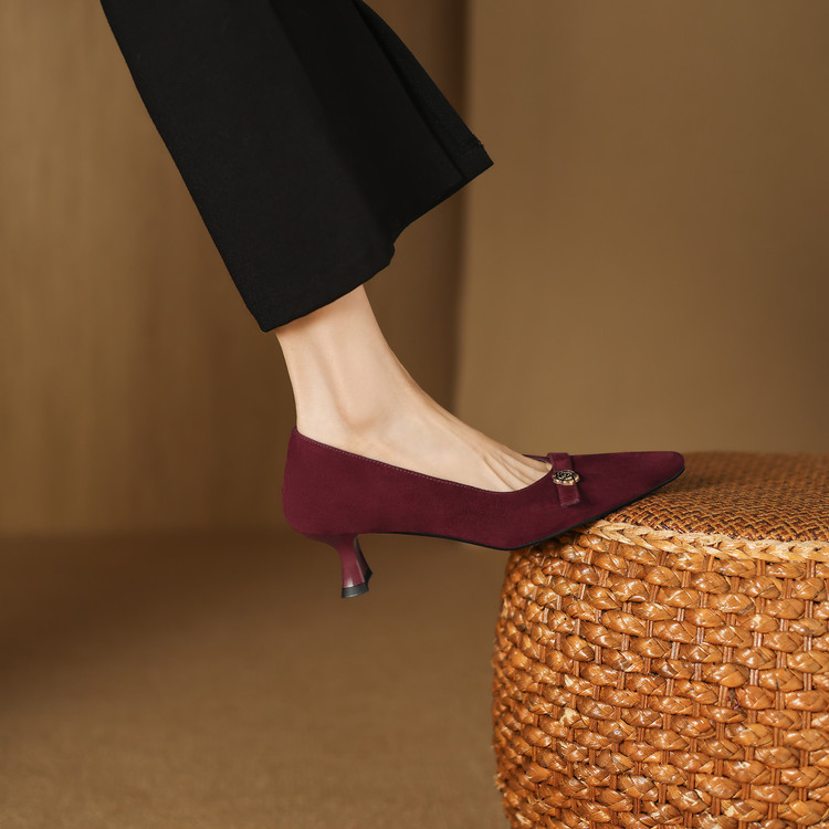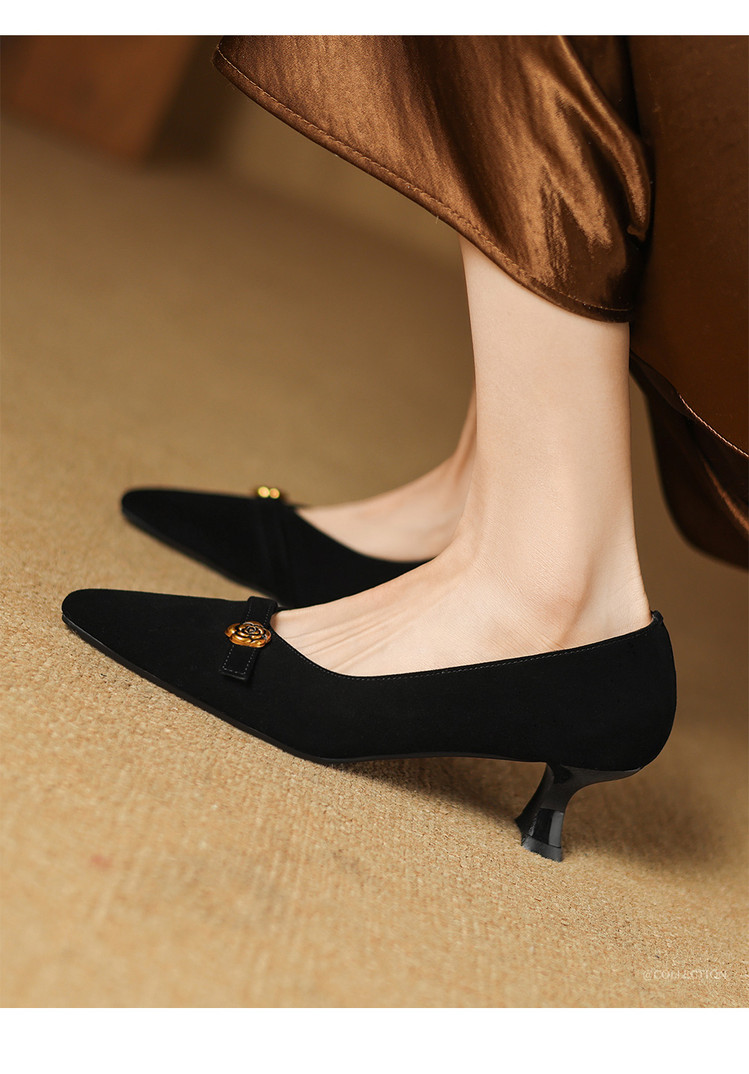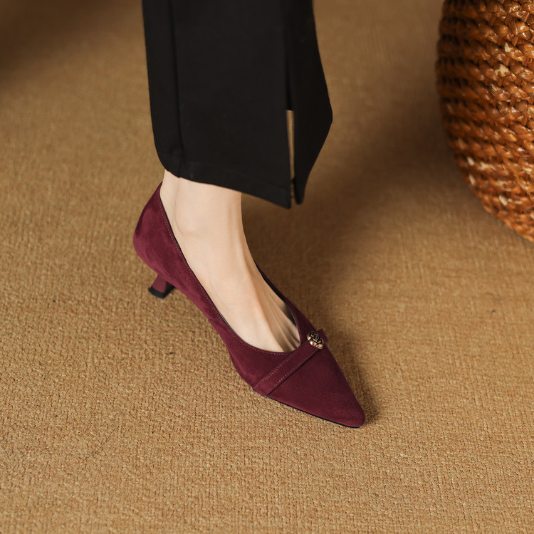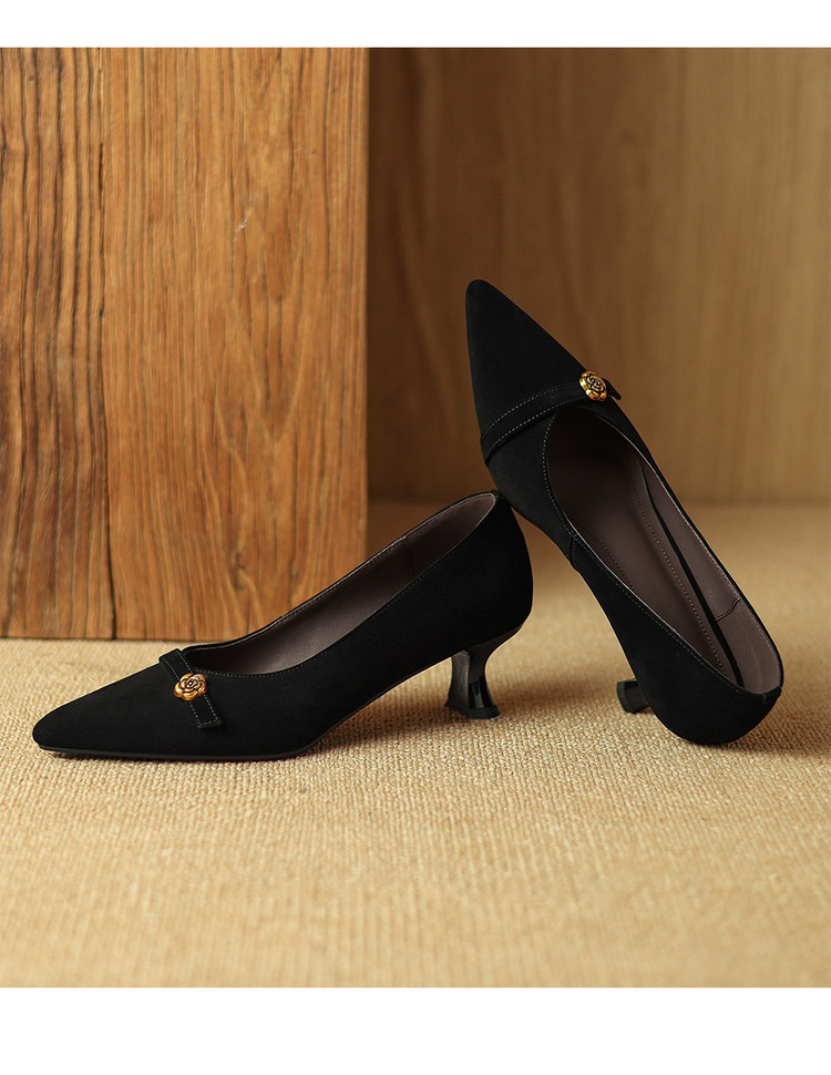 【预售5天】巨好搭~法式羊反绒尖头细跟单鞋女春秋新款气质高跟鞋工作鞋AJ&AJ9903
