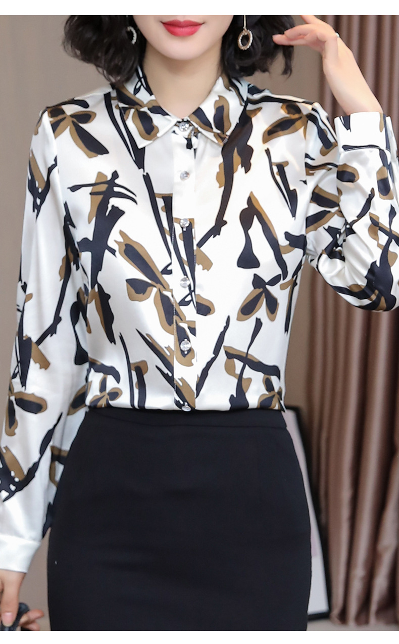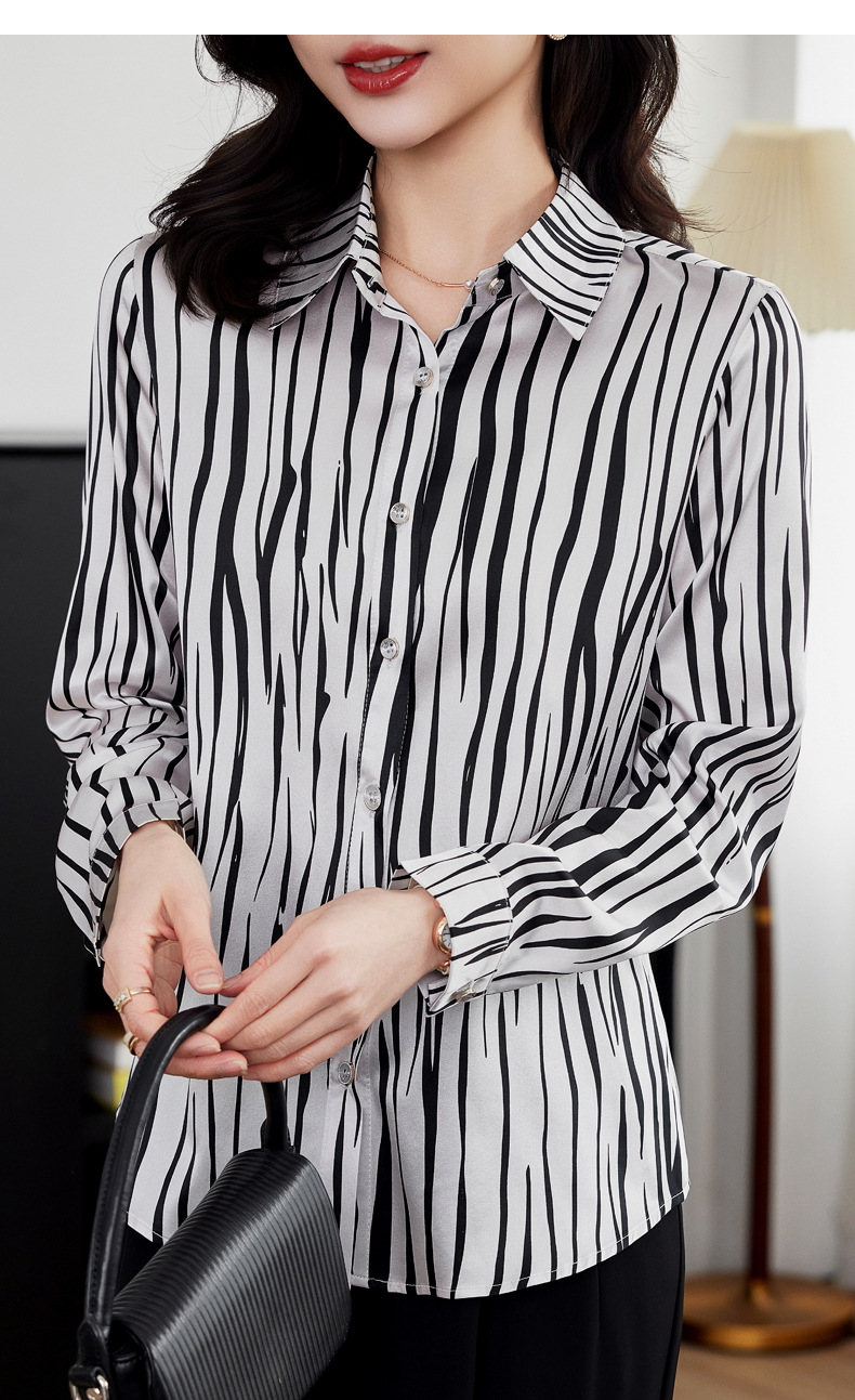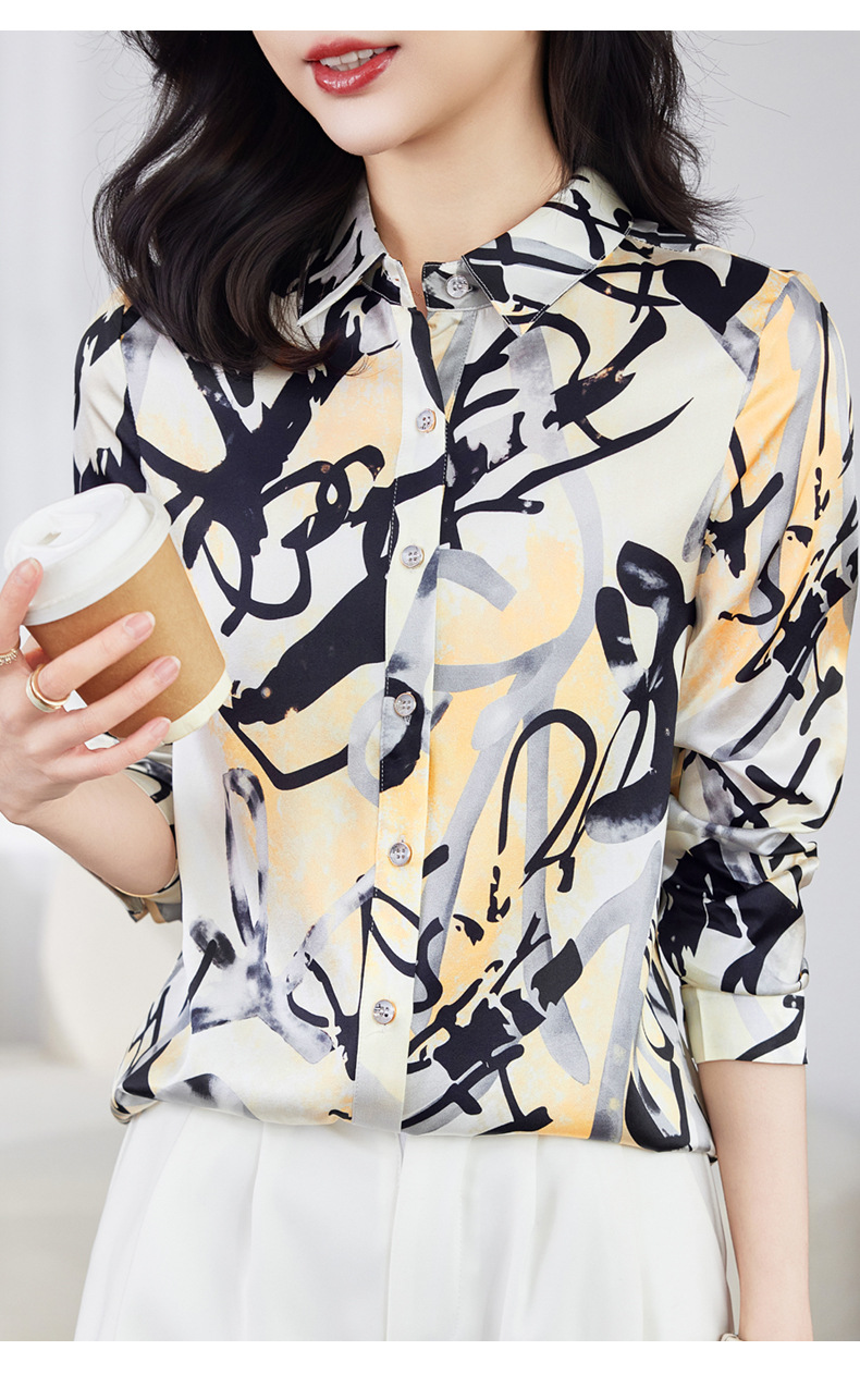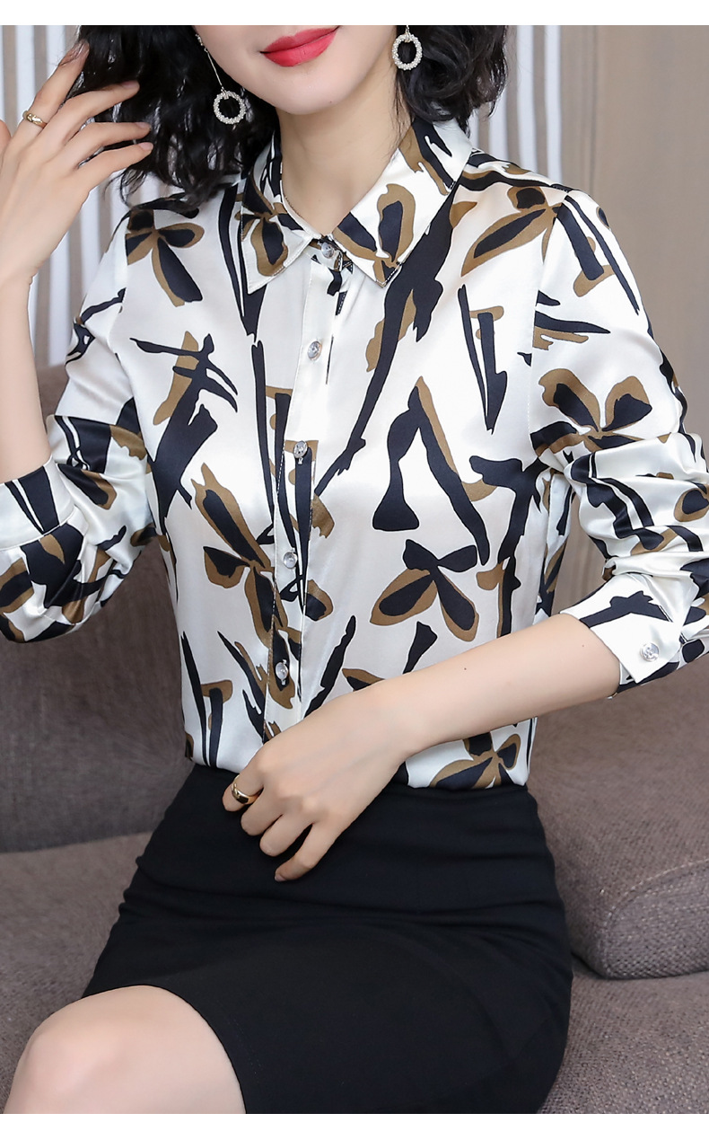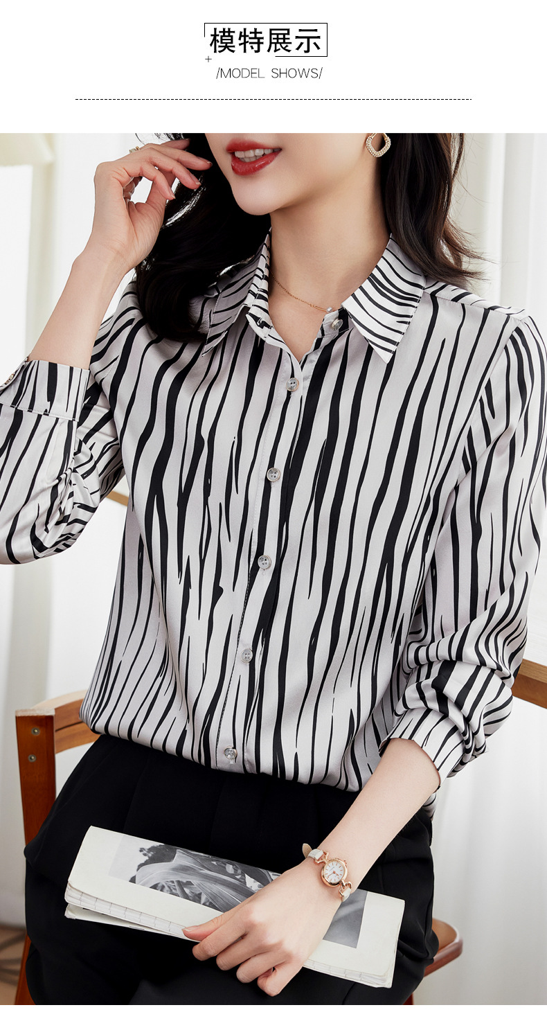 丁摩 弹力缎重磅真丝衬衫女长袖上衣LS01