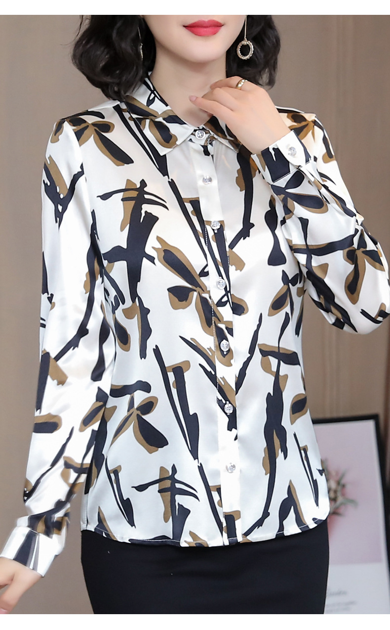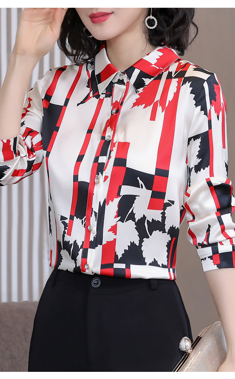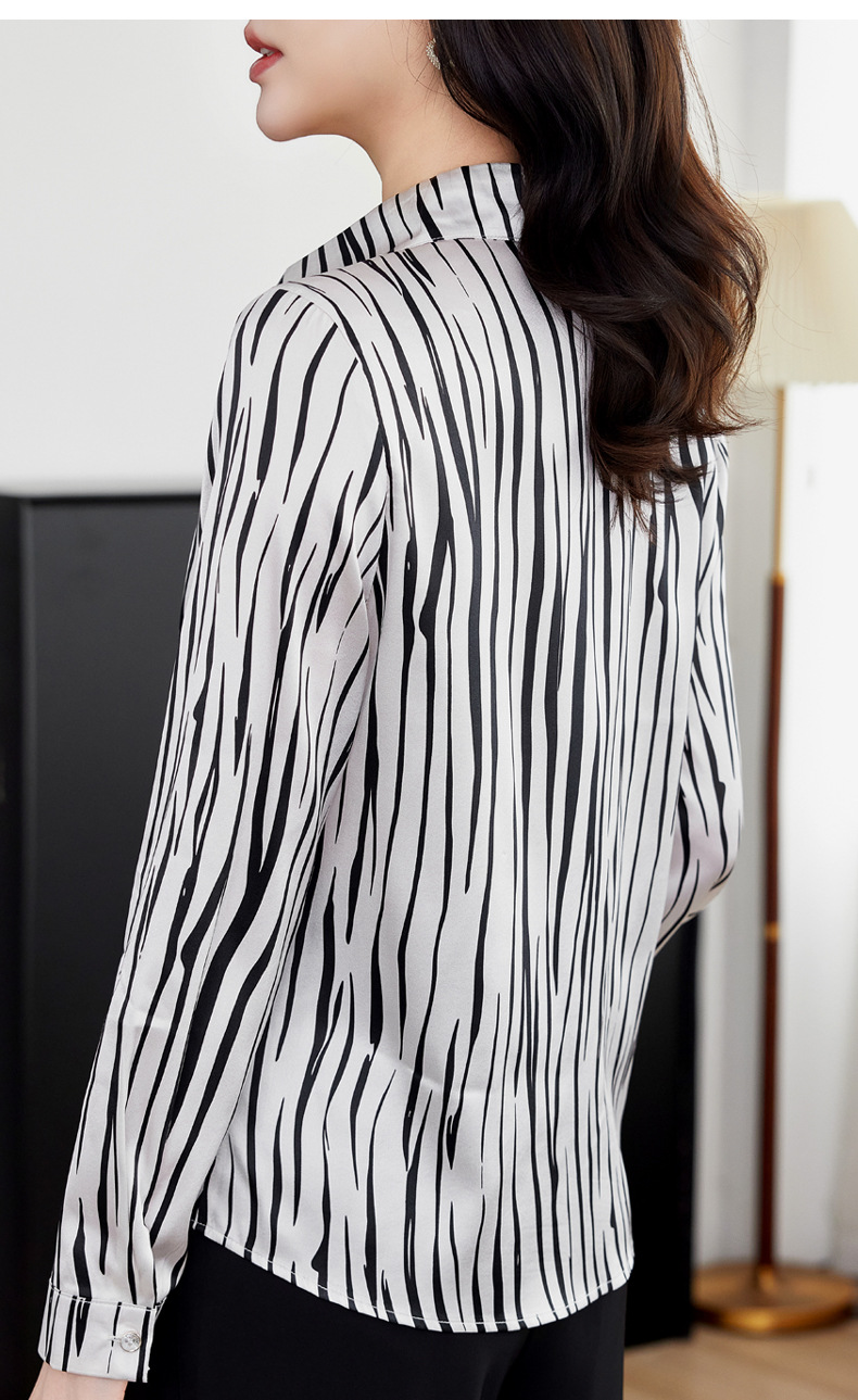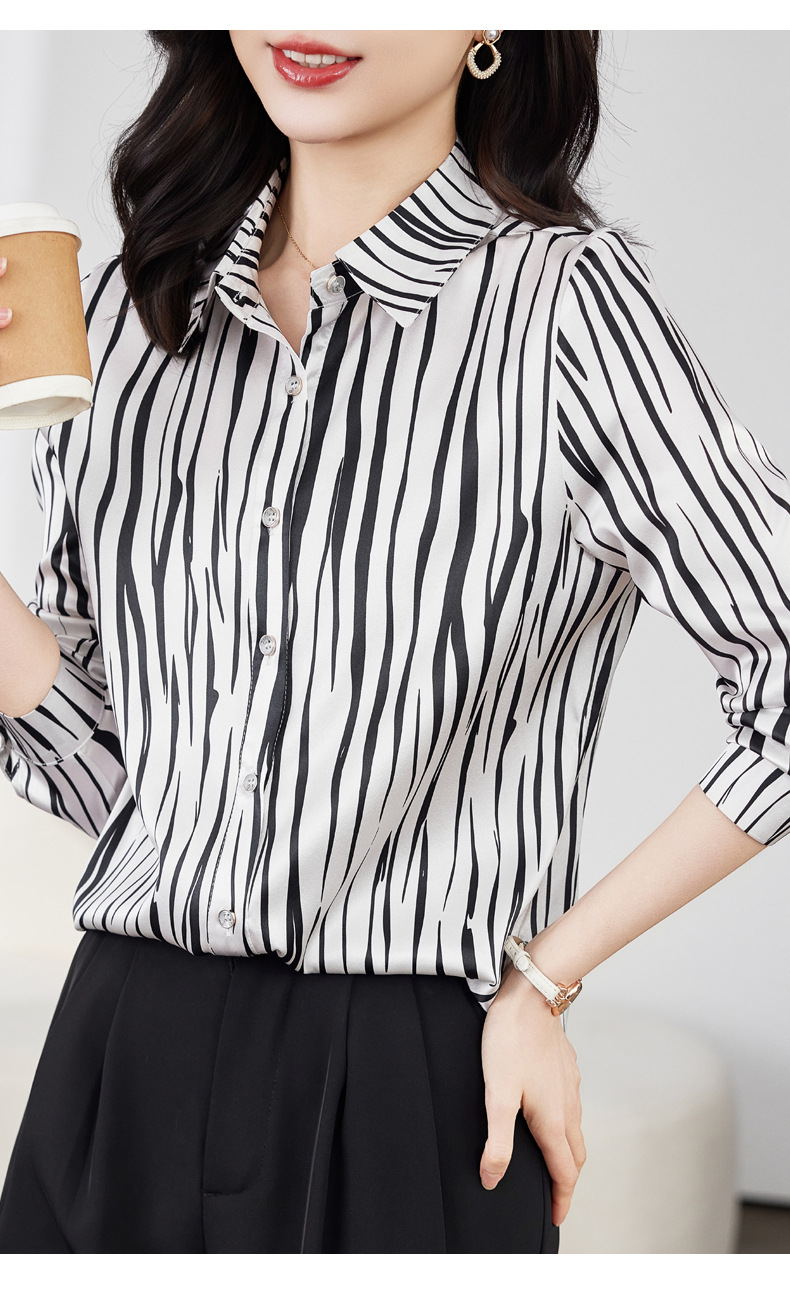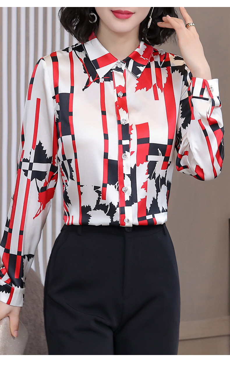 丁摩 弹力缎重磅真丝衬衫女长袖上衣LS01