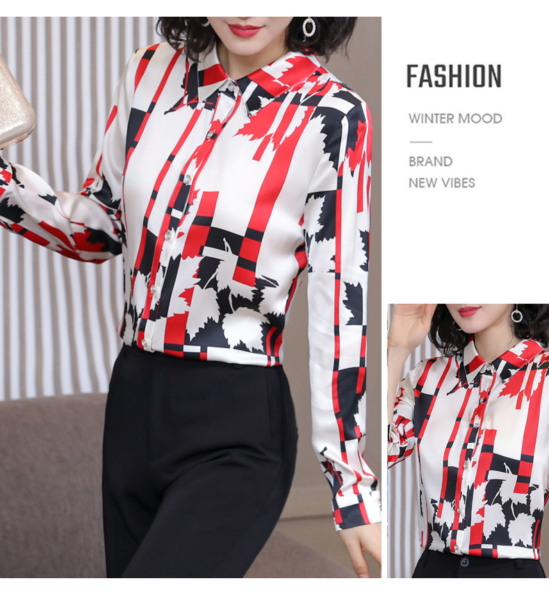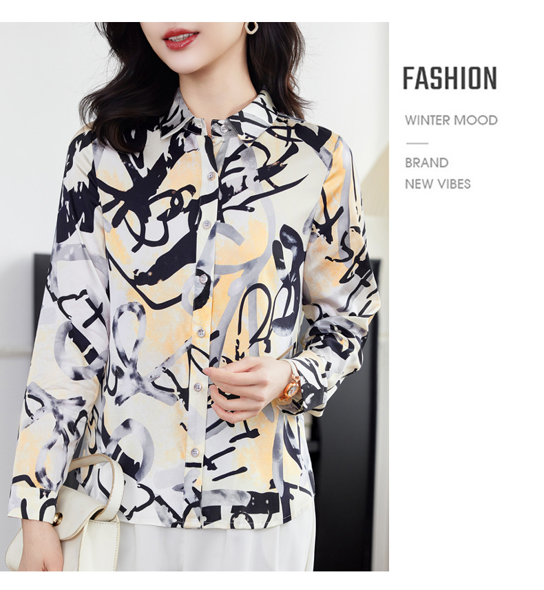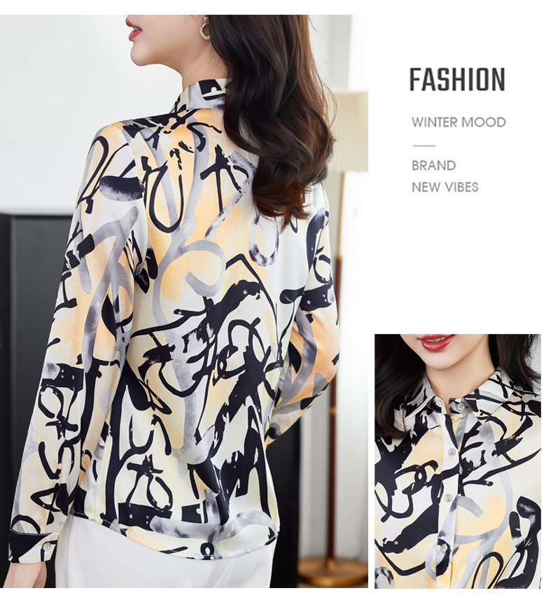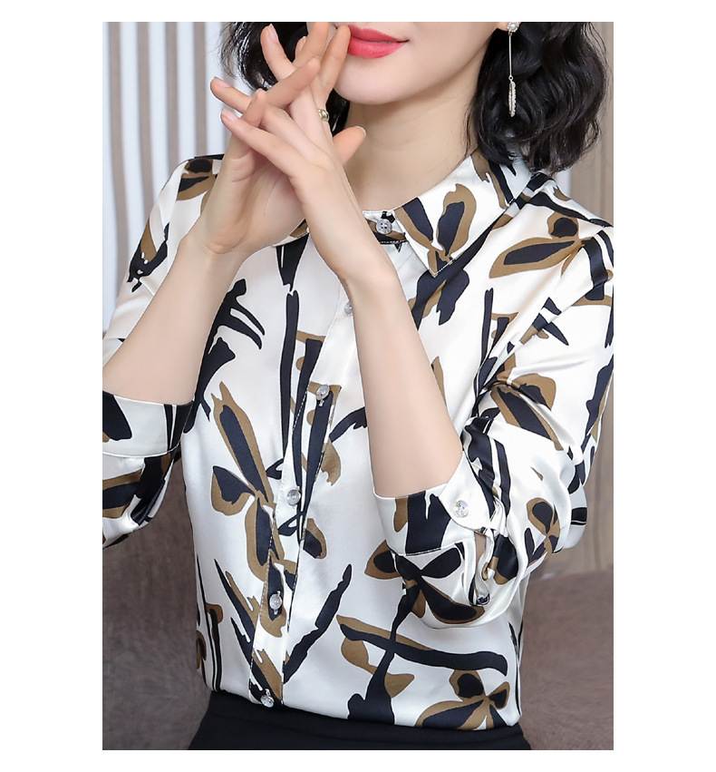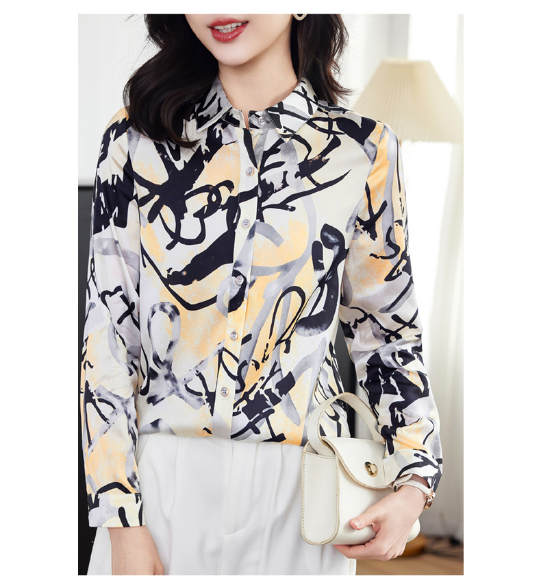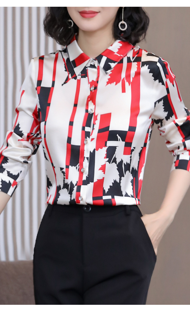 丁摩 弹力缎重磅真丝衬衫女长袖上衣LS01