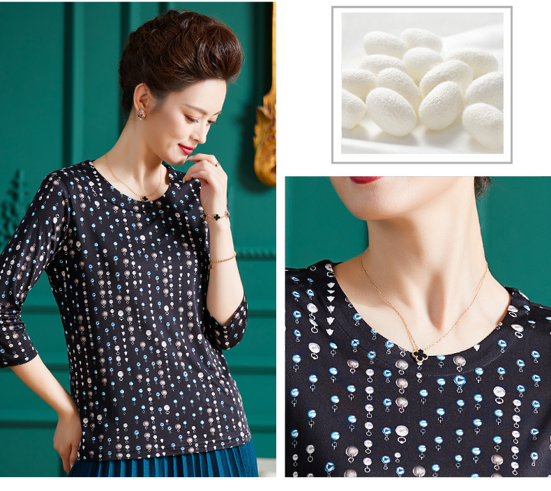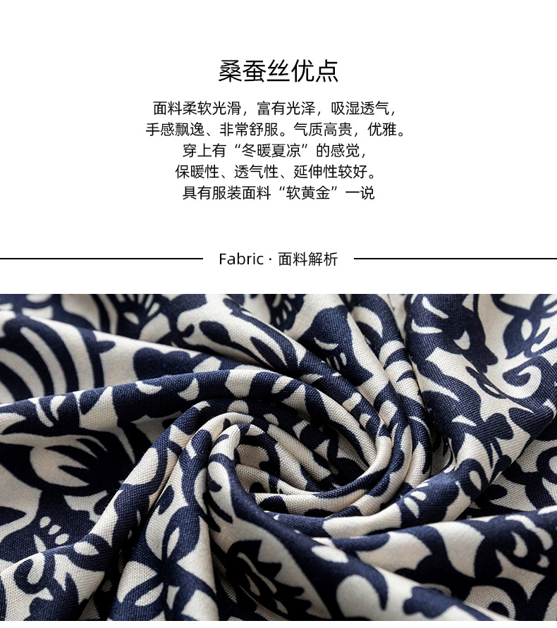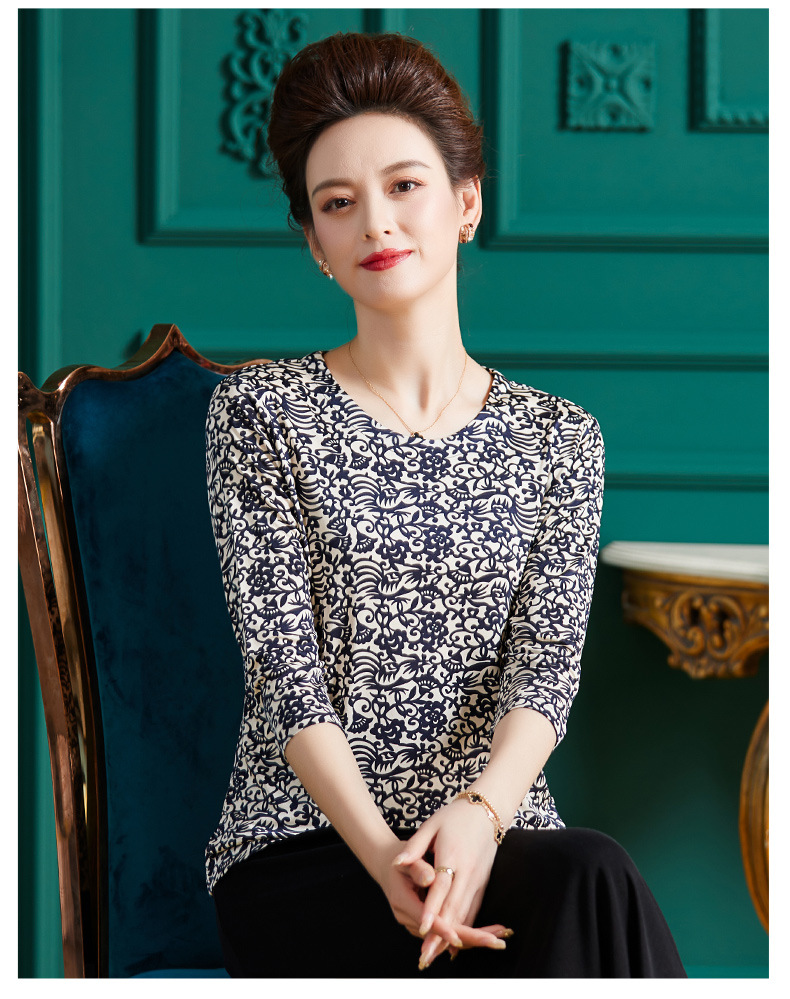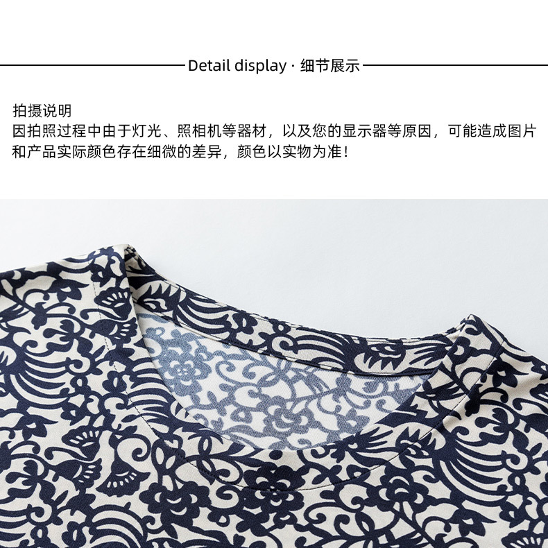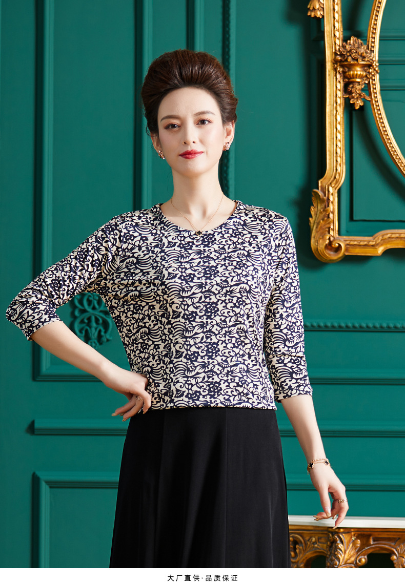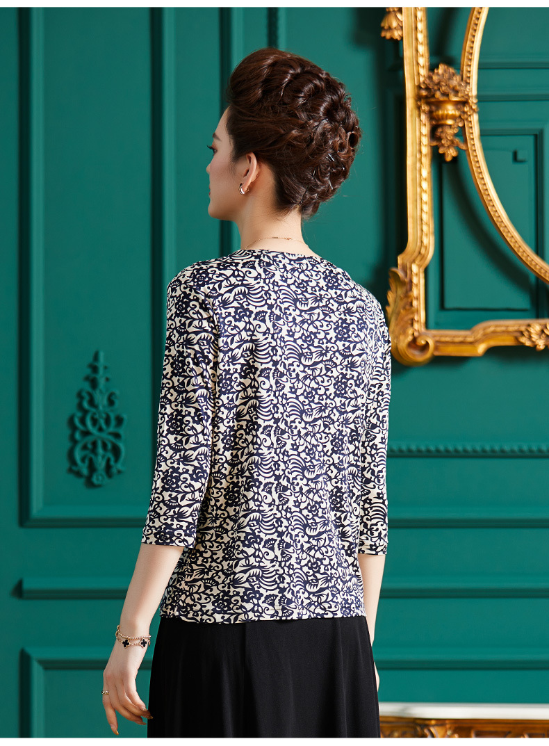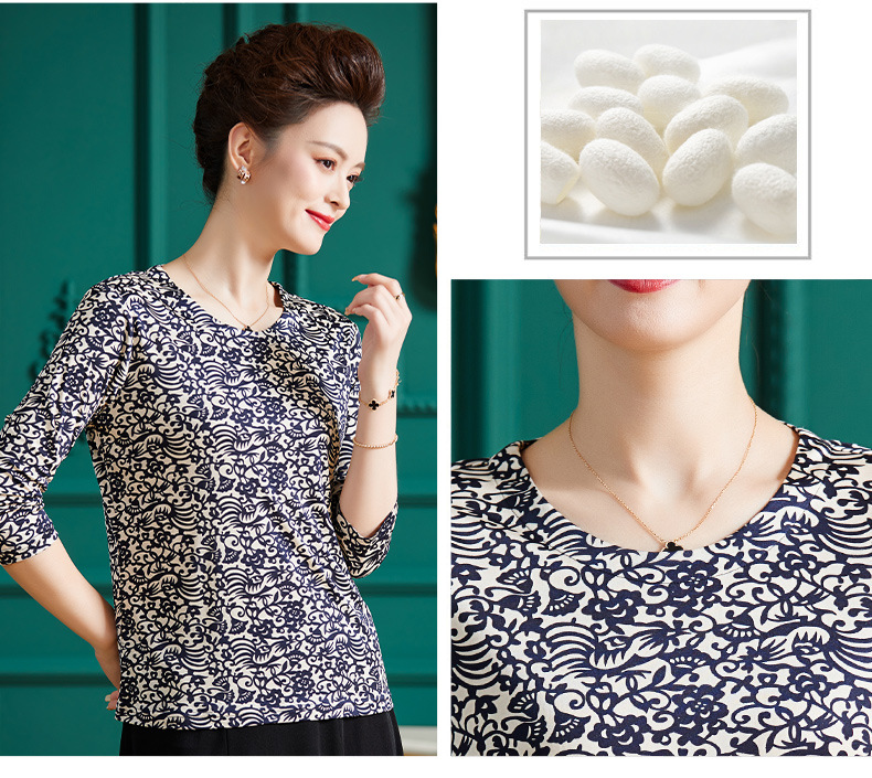 丁摩真丝上衣女洋气青花瓷印花桑蚕丝t恤套头小衫ALF2367-2