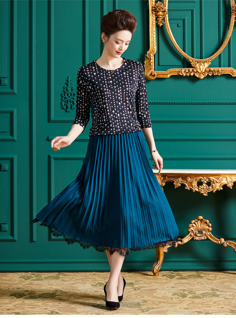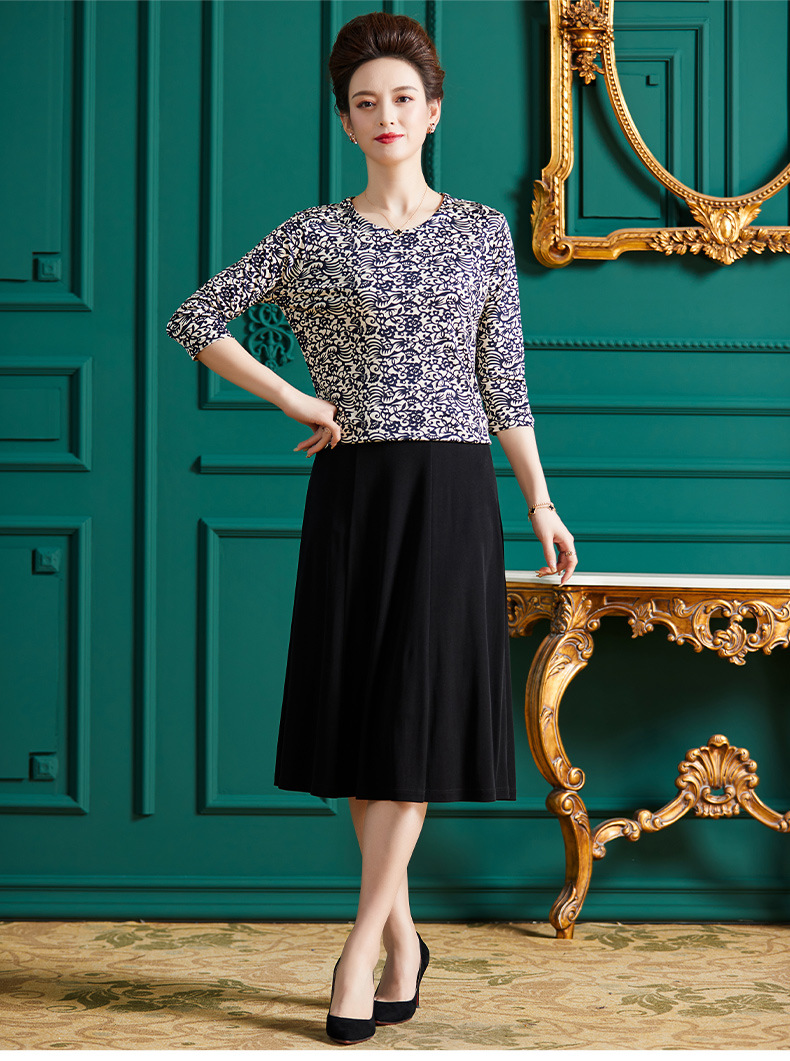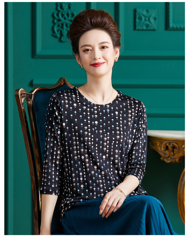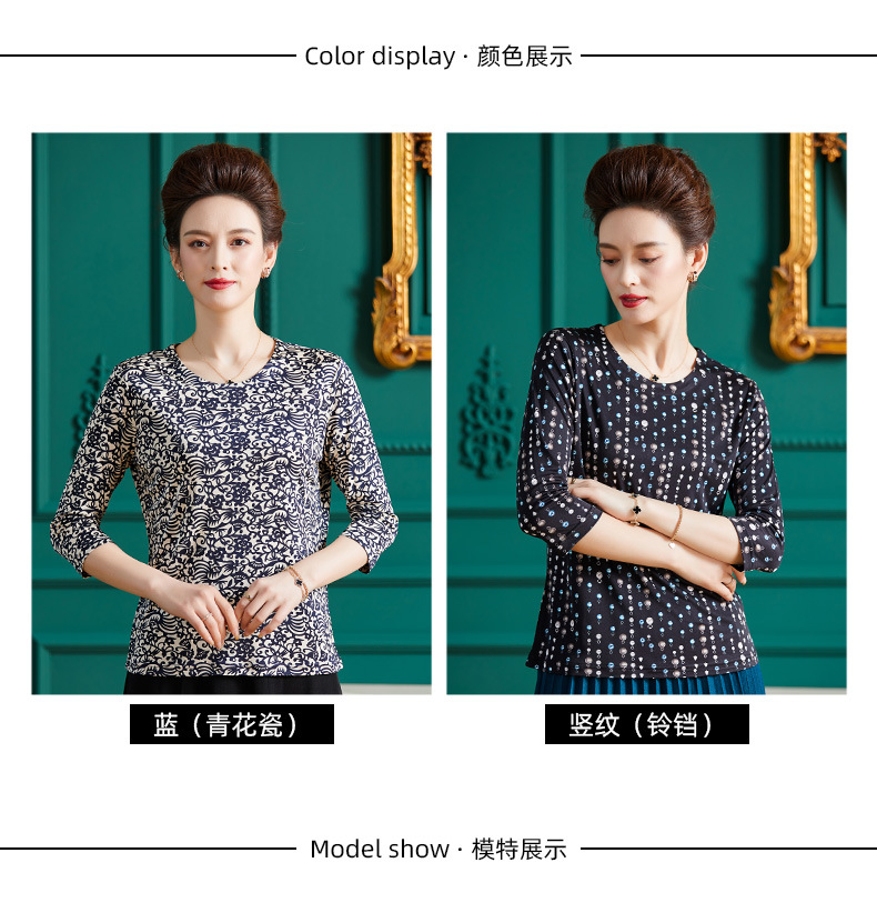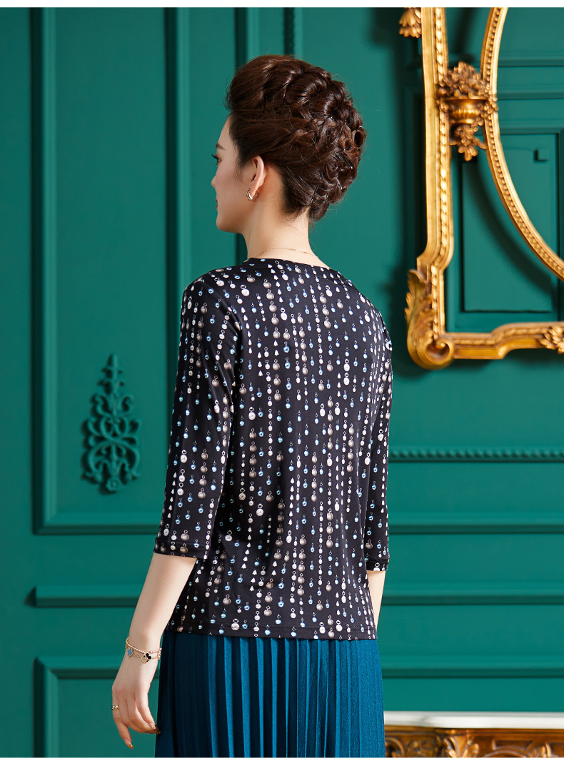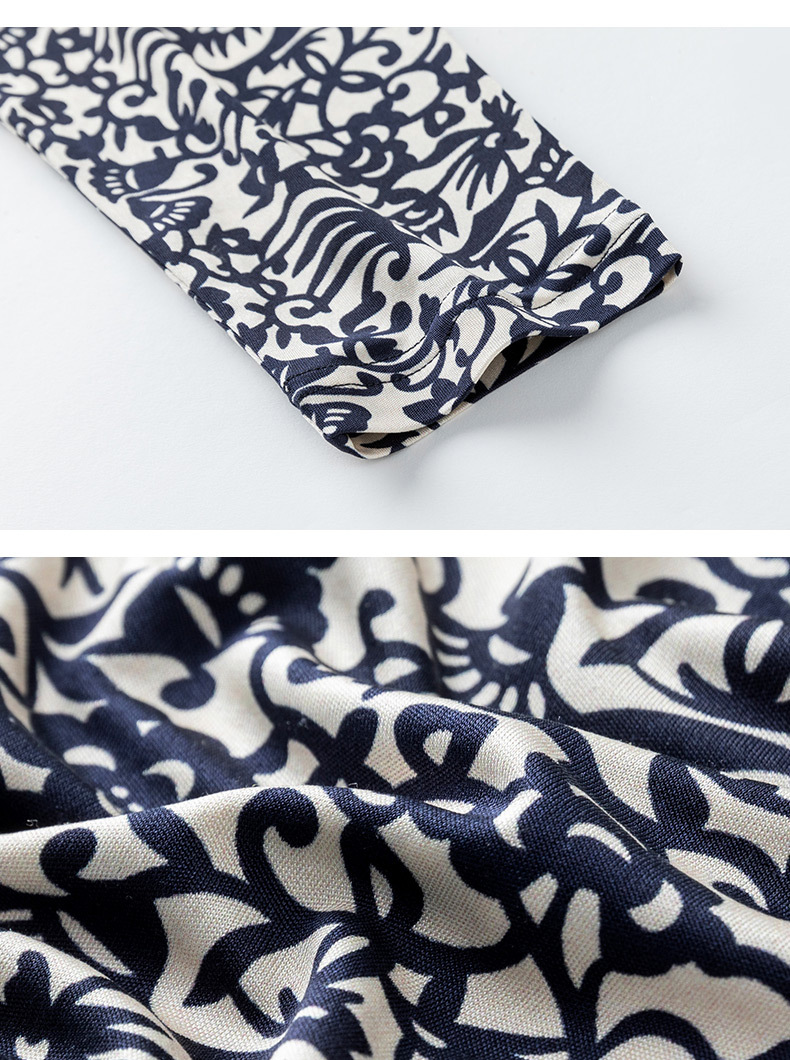 丁摩真丝上衣女洋气青花瓷印花桑蚕丝t恤套头小衫ALF2367-2