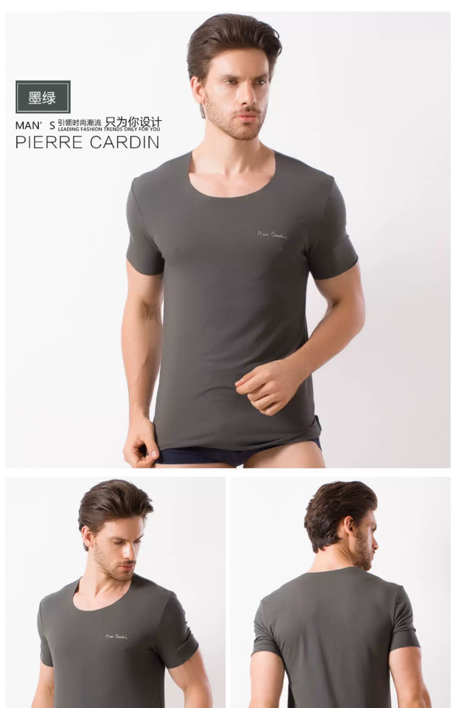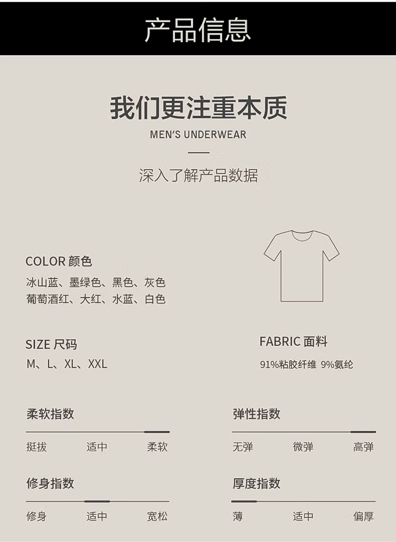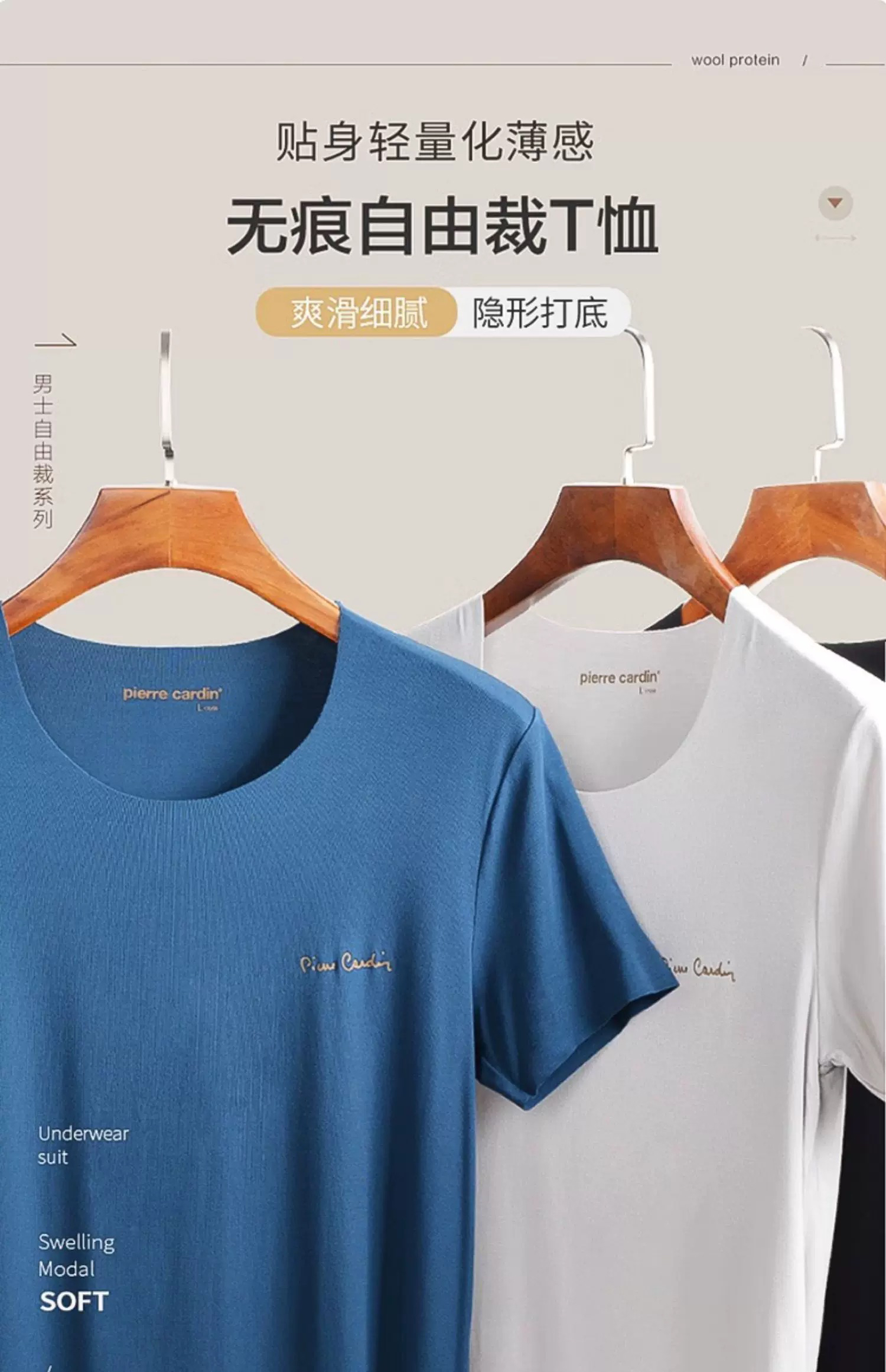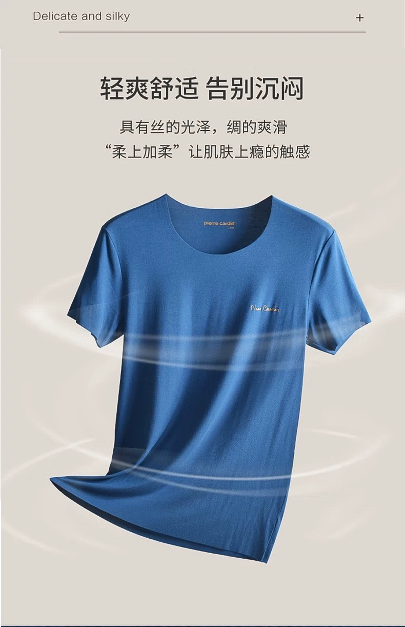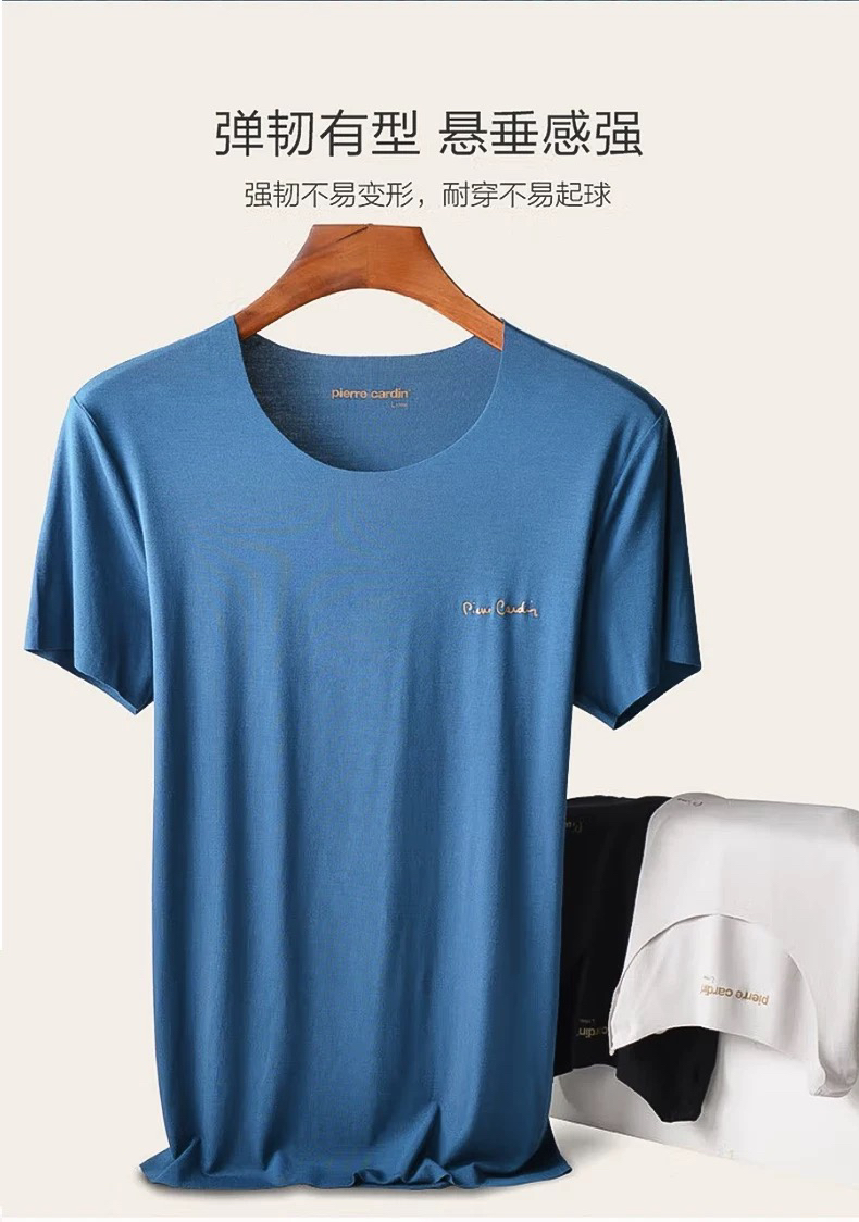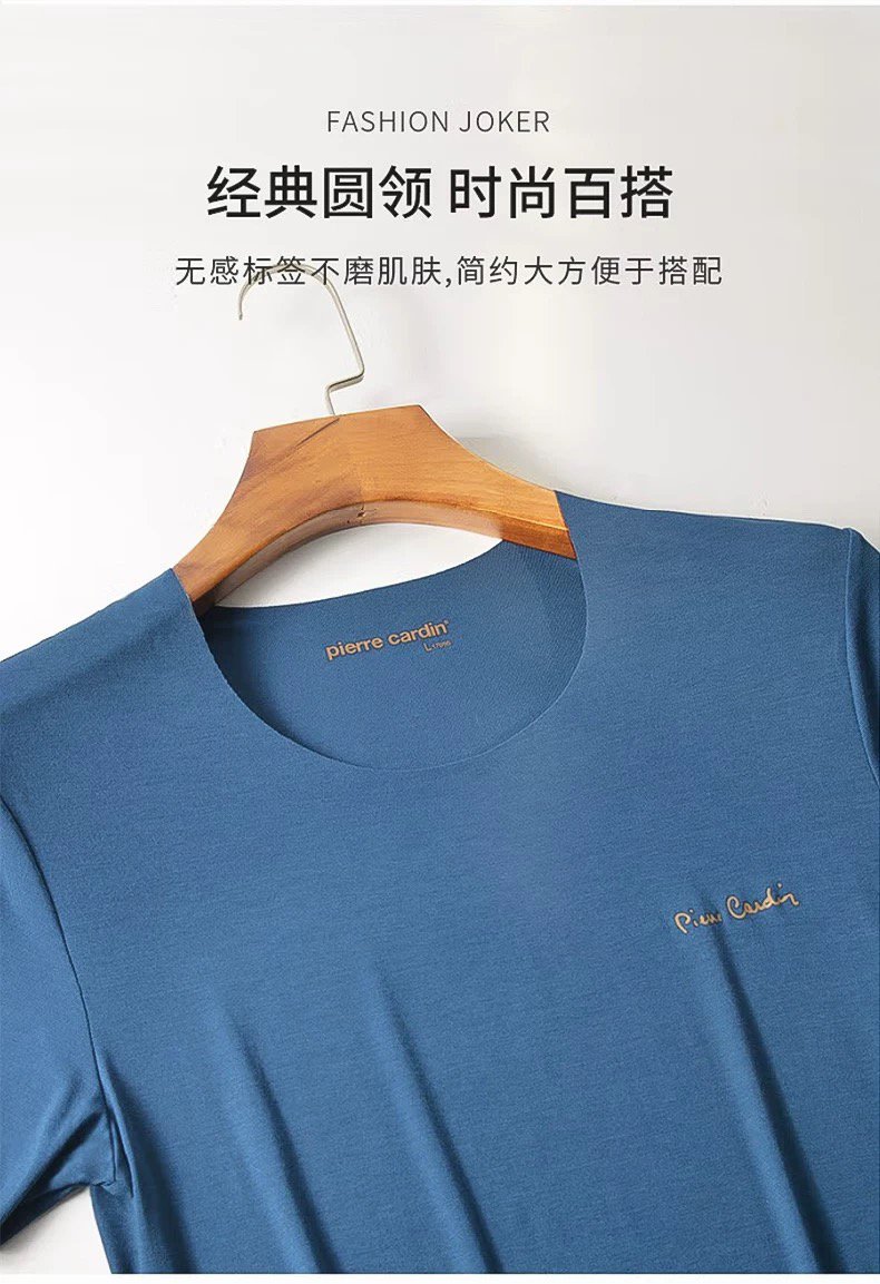 皮尔卡丹轻薄短袖T恤无痕莫代尔男士修身汗衫内穿打底背心P552921